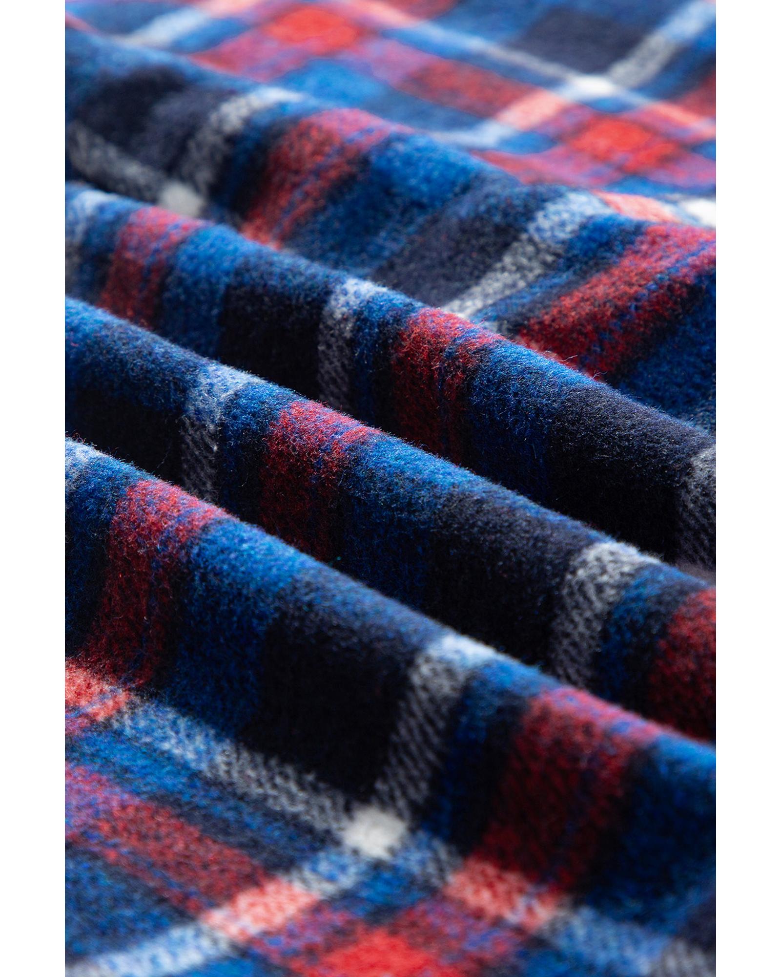 Navy Blue Plaid Flap Pocket Button Up Shacket - M Original price was: $74.99.Current price is: $40.99.