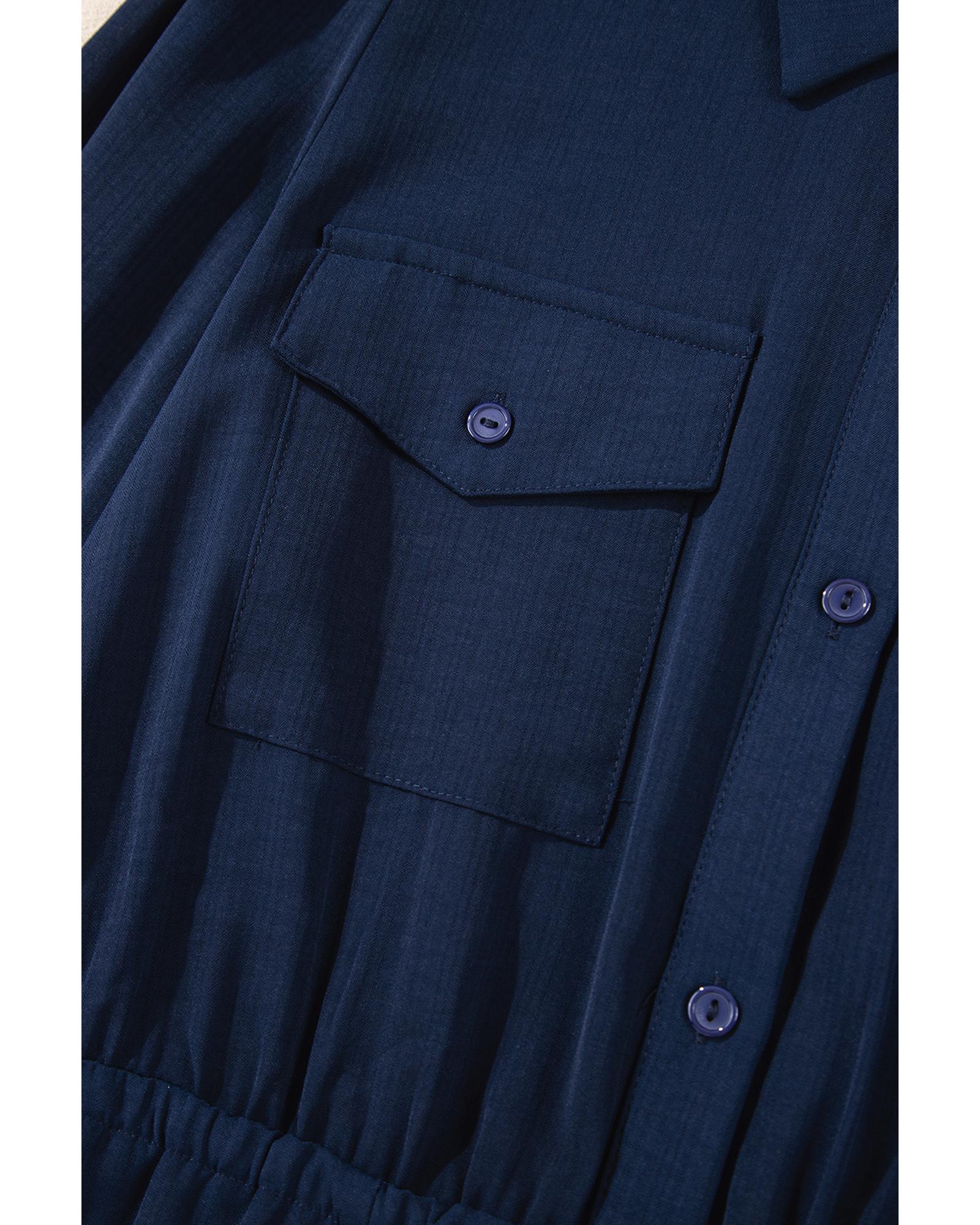 Navy Blue Solid Chest Pockets Tunic Shirt Mini Dress – XL
