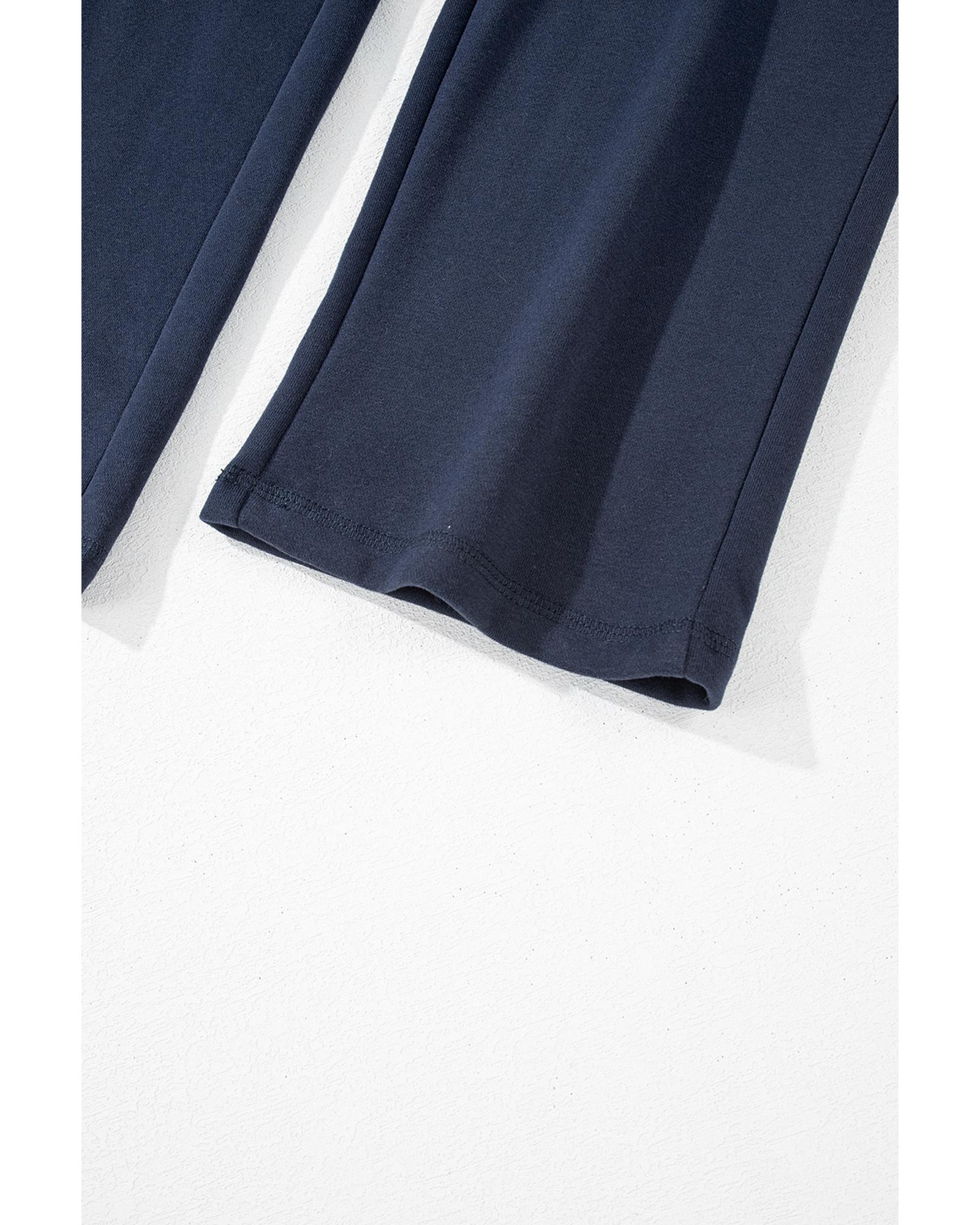 Navy Blue Solid Color Fleece Lined Drawstring Waist Casual Pants – XL