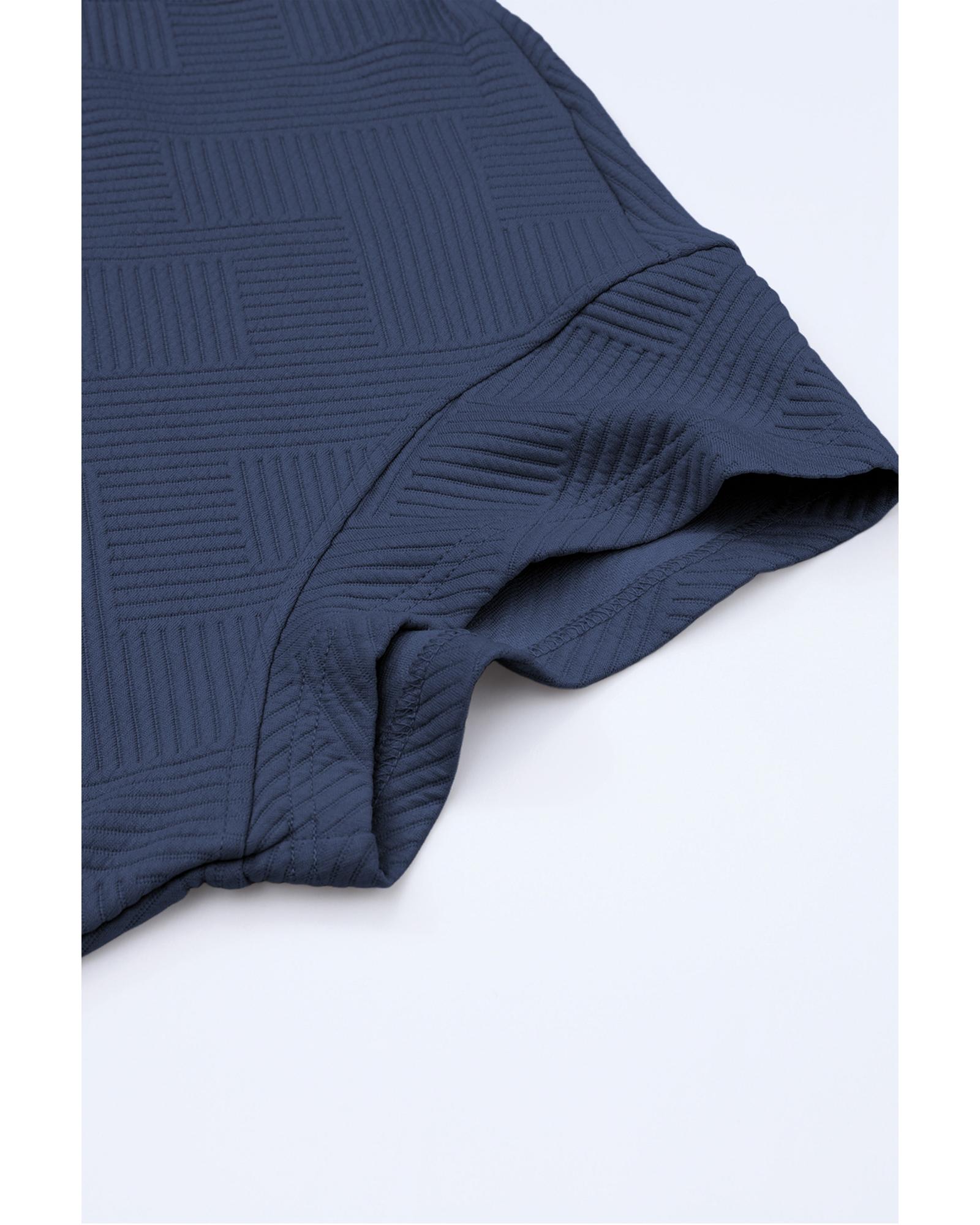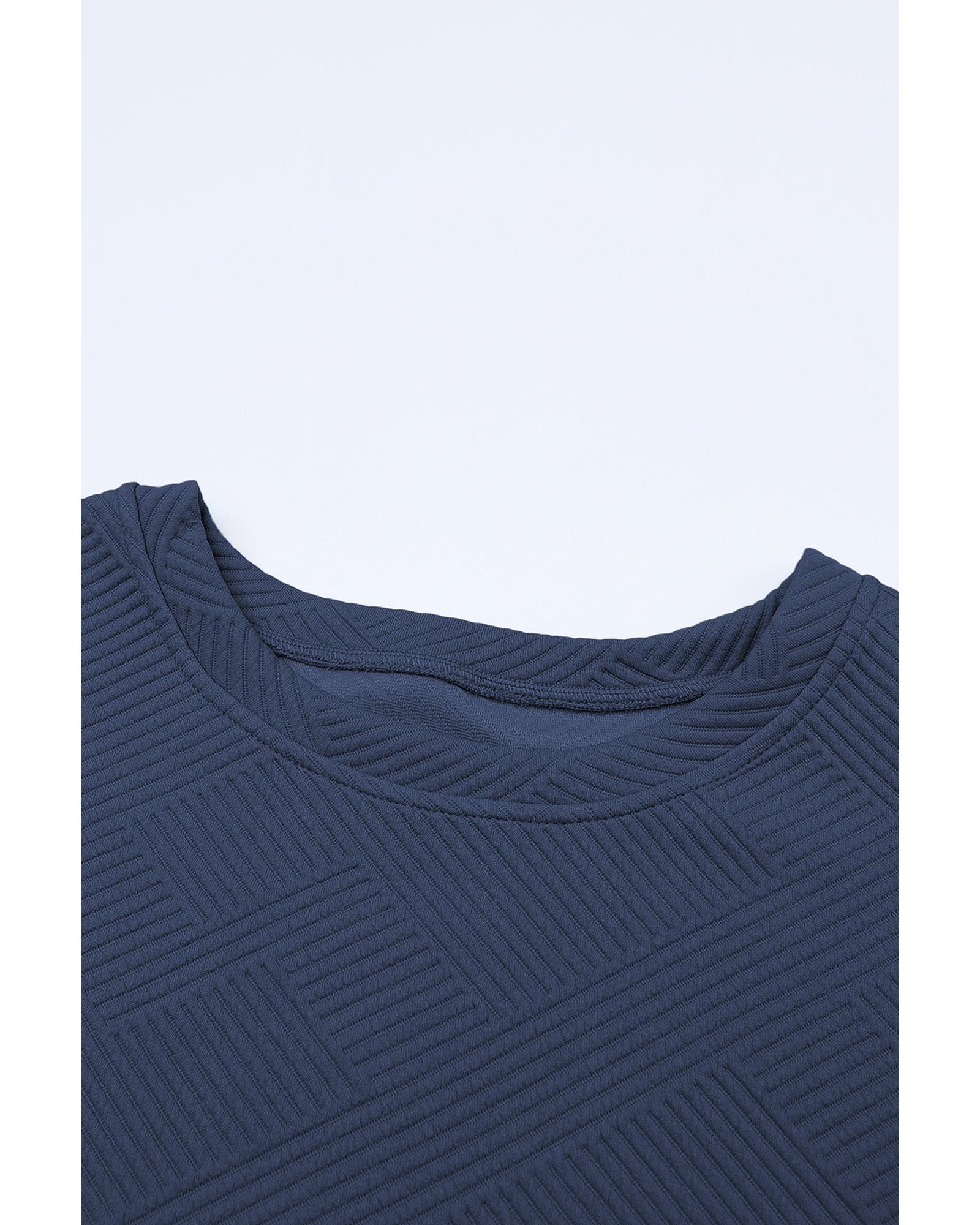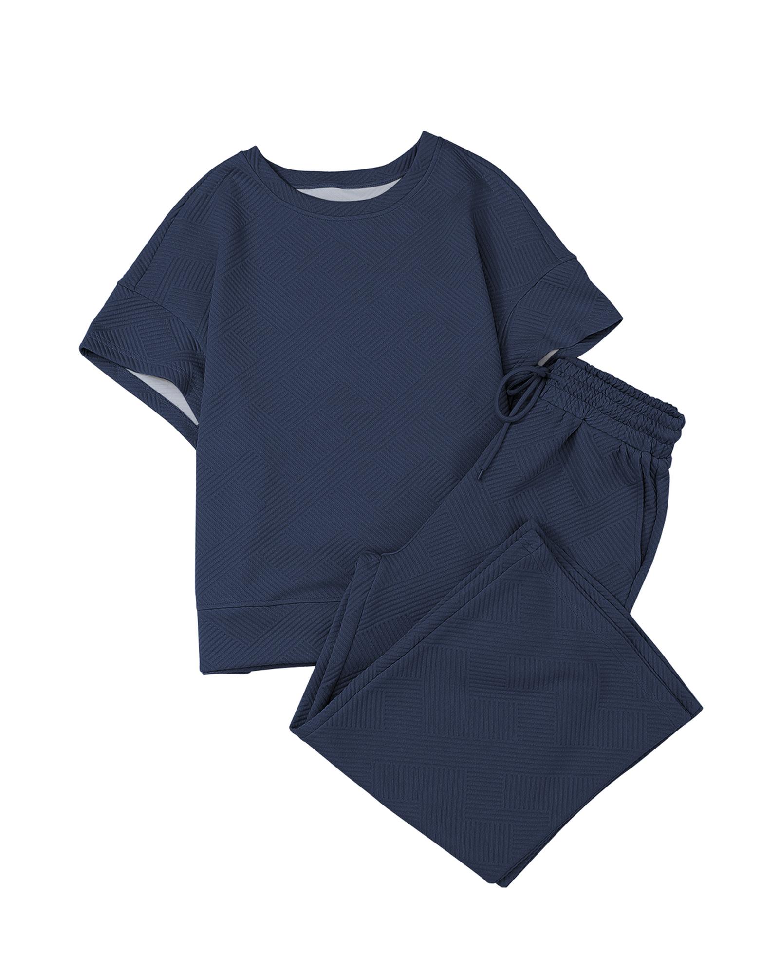 Navy Blue Textured Loose Fit T Shirt and Drawstring Pants Set - S