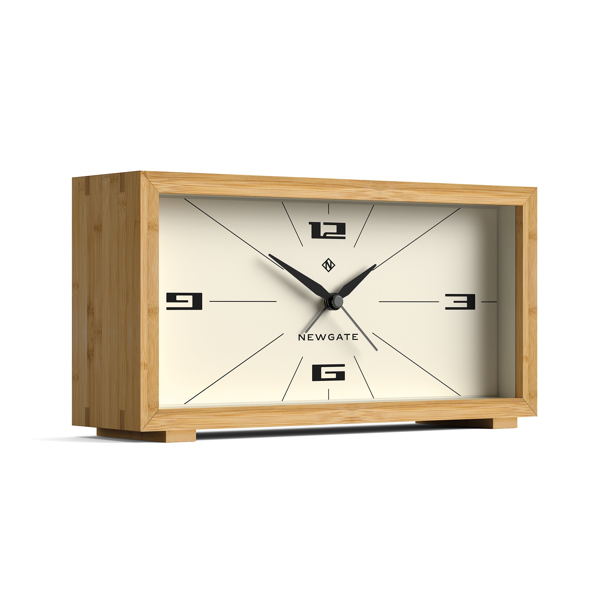 Newgate Lemur Alarm Clock A mid-century modern alarm clock with an emphasis on the modern. This space-age design blends a contemporary cream face and bamboo case with a retro-inspired dial and simplified numerals.