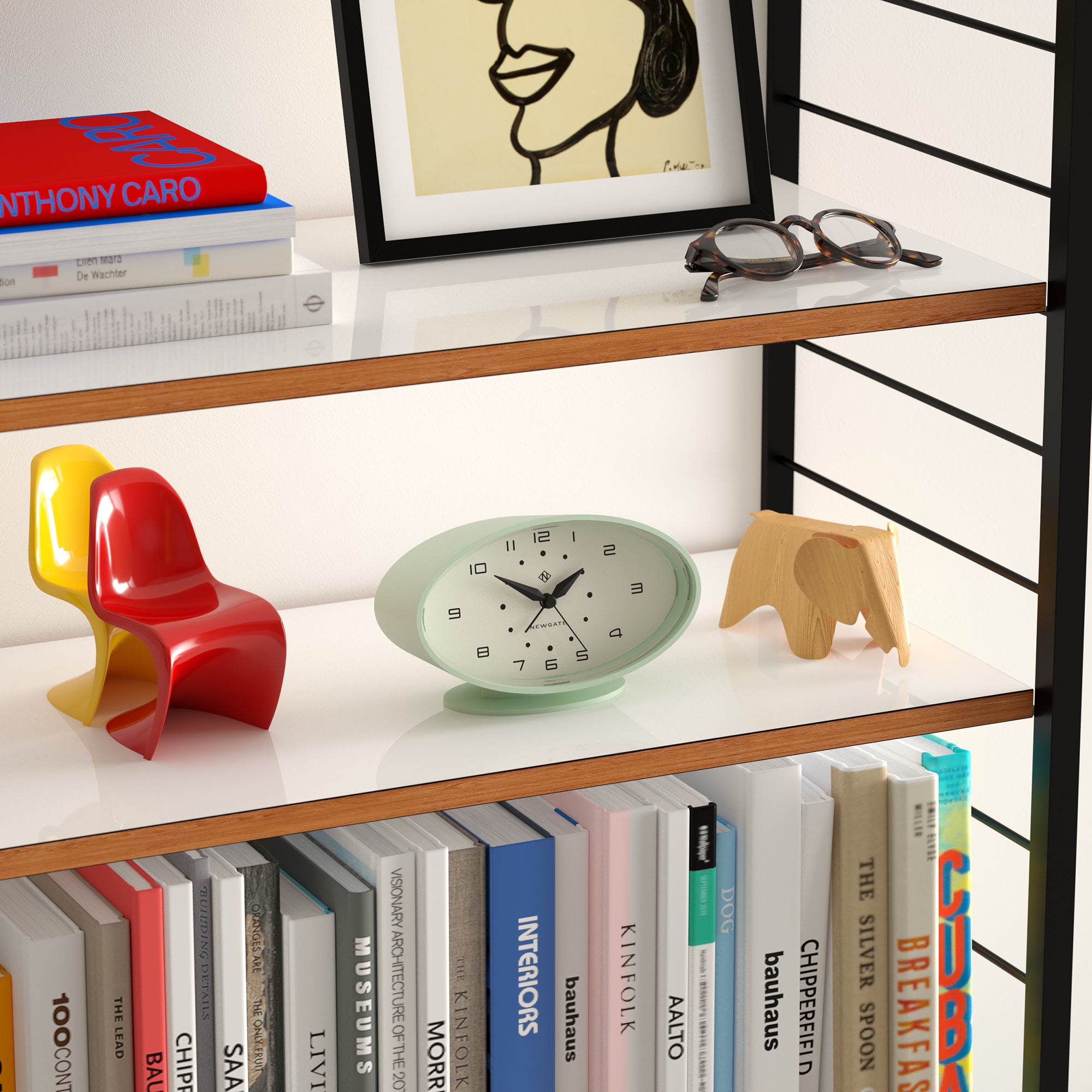 Newgate Ronnie Alarm Clock Neo Mint An acrylic, modern, oval-shaped alarm clock with a retro feel and clean Arabic dial. The Ronnie, a unique shape is perfectly complemented with a matt finish and acrylic lens.
