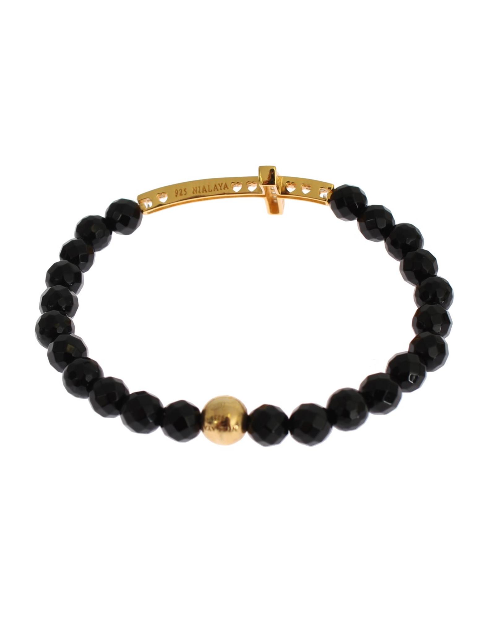 - Authentic NIALAYA Gold Plated Bracelet with Agate Stone and CZ Diamond Cross