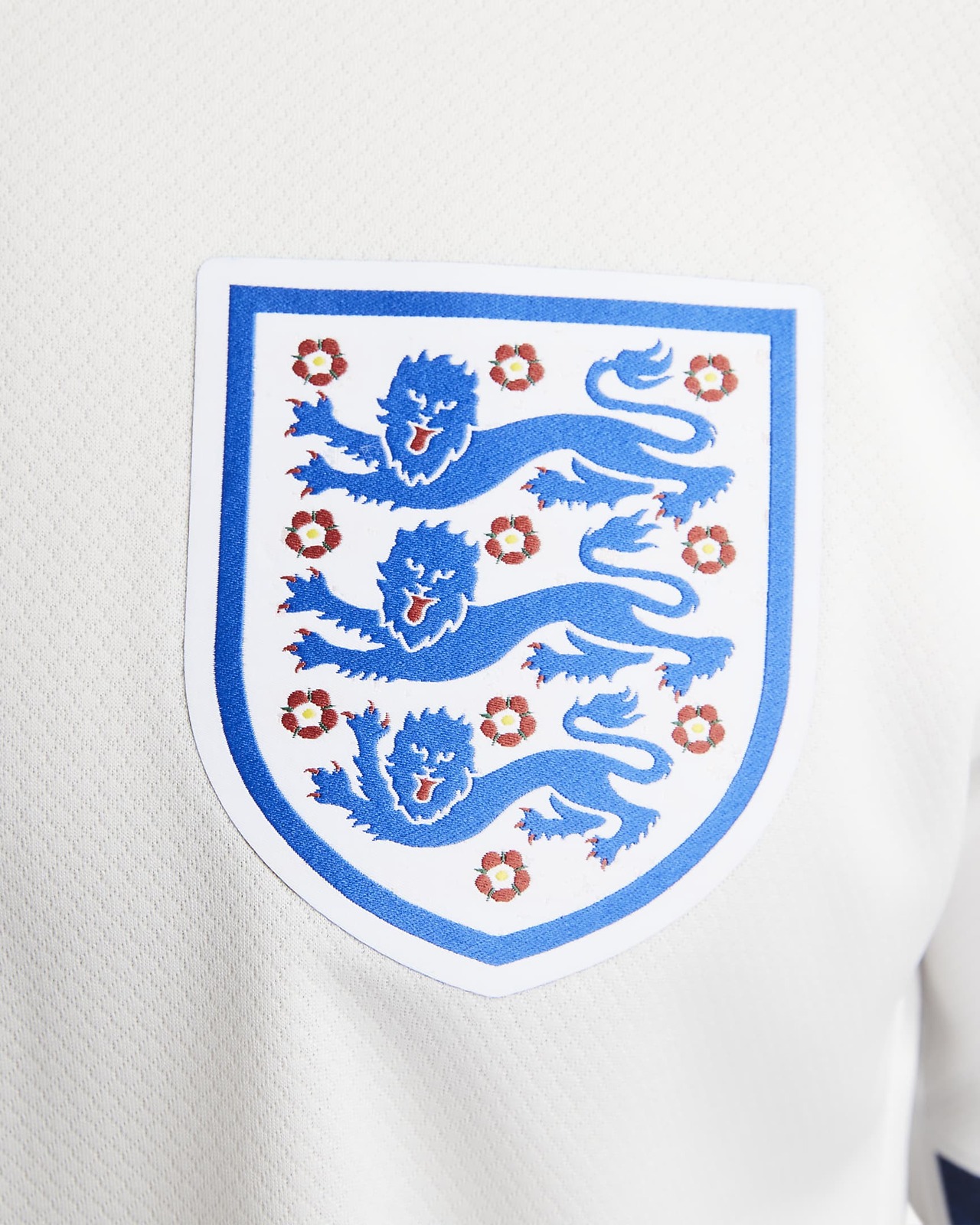 With a white and blue colorway, the England 2023 Home jersey nods to the national team’s impassioned attempt to capture a championship in ’84. A graffiti-inspired accent on the sleeves pairs with a deconstructed England graphic hidden on the insides gives this throwback design a modern feel. Like other jerseys in our Stadium collection, this one pairs replica design details with sweat-wicking technology to give you a game-ready look inspired by the Lionesses