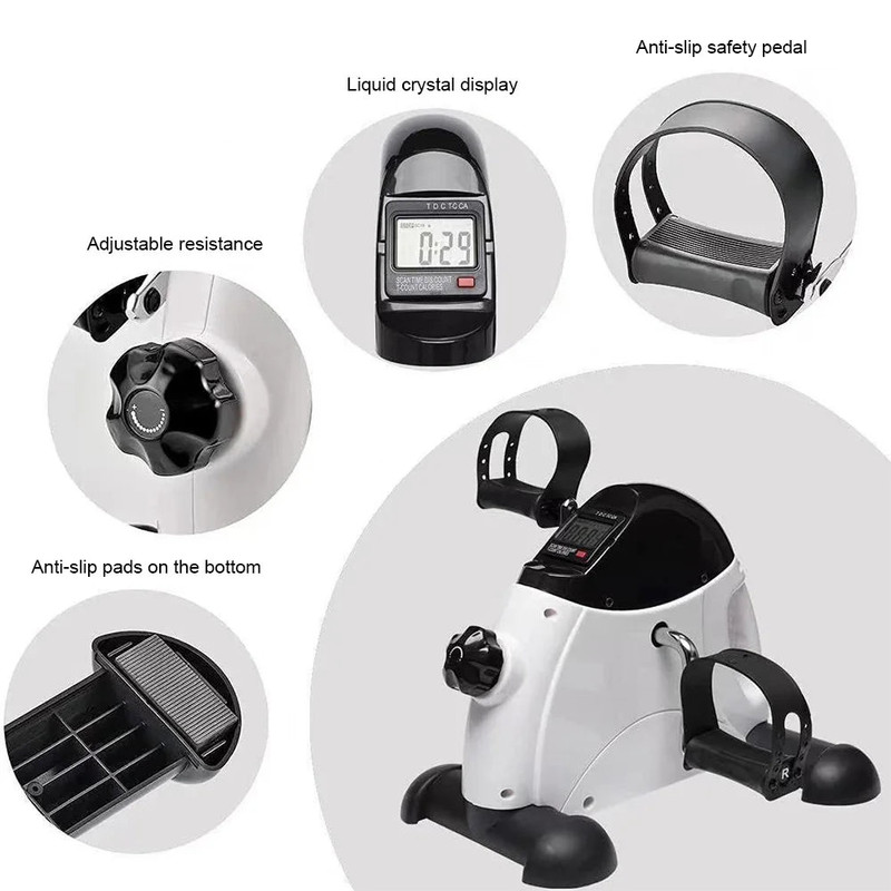 Description: The NNEOBA Mini Exercise Bike is your perfect fitness companion for home workouts. Designed for both arm and leg exercises, this compact and portable pedal trainer offers a versatile workout experience. The high-quality ABS pedals feature an anti-slip design and foot straps for a secure grip, while the non-slip base ensures stability during use. Track your progress effortlessly with the multi-function LED display that shows steps, exercise time, and speed. With adjustable resistance levels, you can tailor the workout intensity to match your fitness level, making it easy to build endurance and burn fat. Whether you’re at home or the office, this mini exercise bike lets you stay active anytime, anywhere.