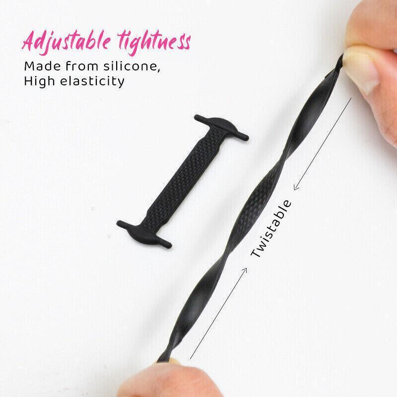 No Tie Elastic Silicone Shoe Laces 16PCS Shoelaces for Sneakers and Runners – Black 16PCS
