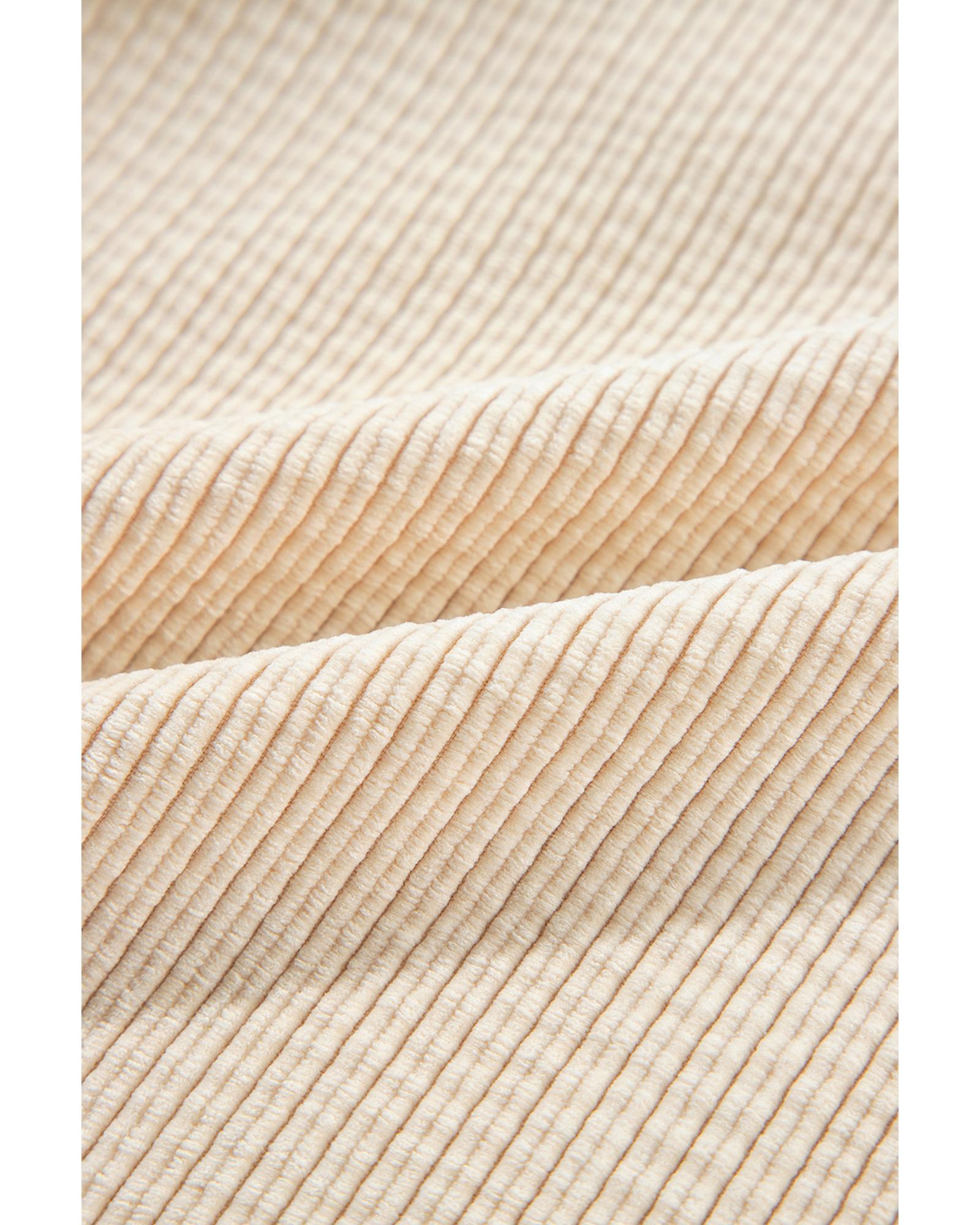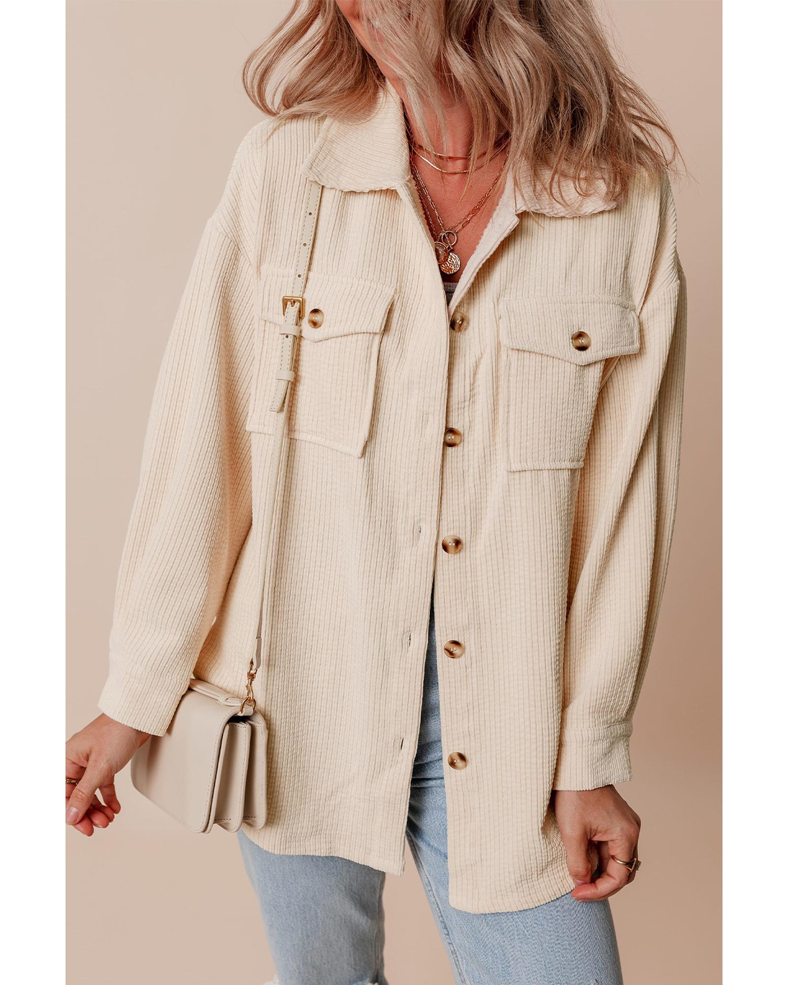 Oatmeal Corduroy Flap Pocket Button Up Shacket – L