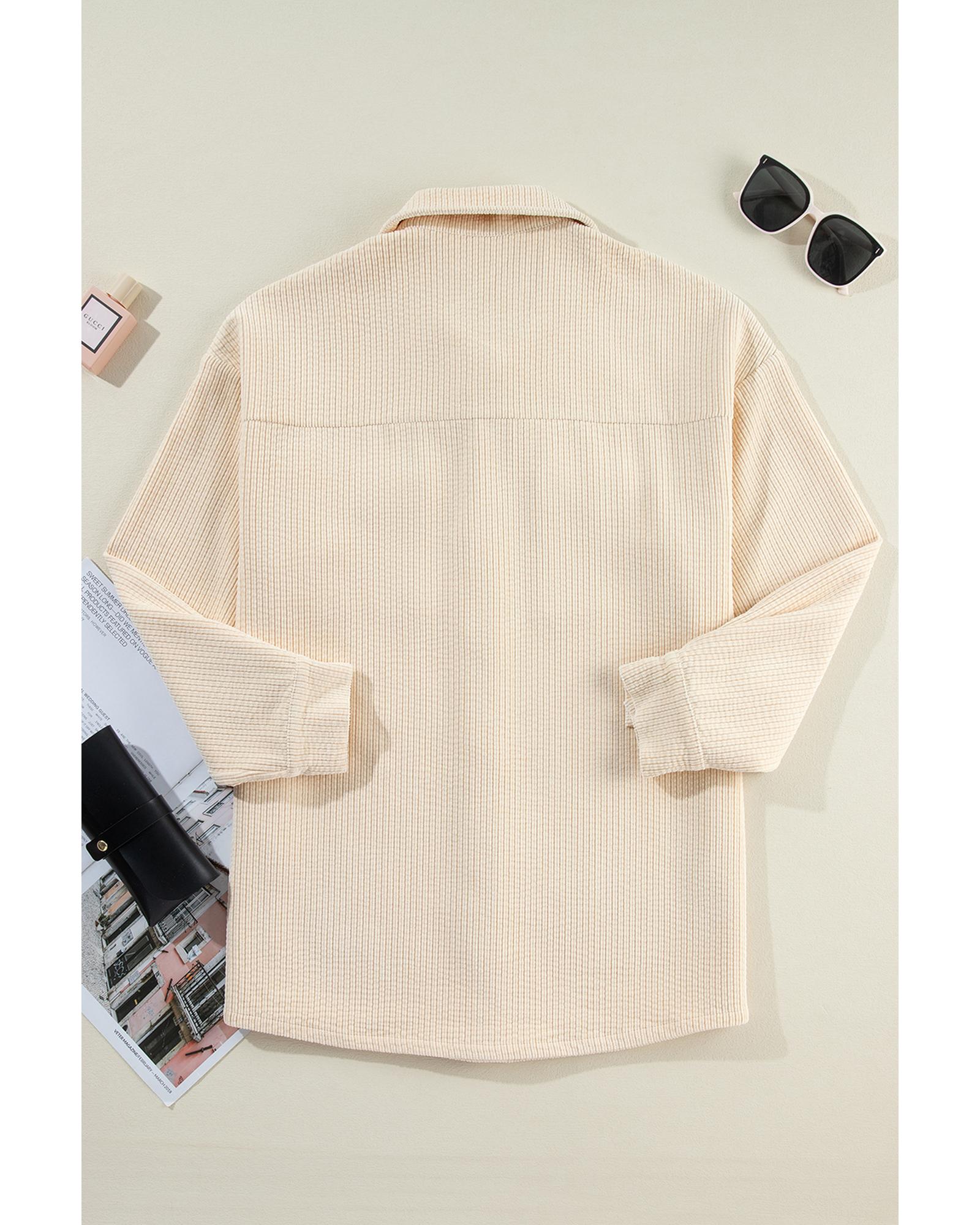 Oatmeal Corduroy Flap Pocket Button Up Shacket – M