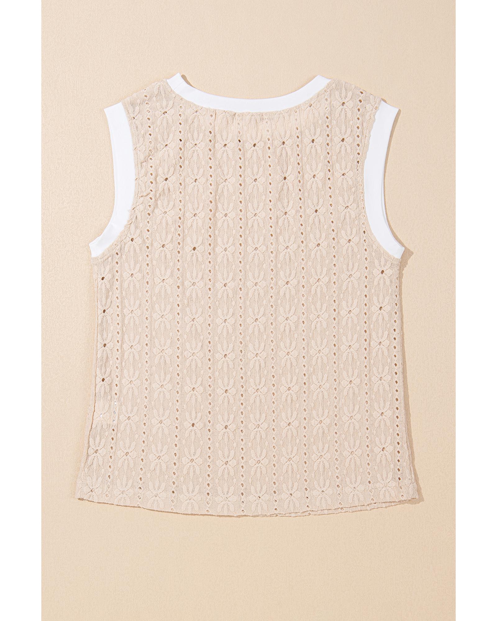 Oatmeal Floral Textured Crew Neck Tank Top – L