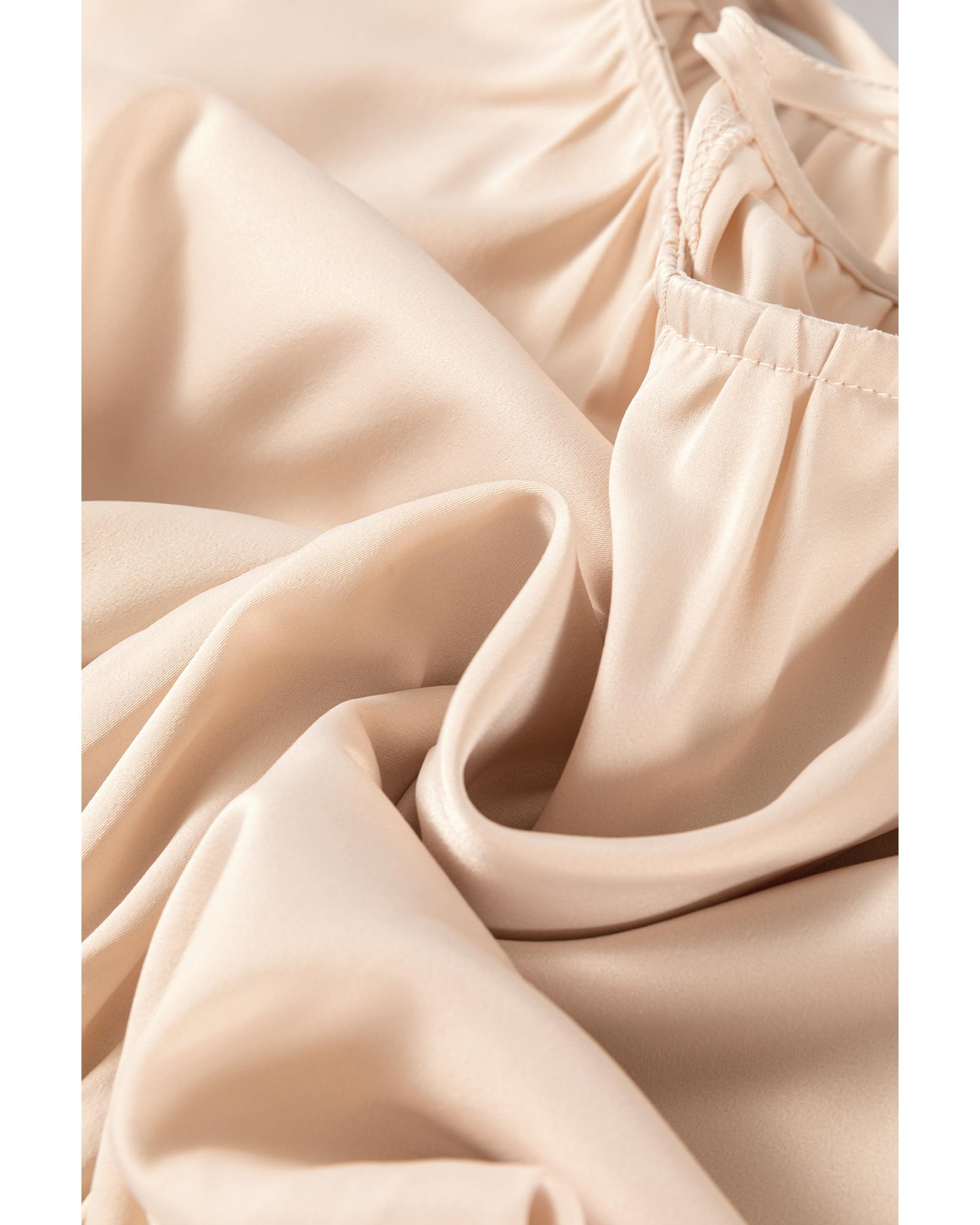 Oatmeal Lace-up Keyhole Back Ruffled Peplum Blouse – L