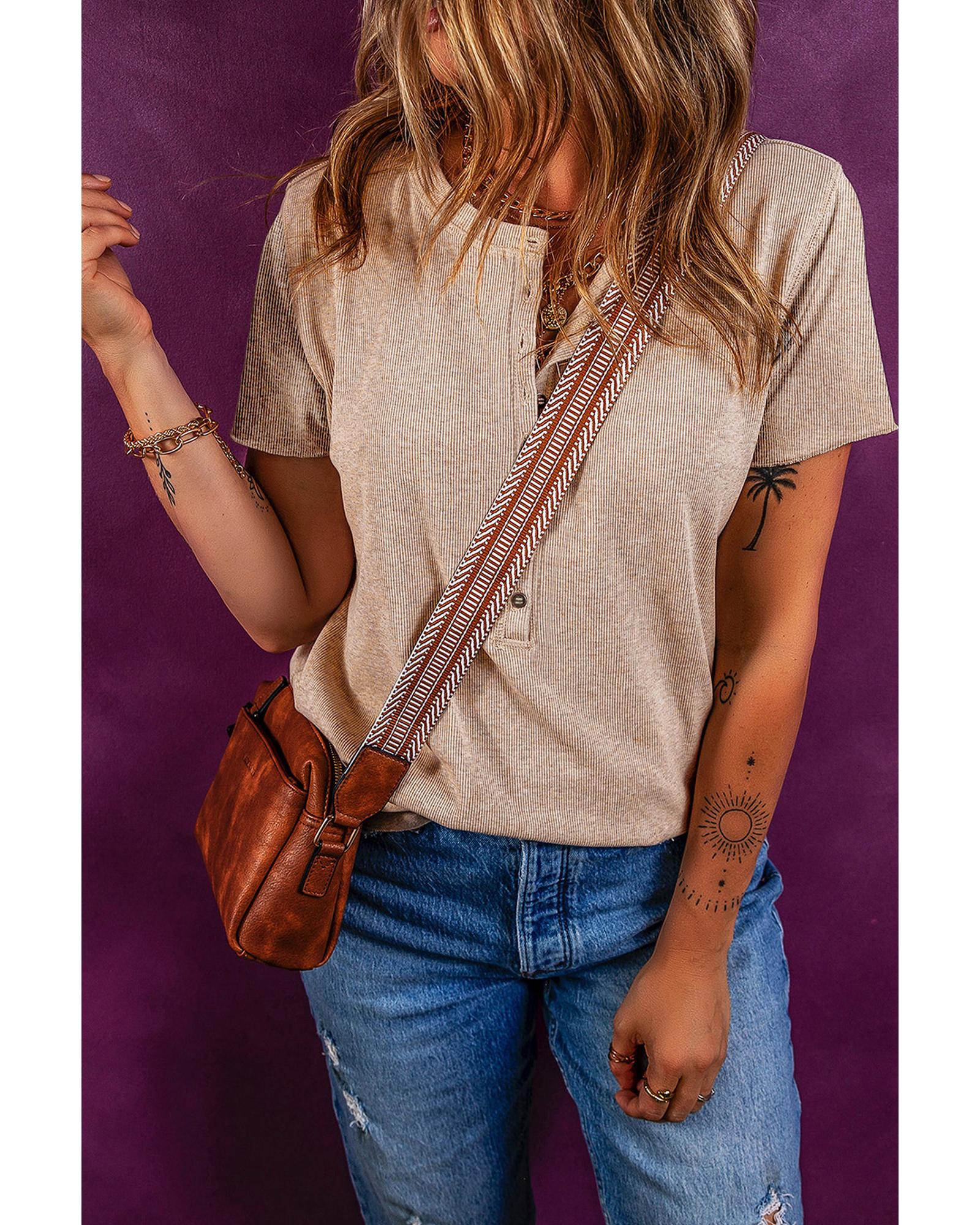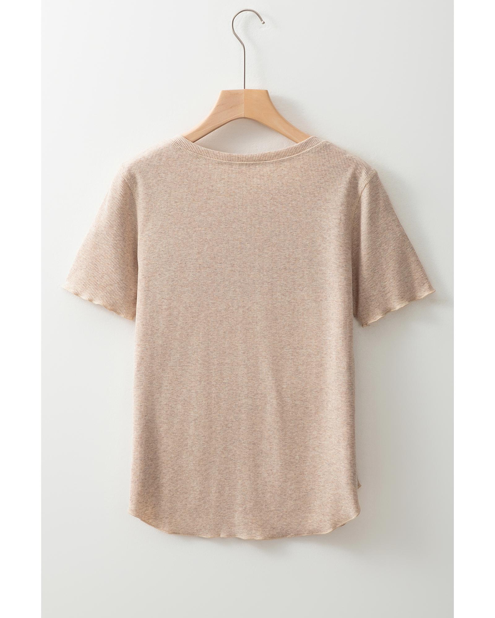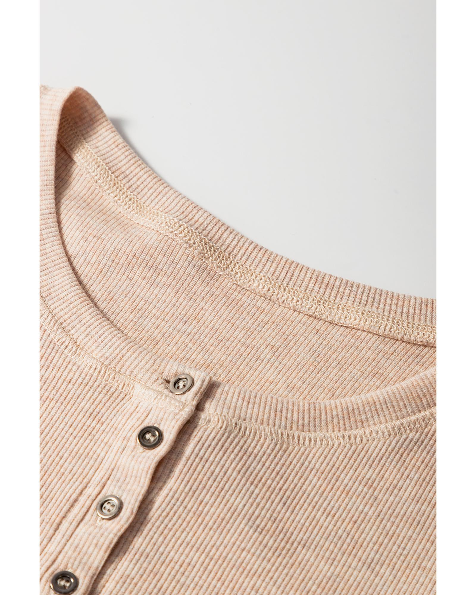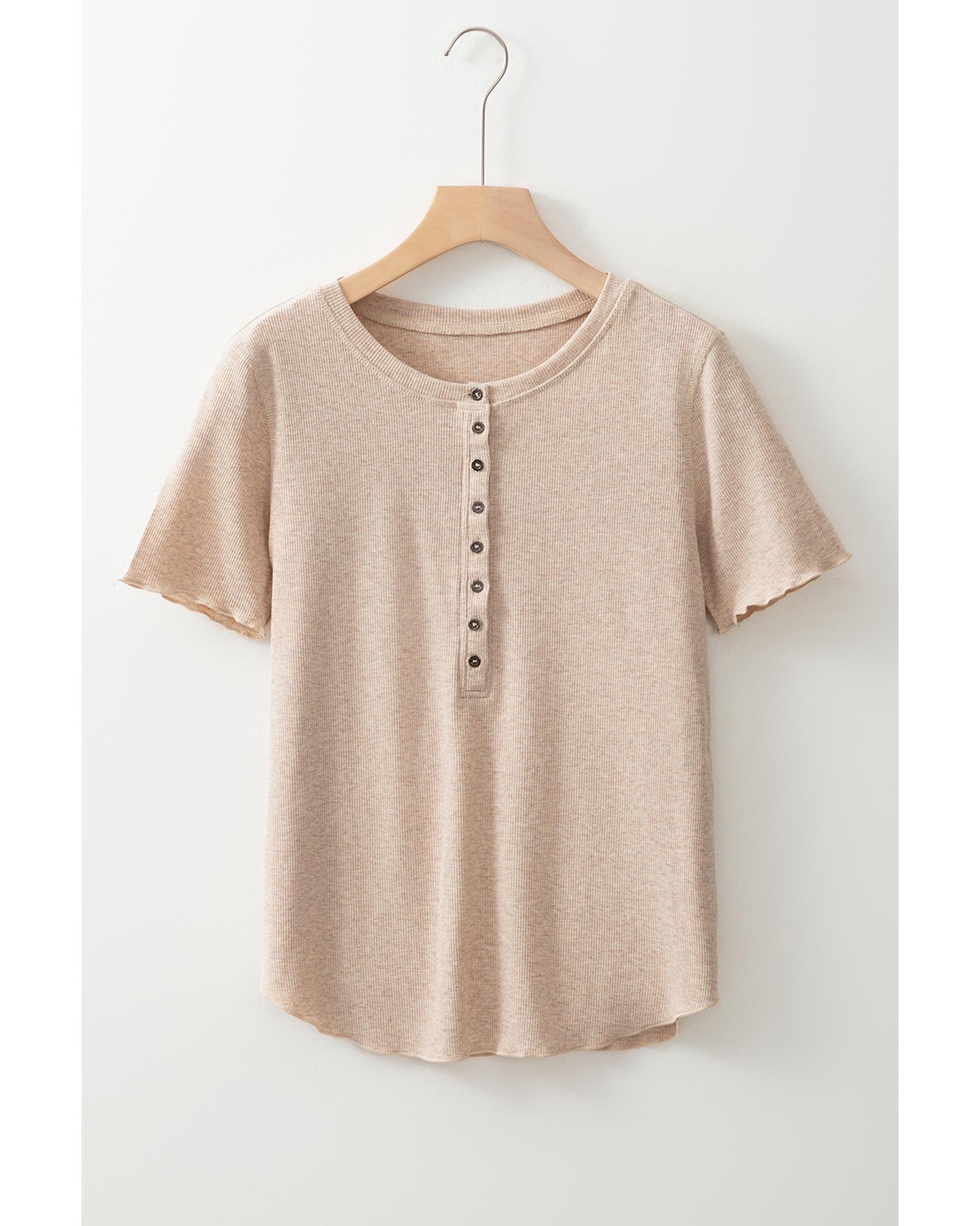 Oatmeal Short Sleeve Half Button Ribbed Knit Top – XL