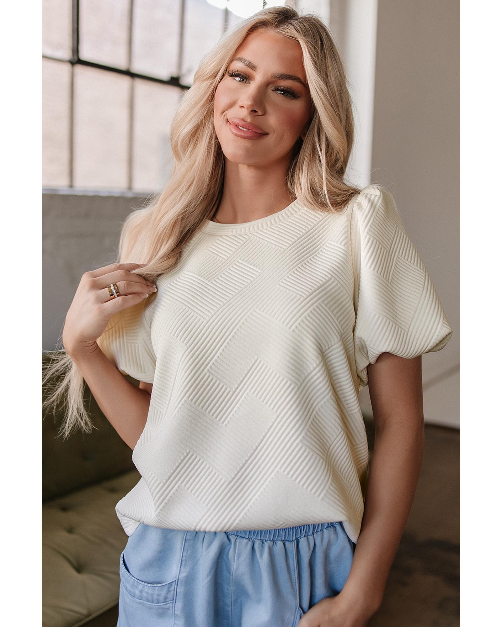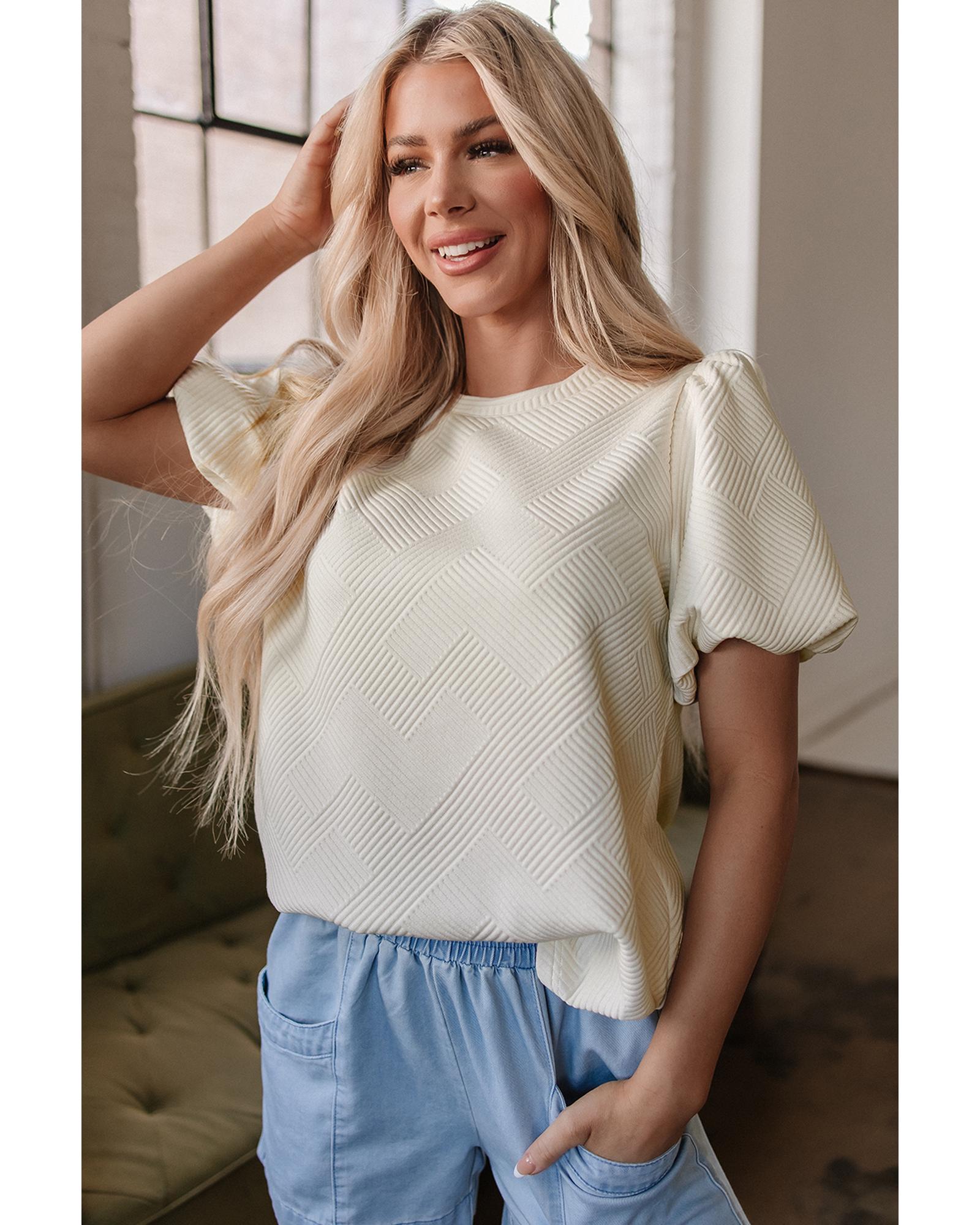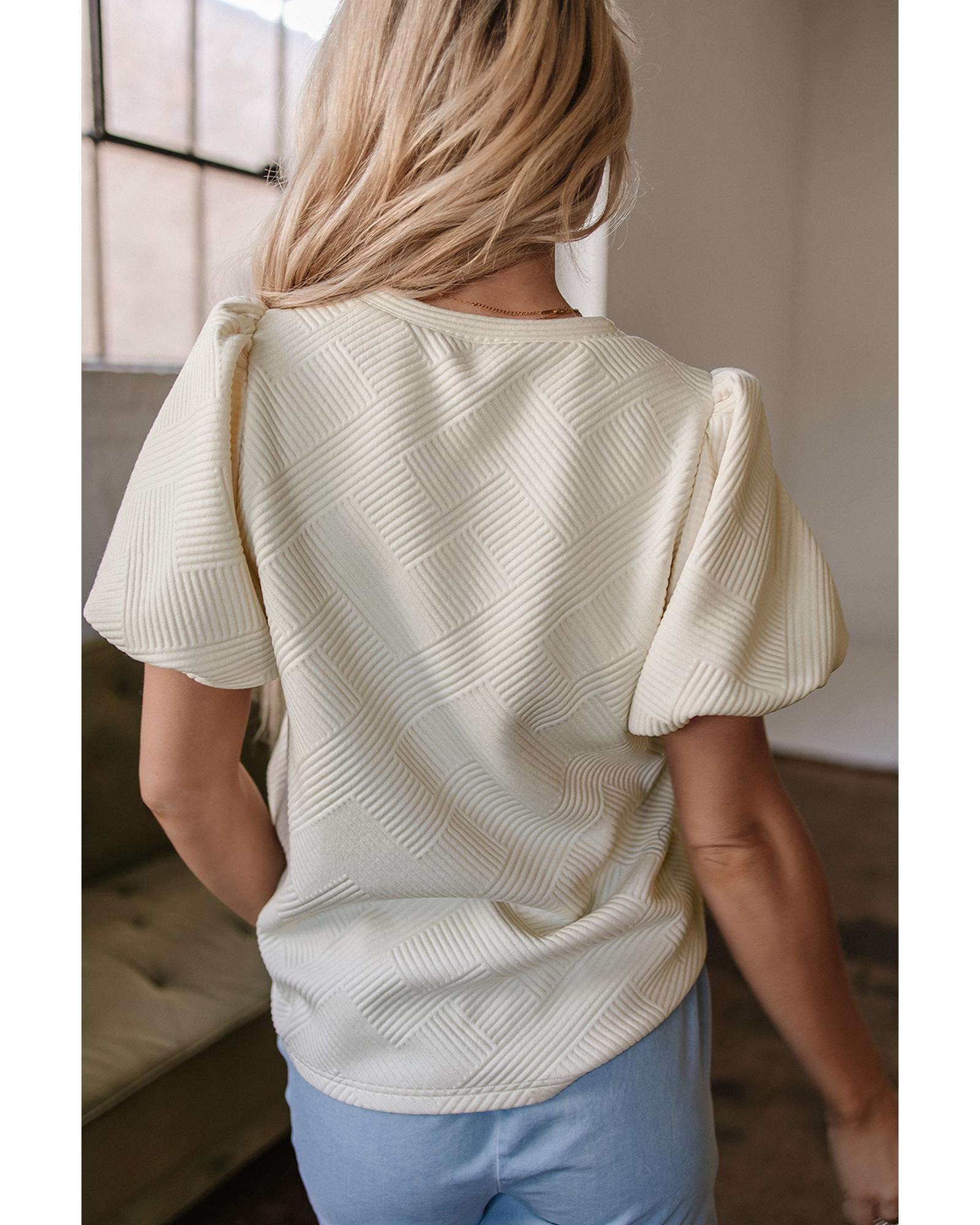 Oatmeal Textured Puff Sleeve T-shirt – L