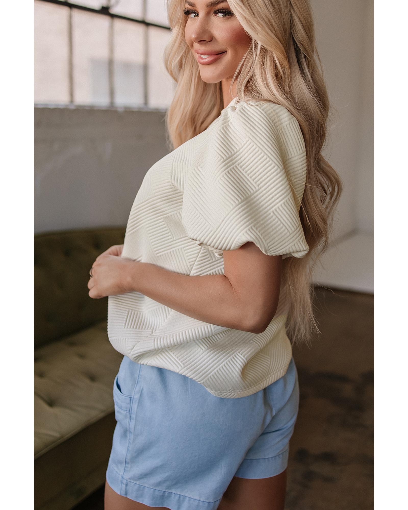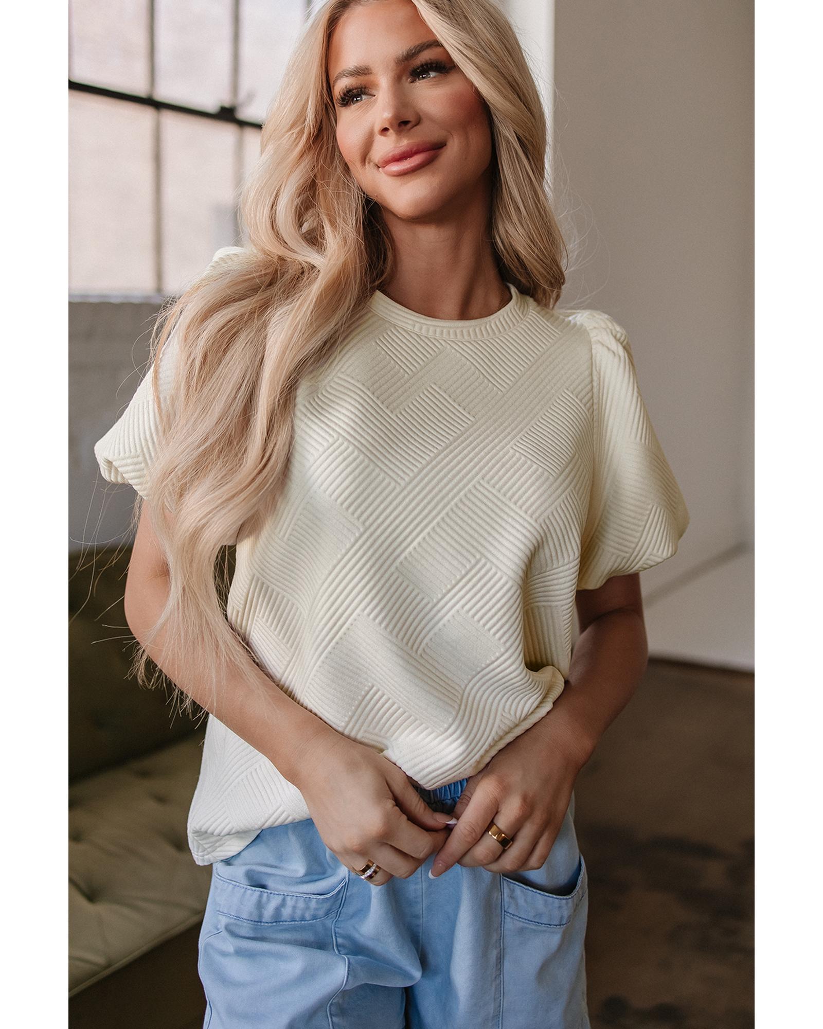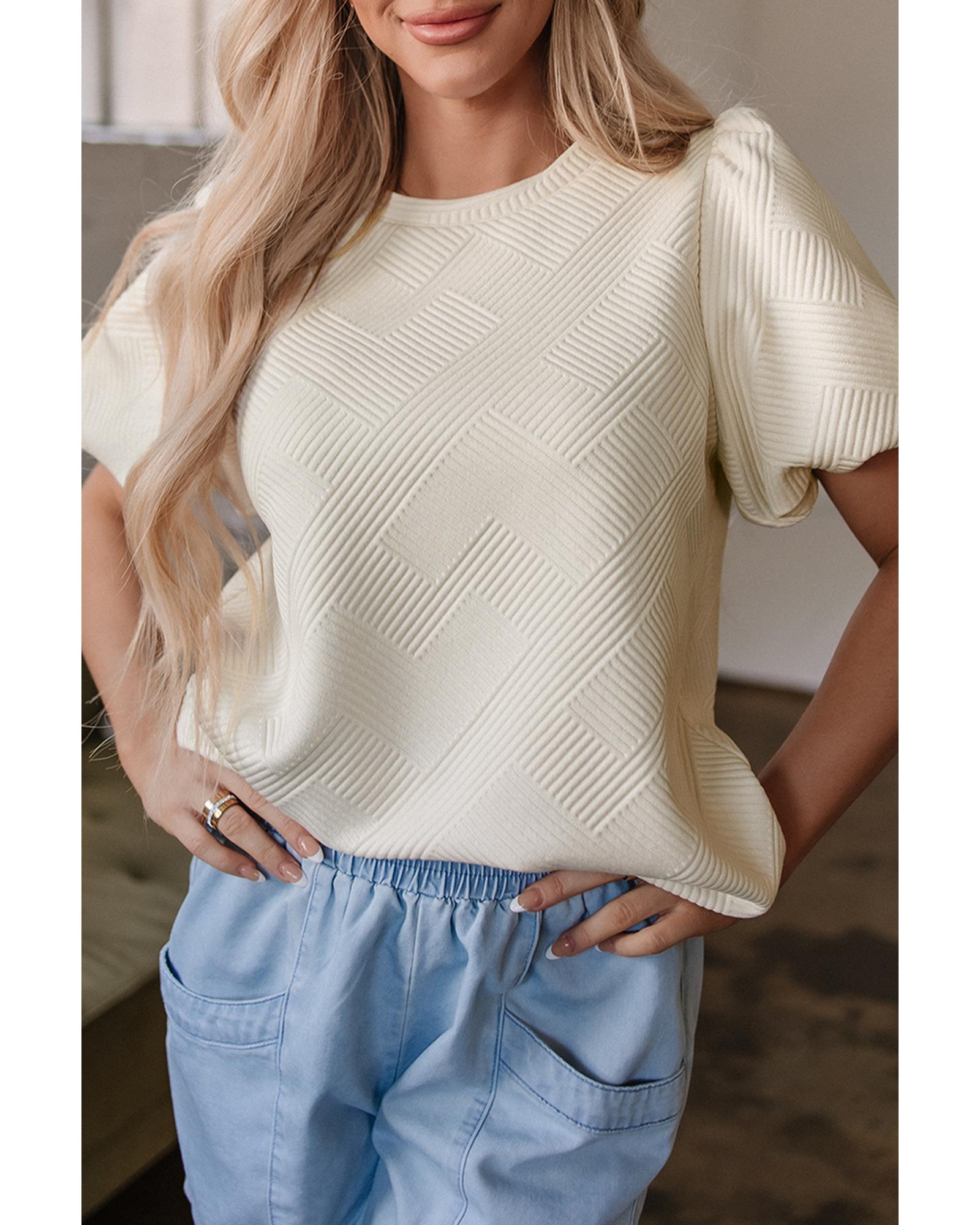 Oatmeal Textured Puff Sleeve T-shirt – S
