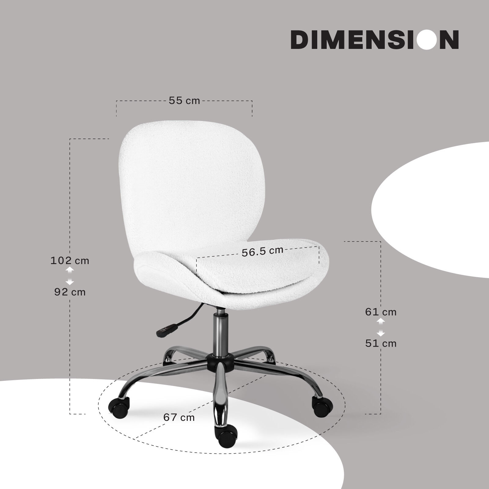 Office Desk Chair – Teddy Boucle Armless Swivel Study Seat OVOID WHITE