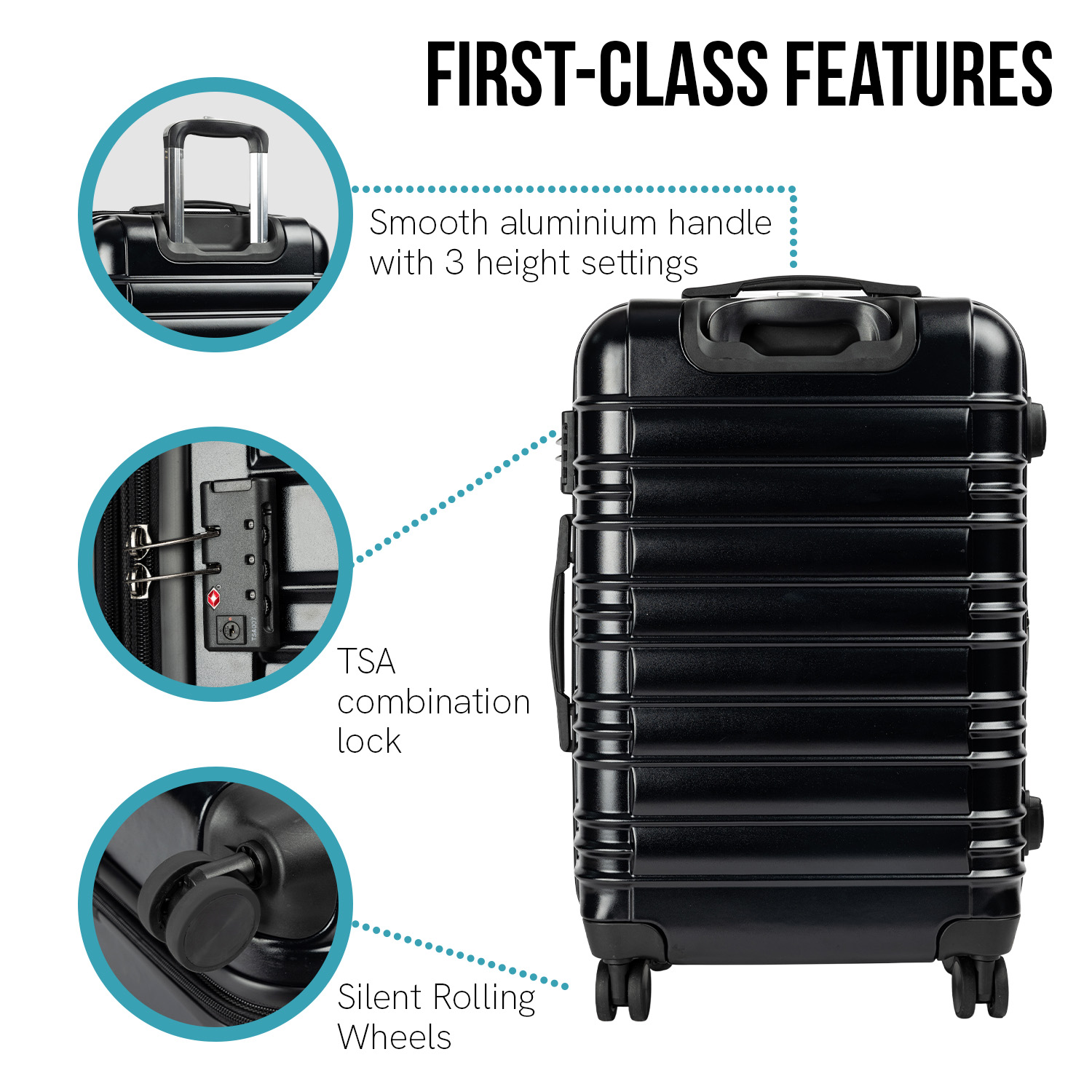 - Premium ABS+PC shell – strong and lightweight