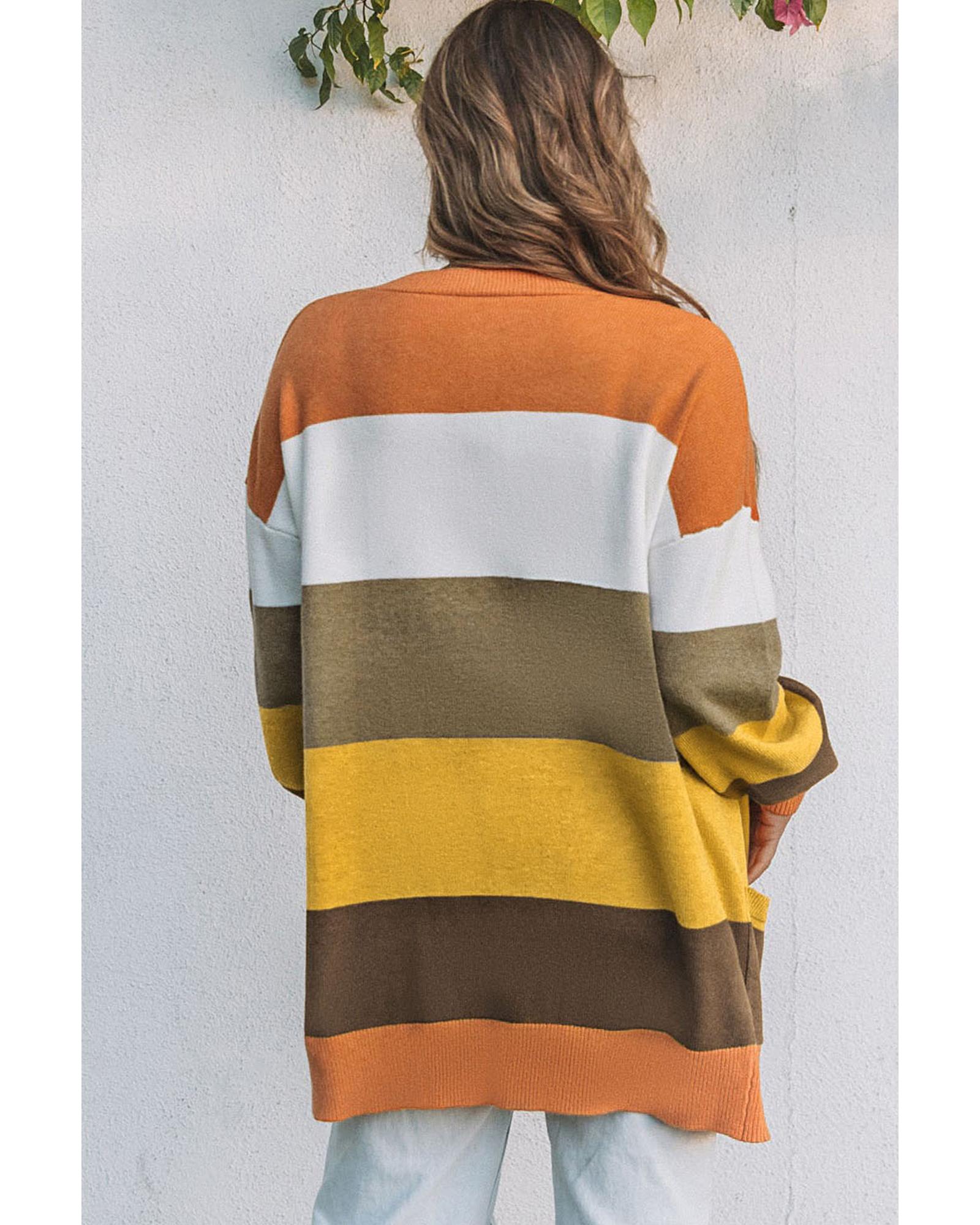 Pink Color Block Eyelet Long Sleeve Twisted Back Knit Top - L