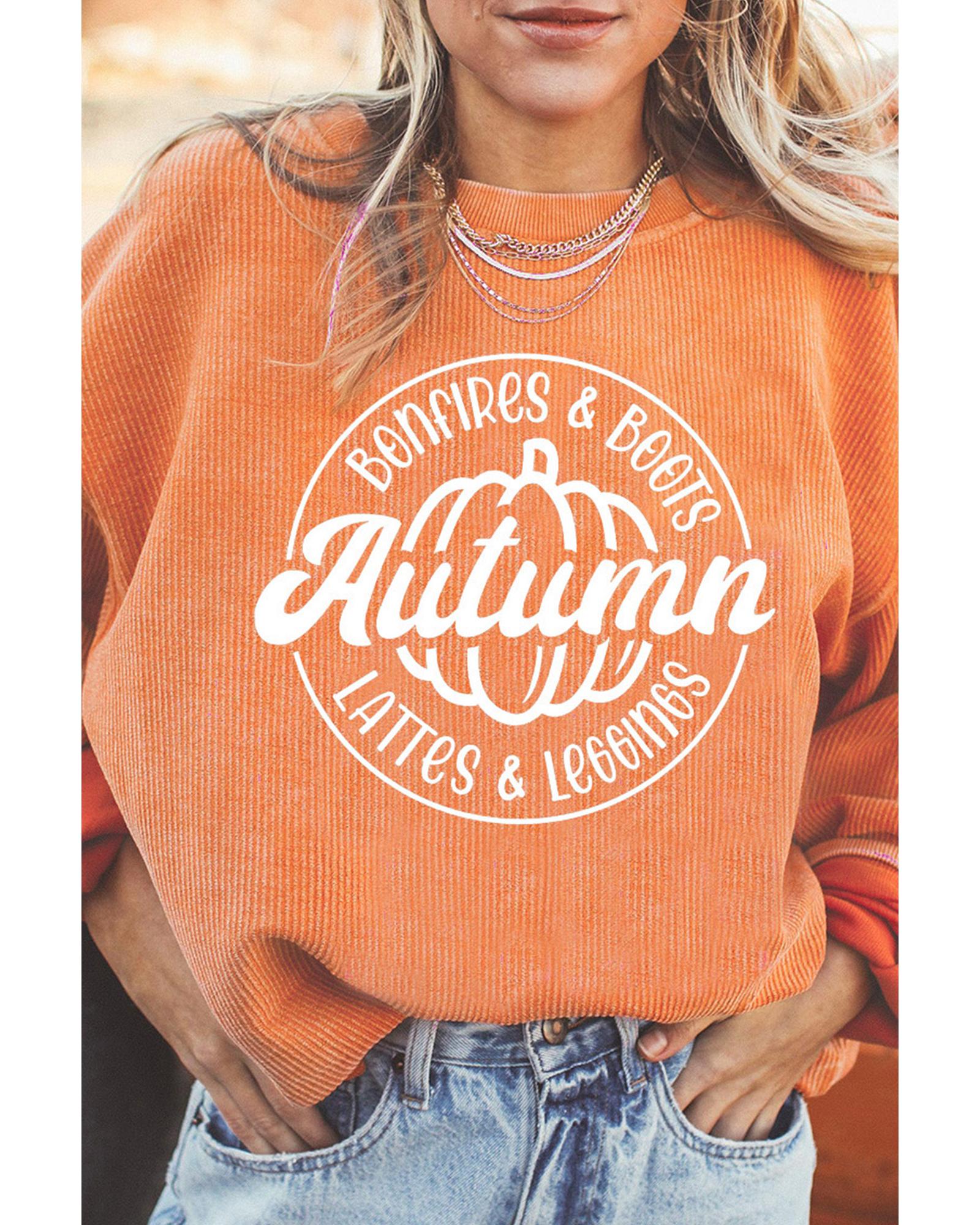 Orange Autumn Pumpkin Graphic Print Corded Oversized Sweatshirt – L