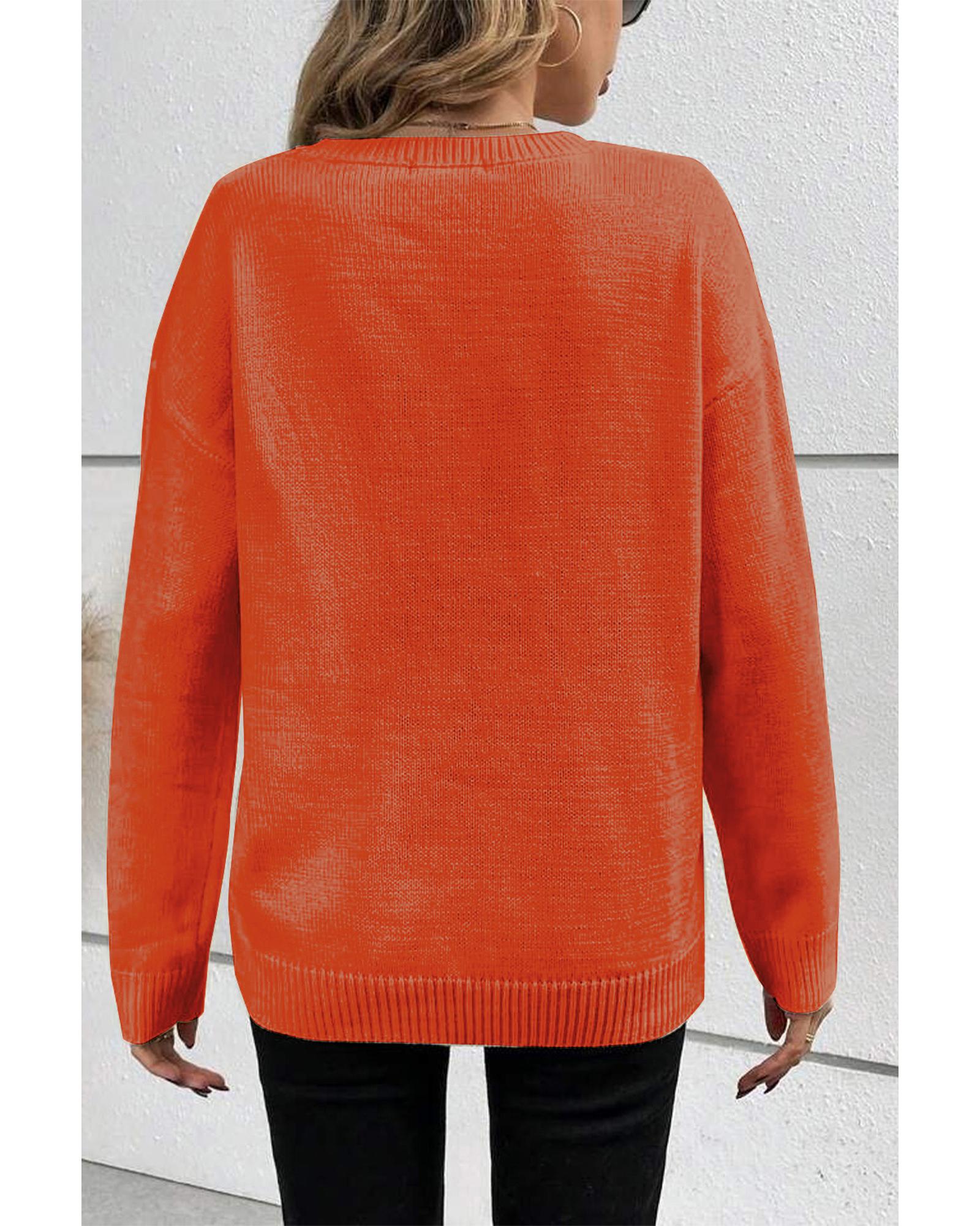 Orange Boo Knitted Pattern Ribbed Edge Drop Shoulder Sweater – L
