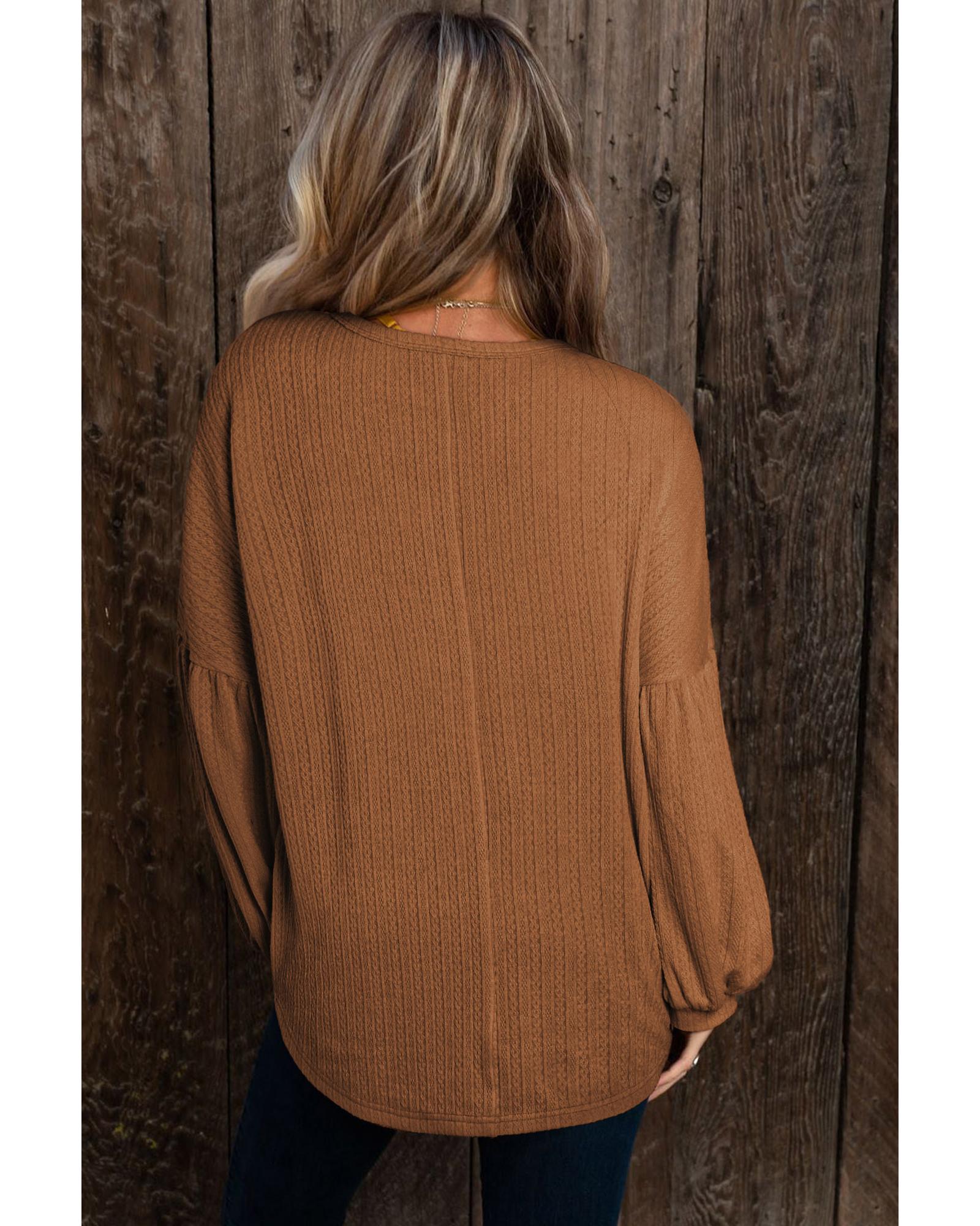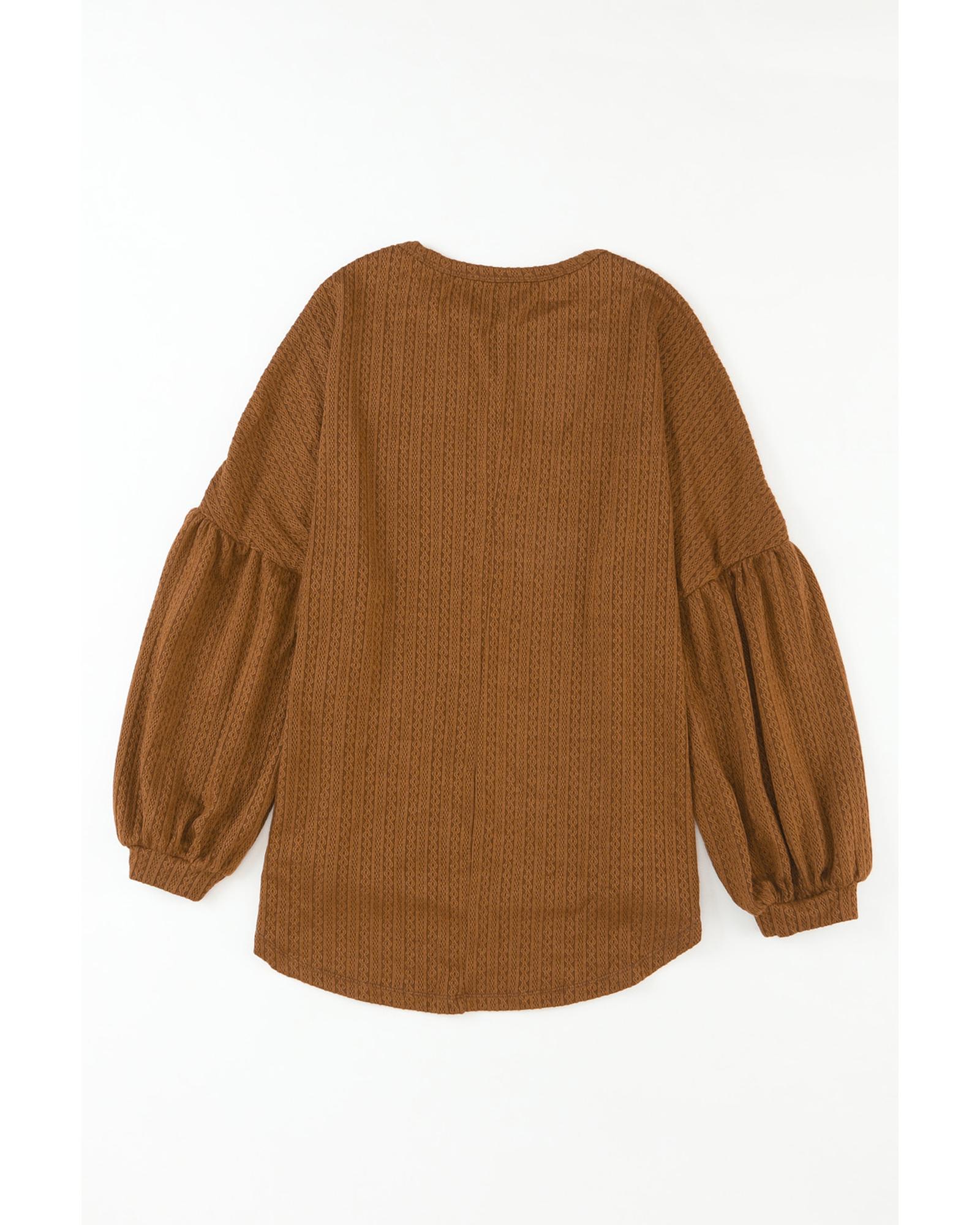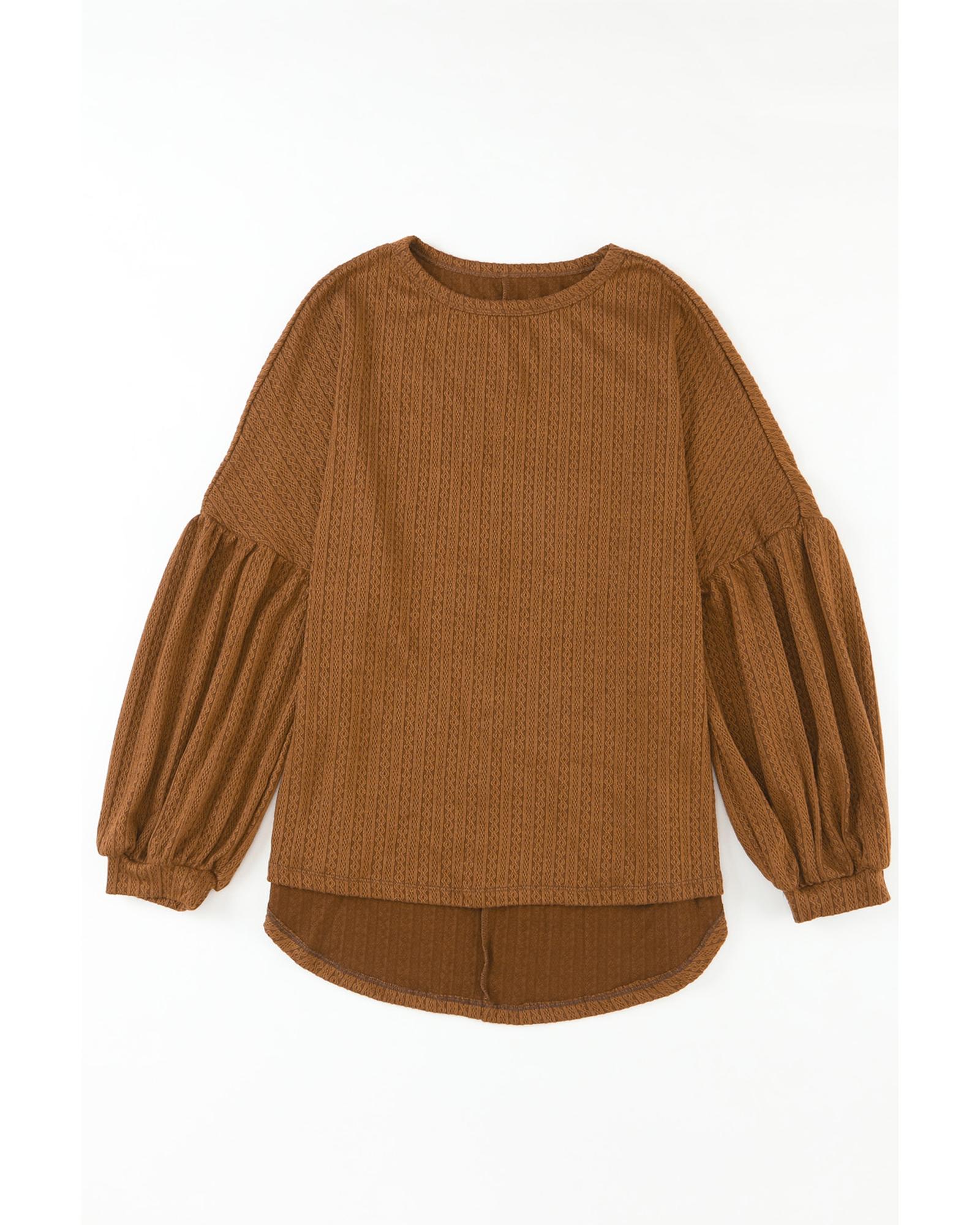 Orange Faux Knit Jacquard Puffy Long Sleeve Top – M