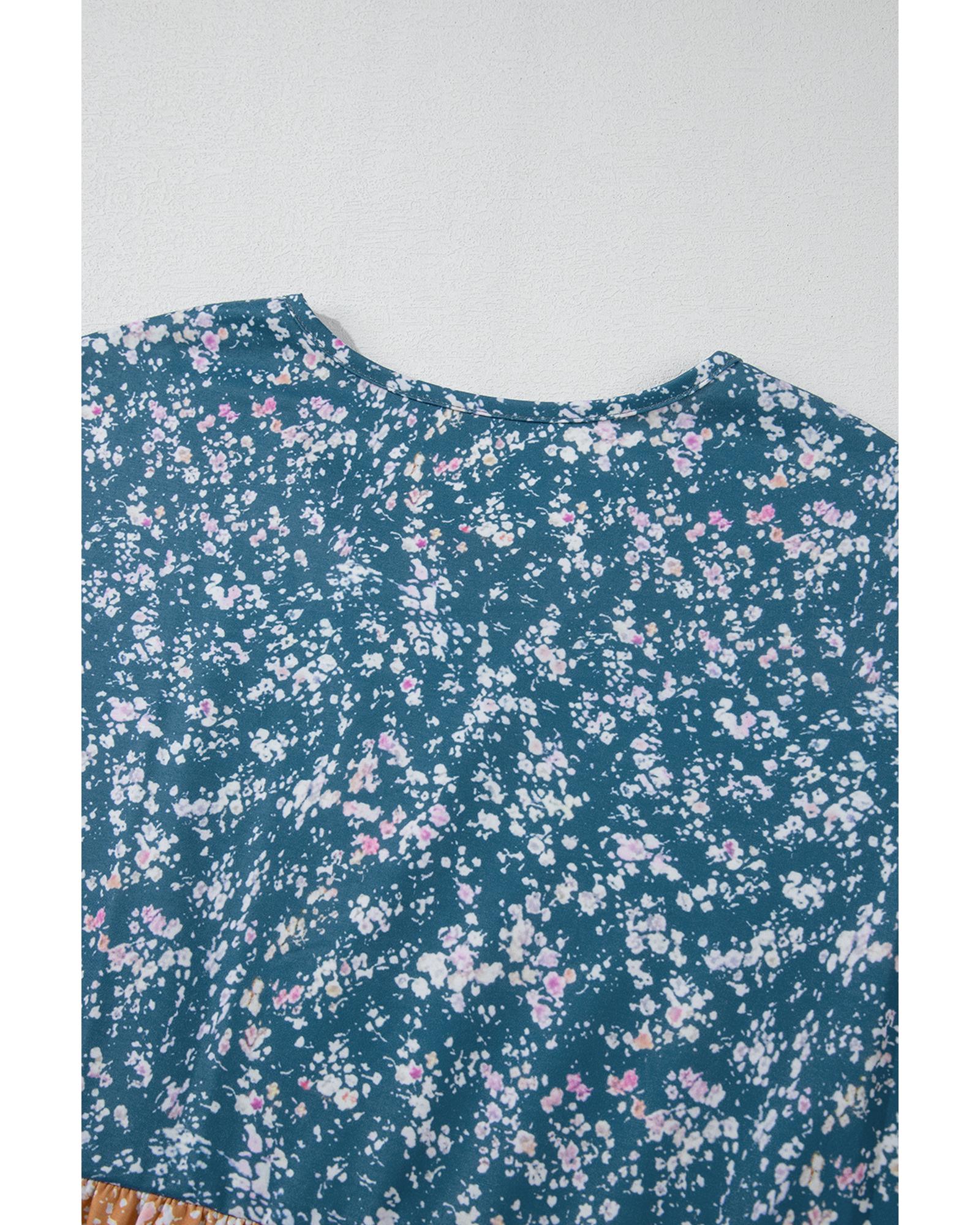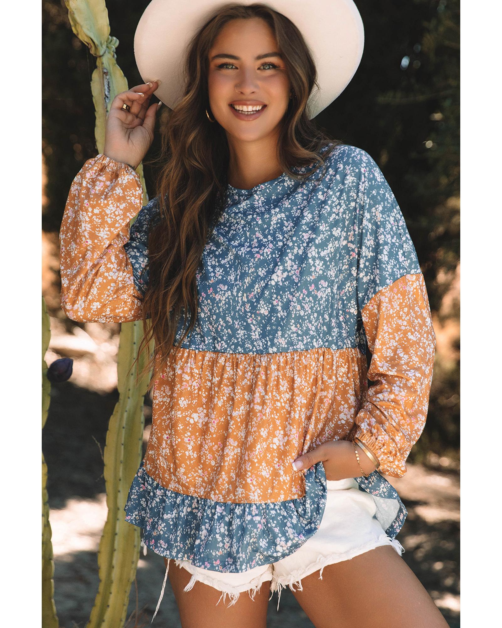 Desert Gold Floral Puff Sleeve Patchwork Round Neck Blouse - M Original price was: $66.99.Current price is: $35.99.