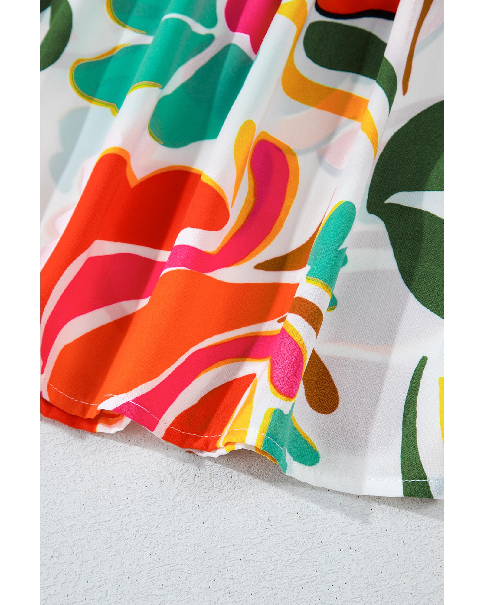 Orange Floral Print Drawstring V Neck Tiered Plus Size Dress – 3X