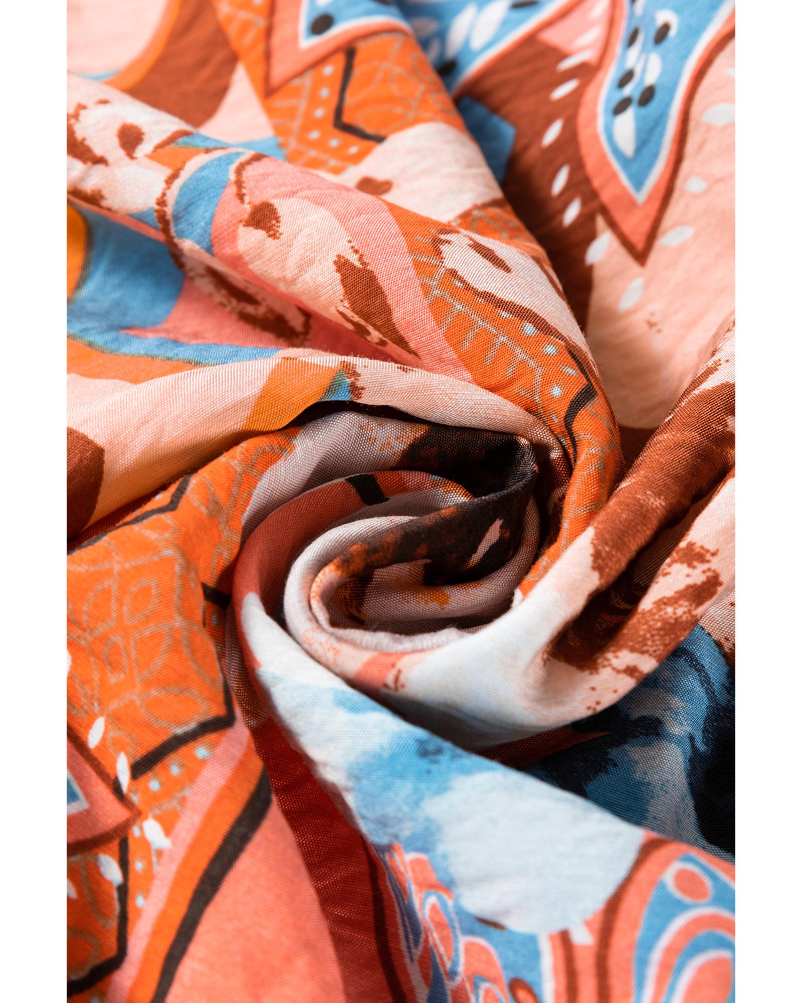 Orange Floral Print Shirred Cuff Buttoned Loose Shirt - XL