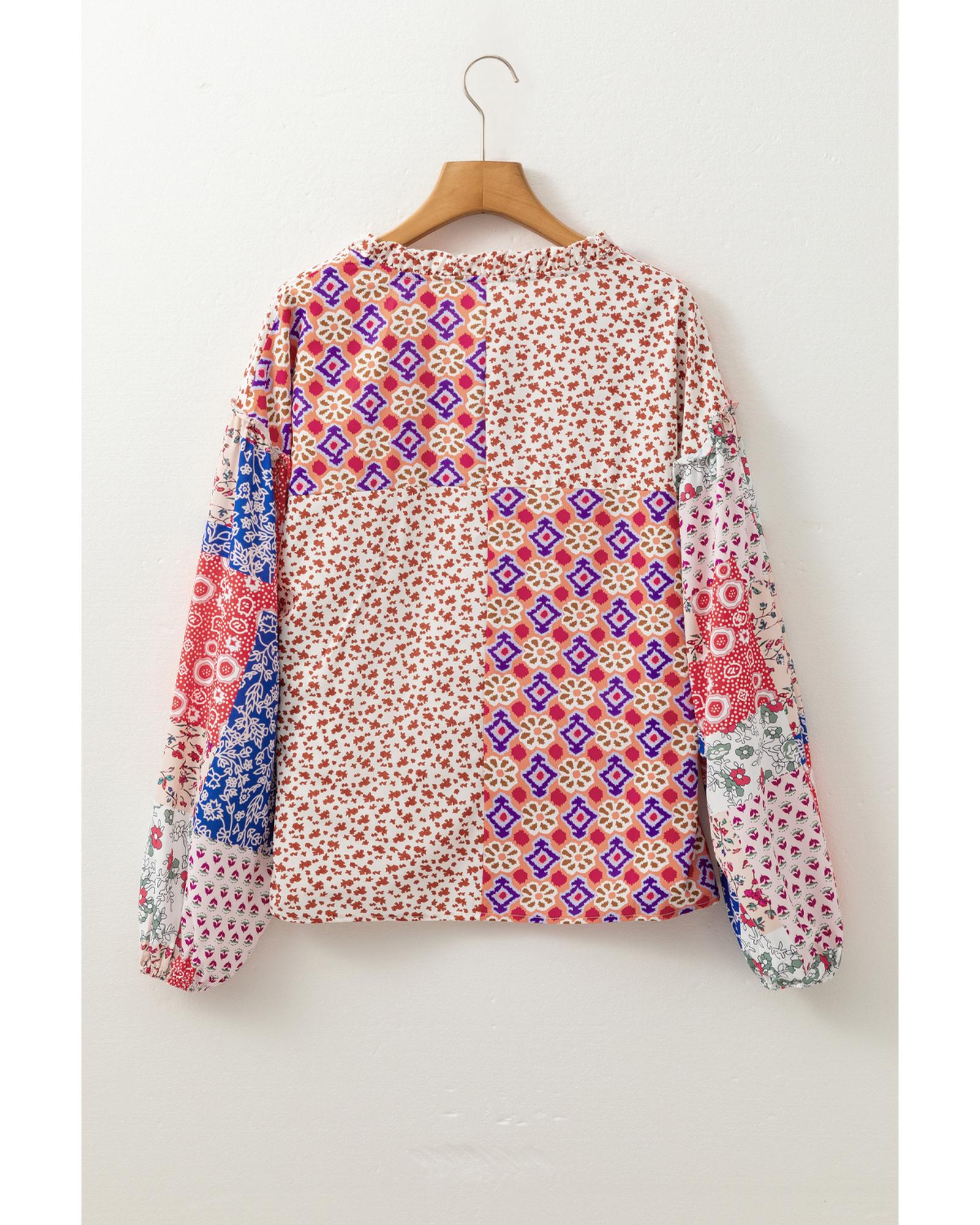 Orange Mixed Floral Printed Long Sleeve Tied V Neck Blouse – M