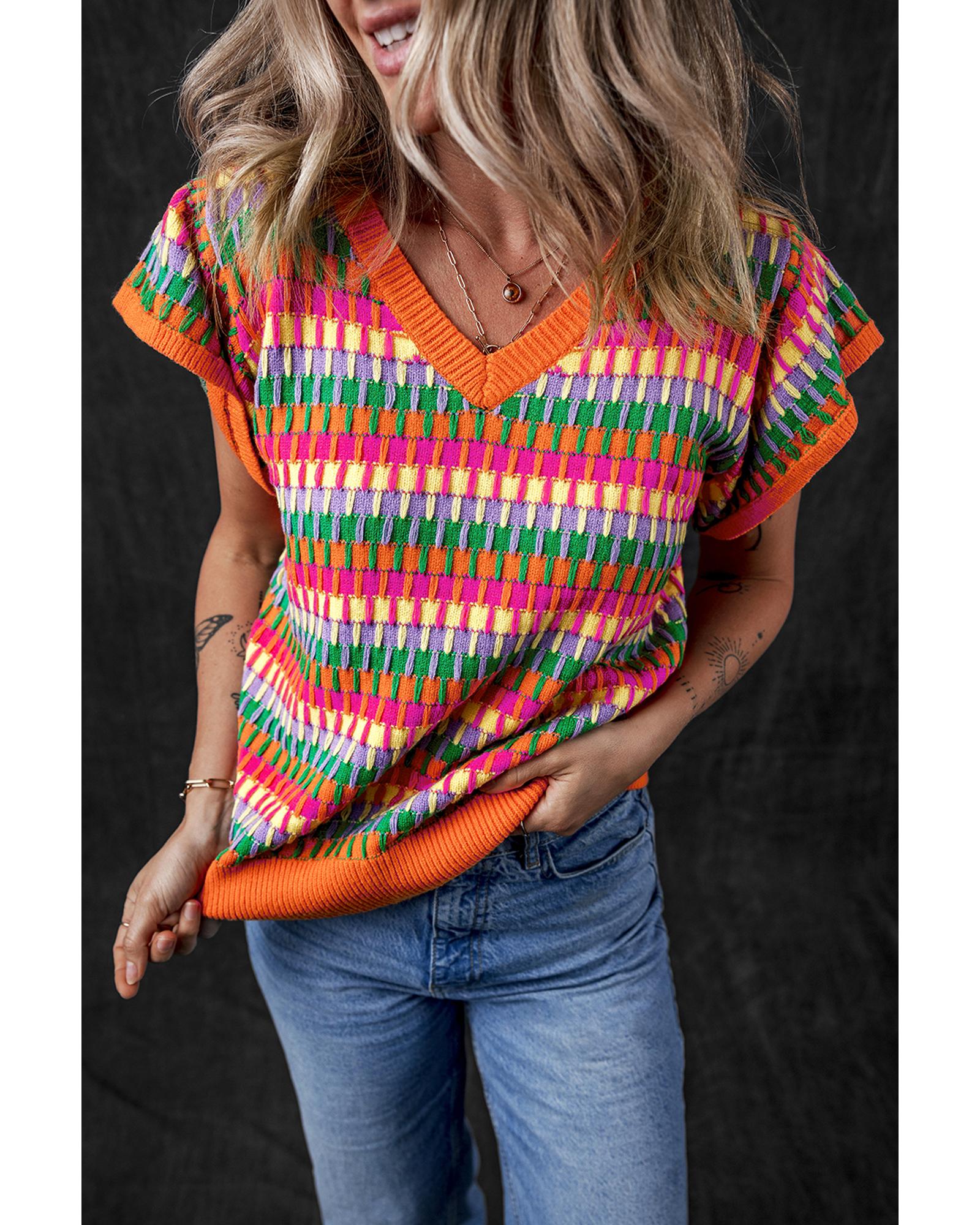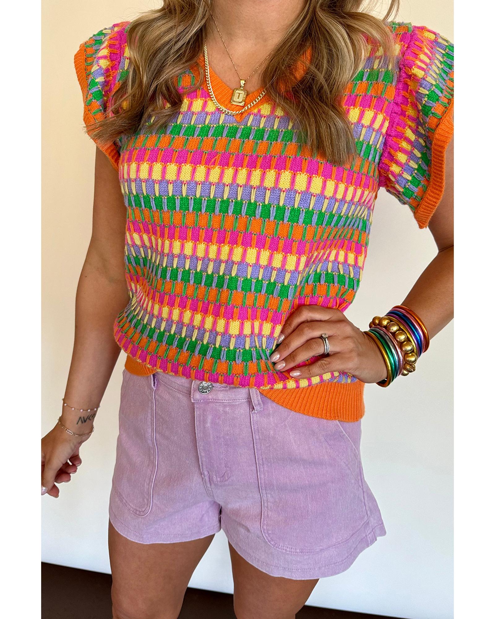 Orange Multicolor Flutter Sleeve Knitted Sweater Top - M Original price was: $62.99.Current price is: $33.99.