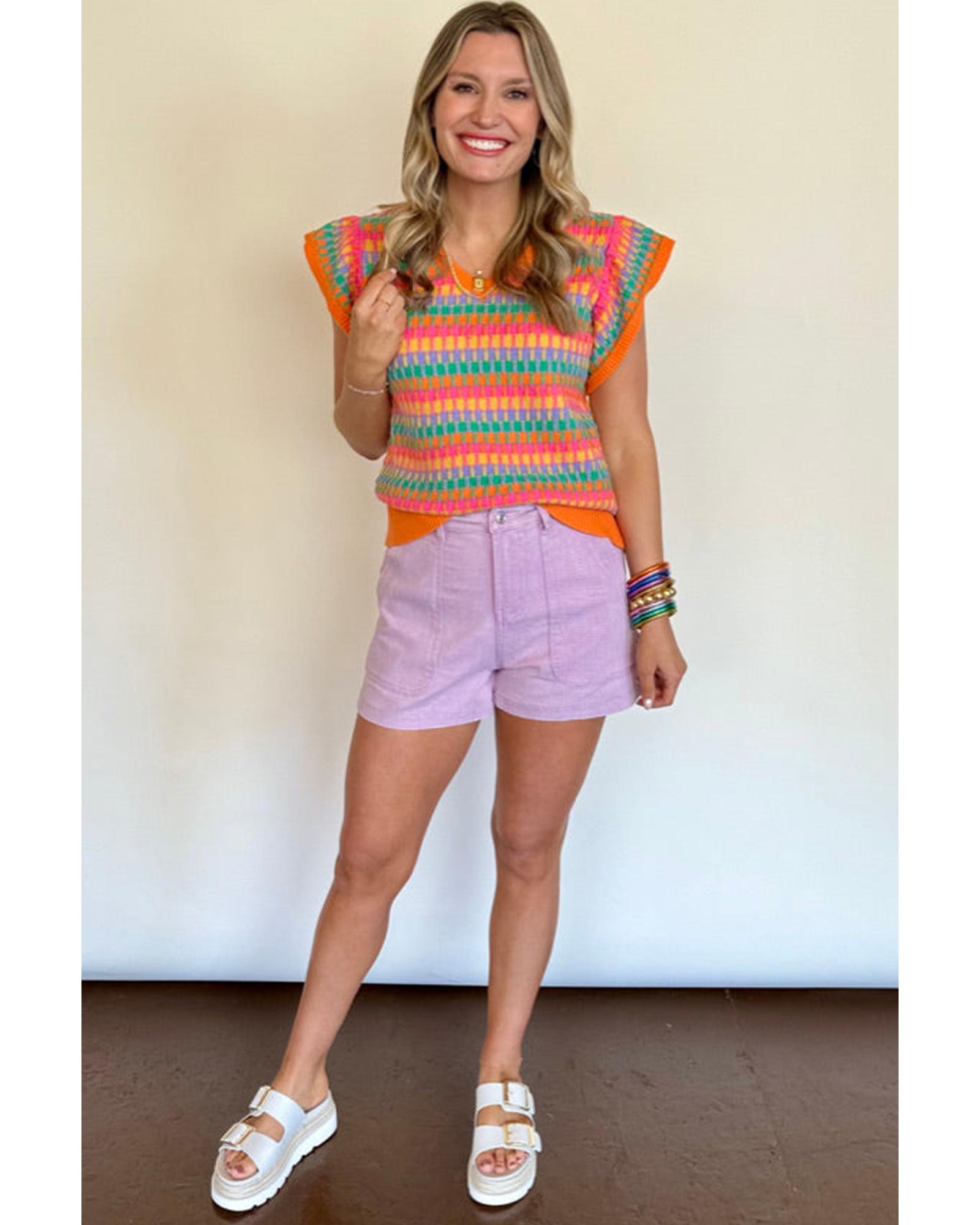Orange Multicolor Flutter Sleeve Knitted Sweater Top - XL Original price was: $62.99.Current price is: $33.99.