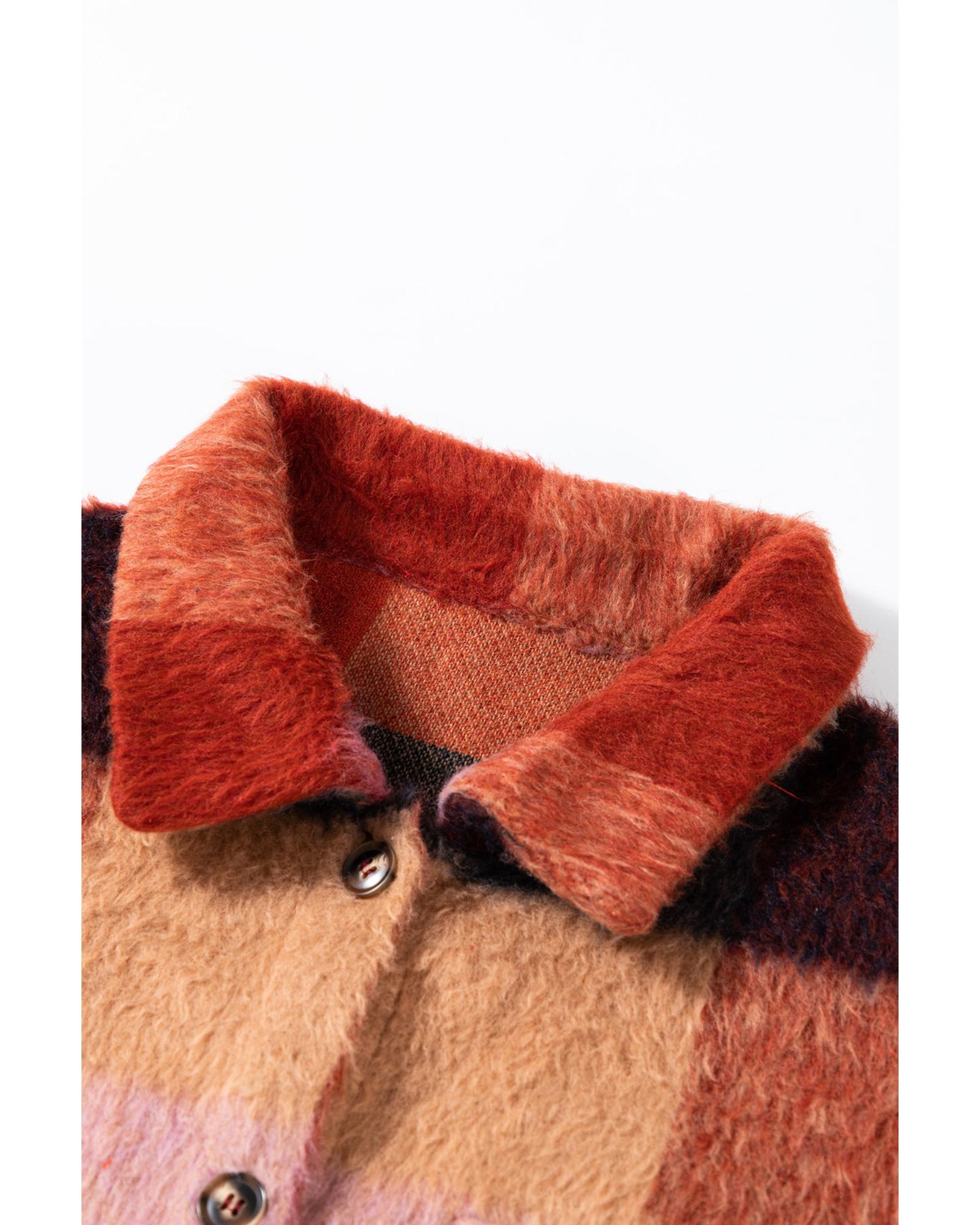 Orange Plaid Print Flap Pockets Buttoned Casual Plus Size Jacket – 1X