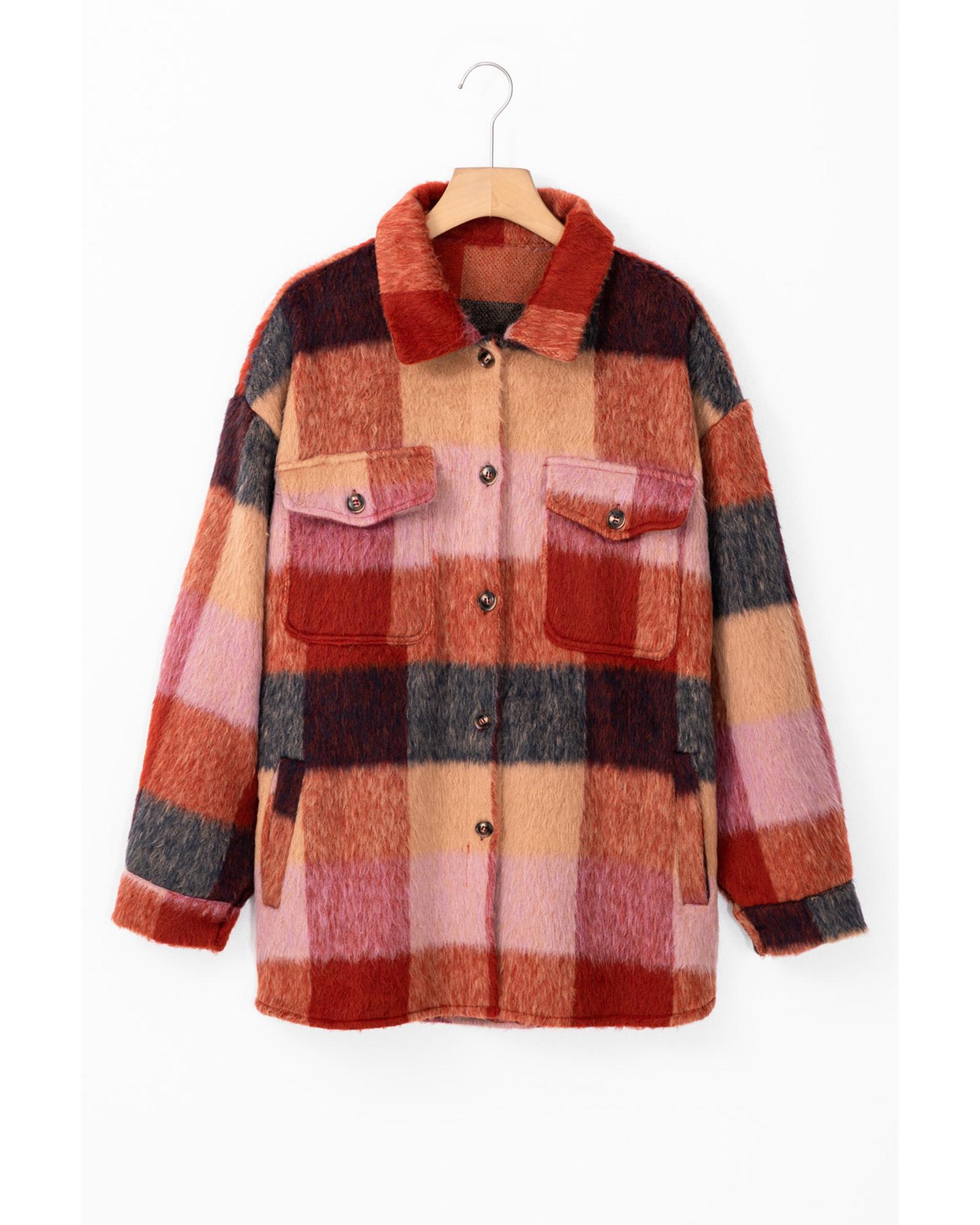 Orange Plaid Print Flap Pockets Buttoned Casual Plus Size Jacket – 3X