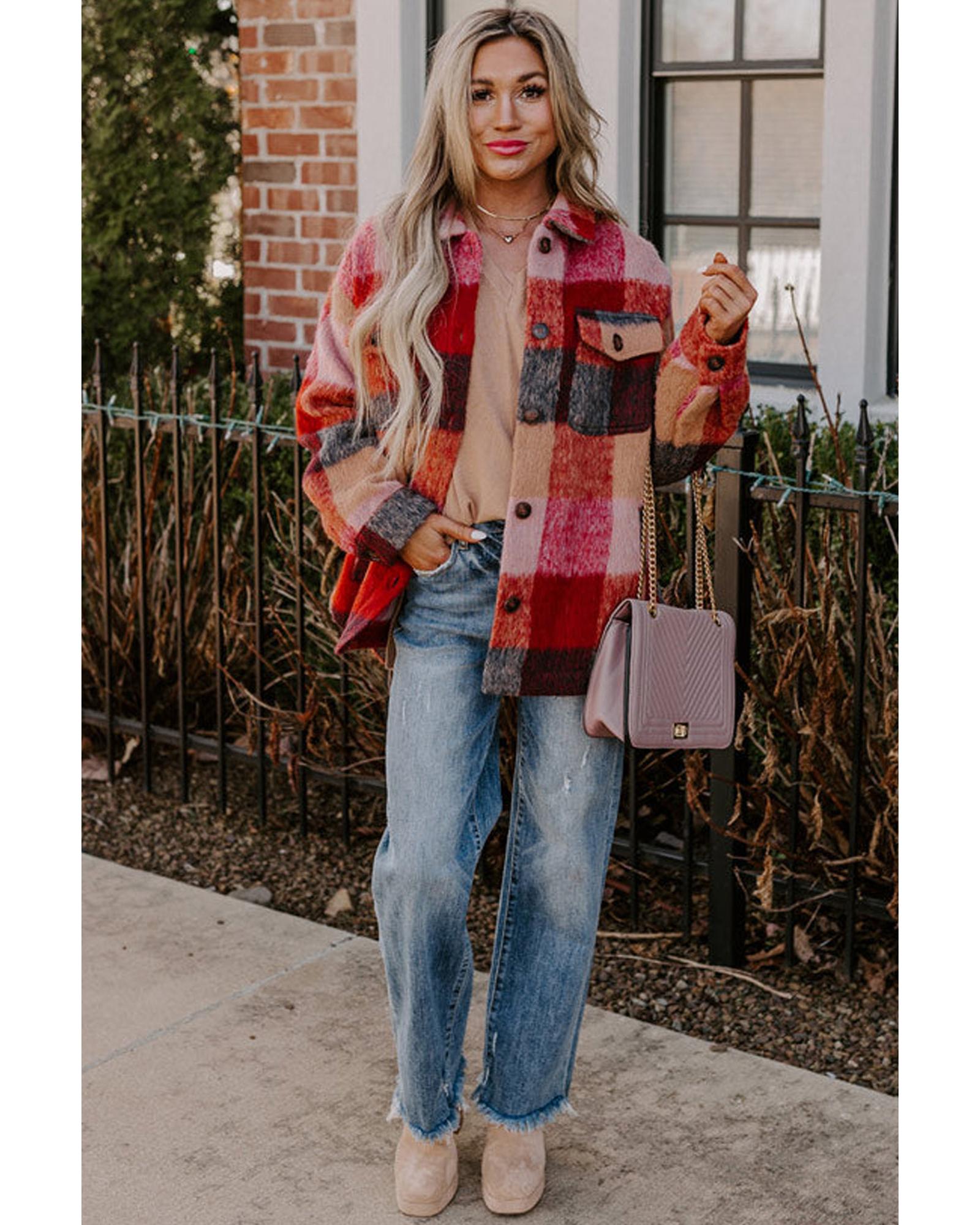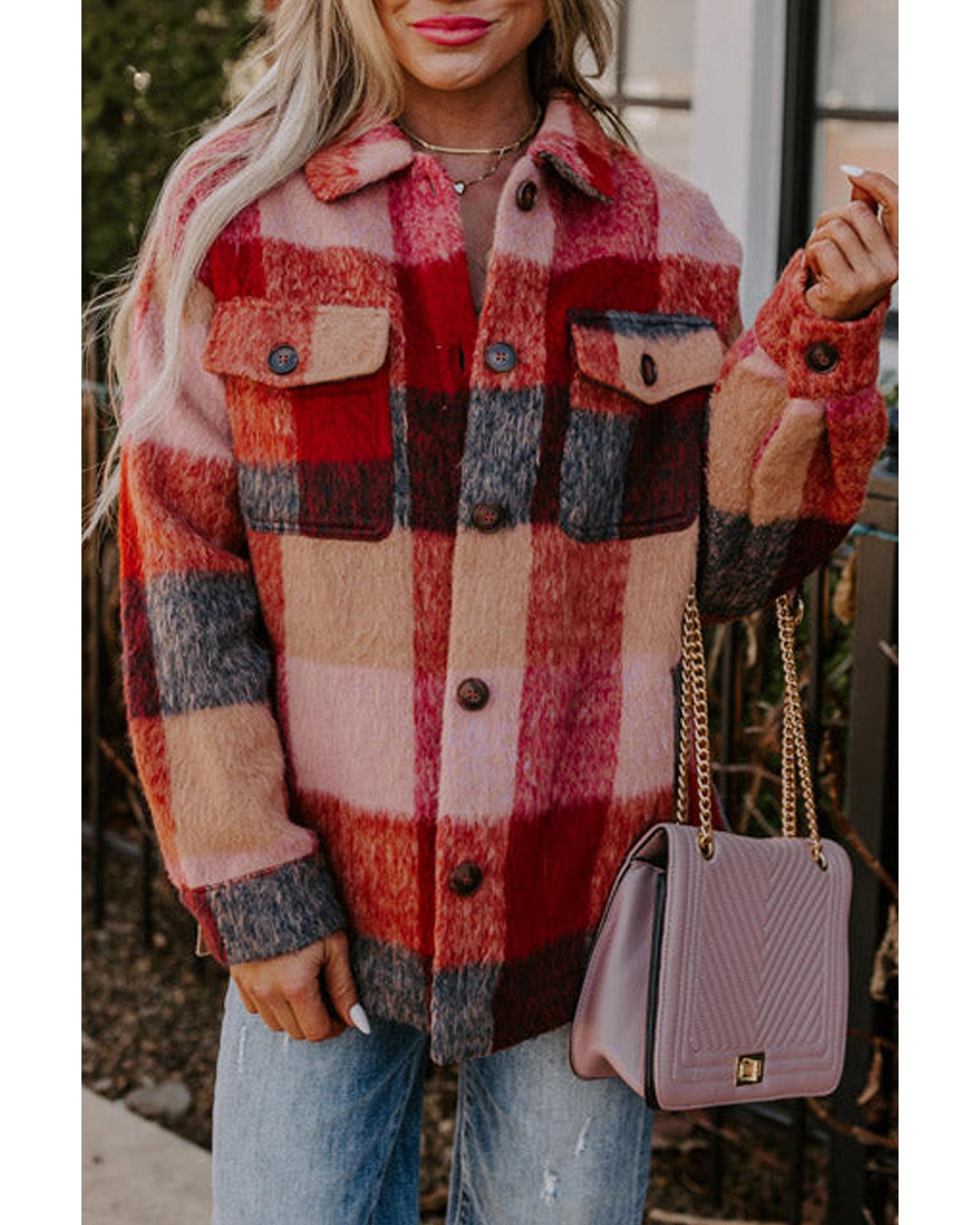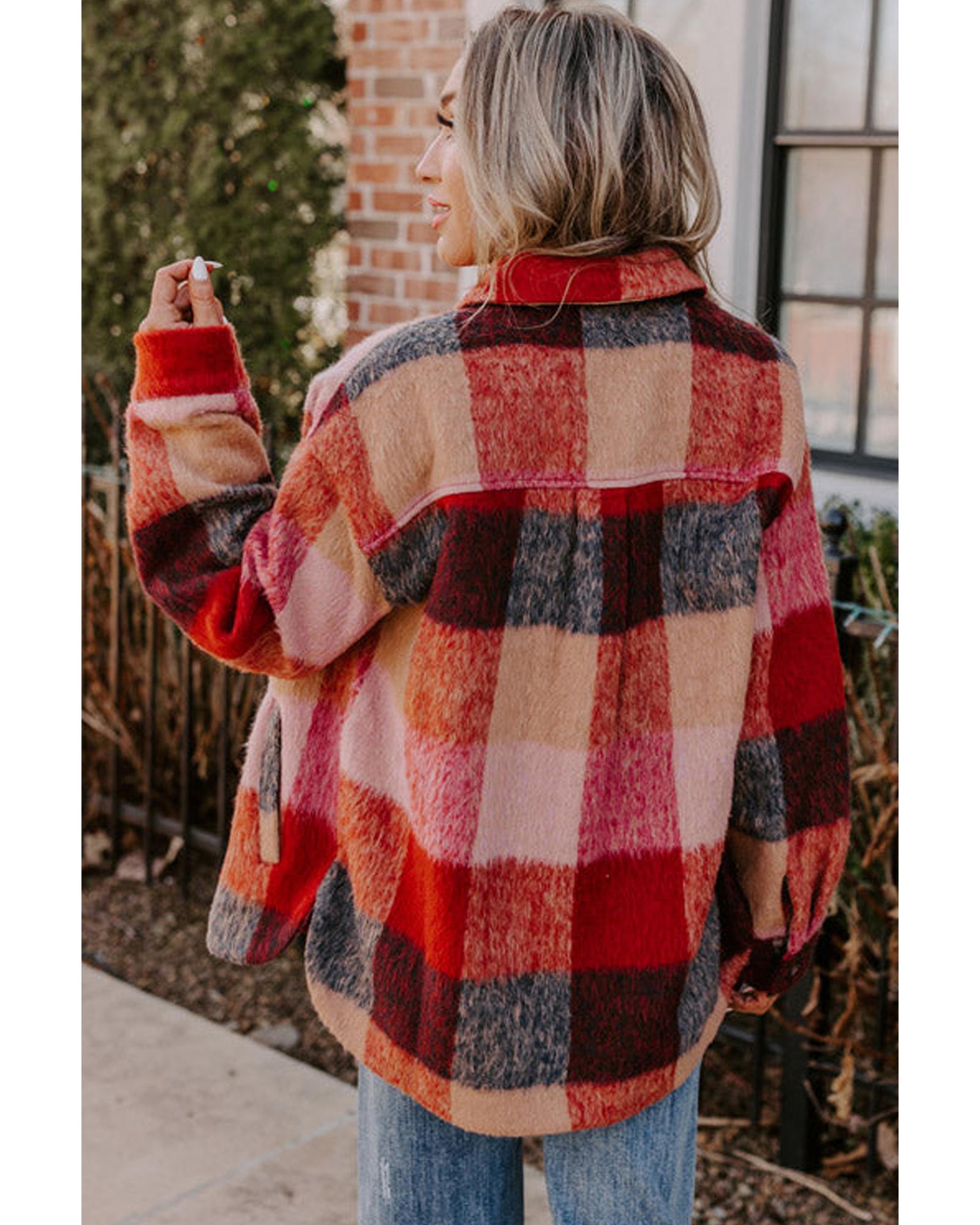 Orange Plaid Print Flap Pockets Buttoned Casual Plus Size Jacket – 4X