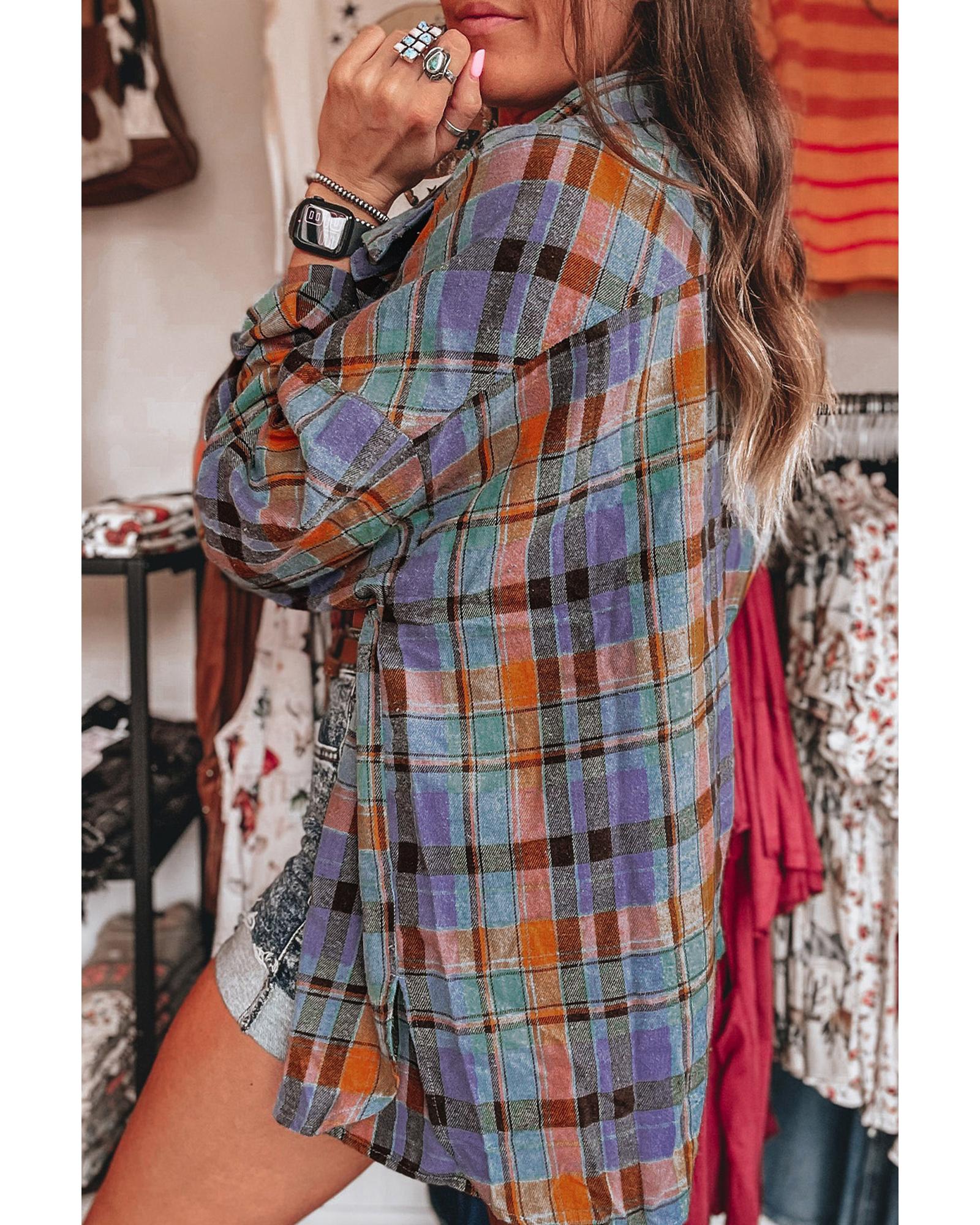Orange Plaid Print Loose Vintage Shirt – S