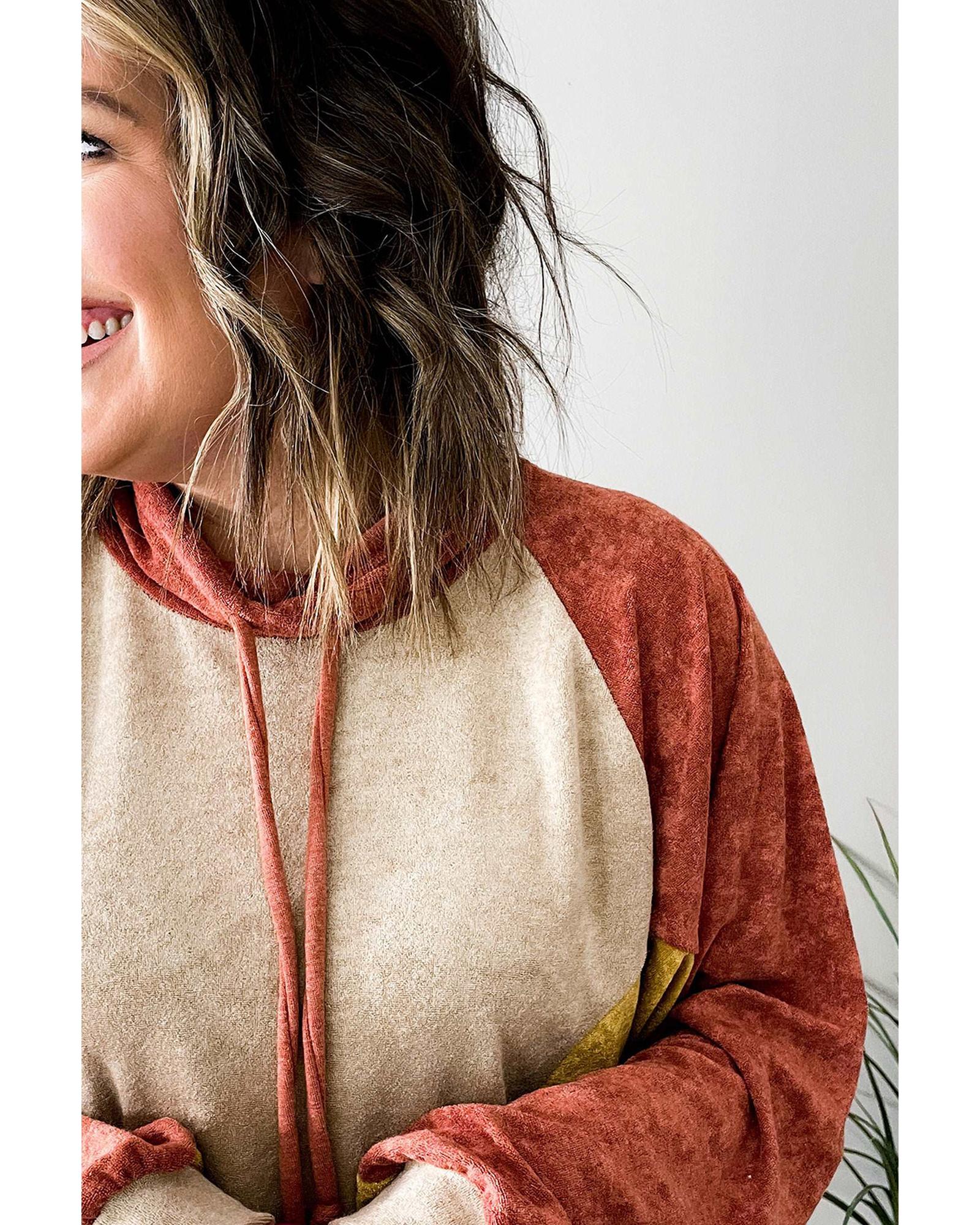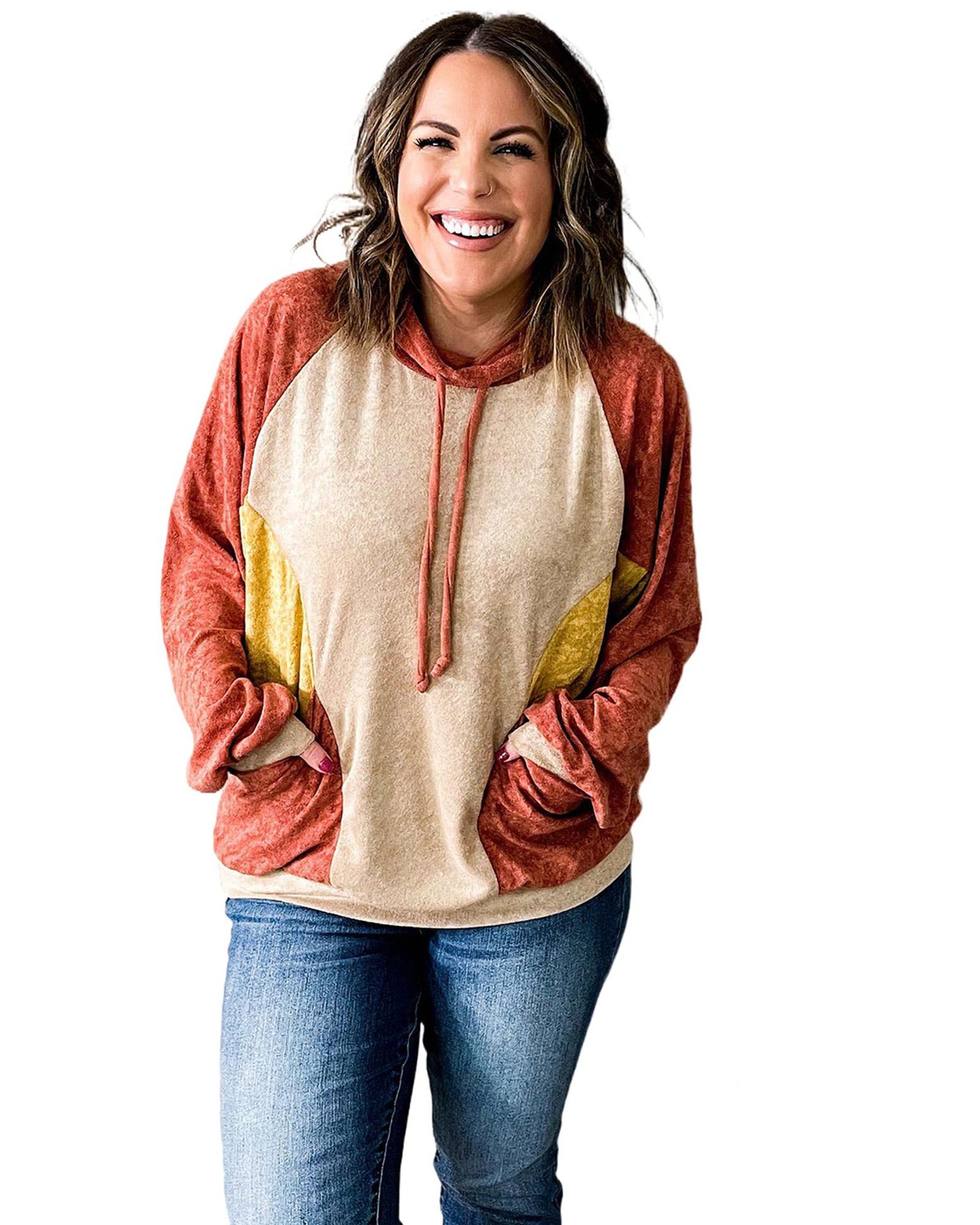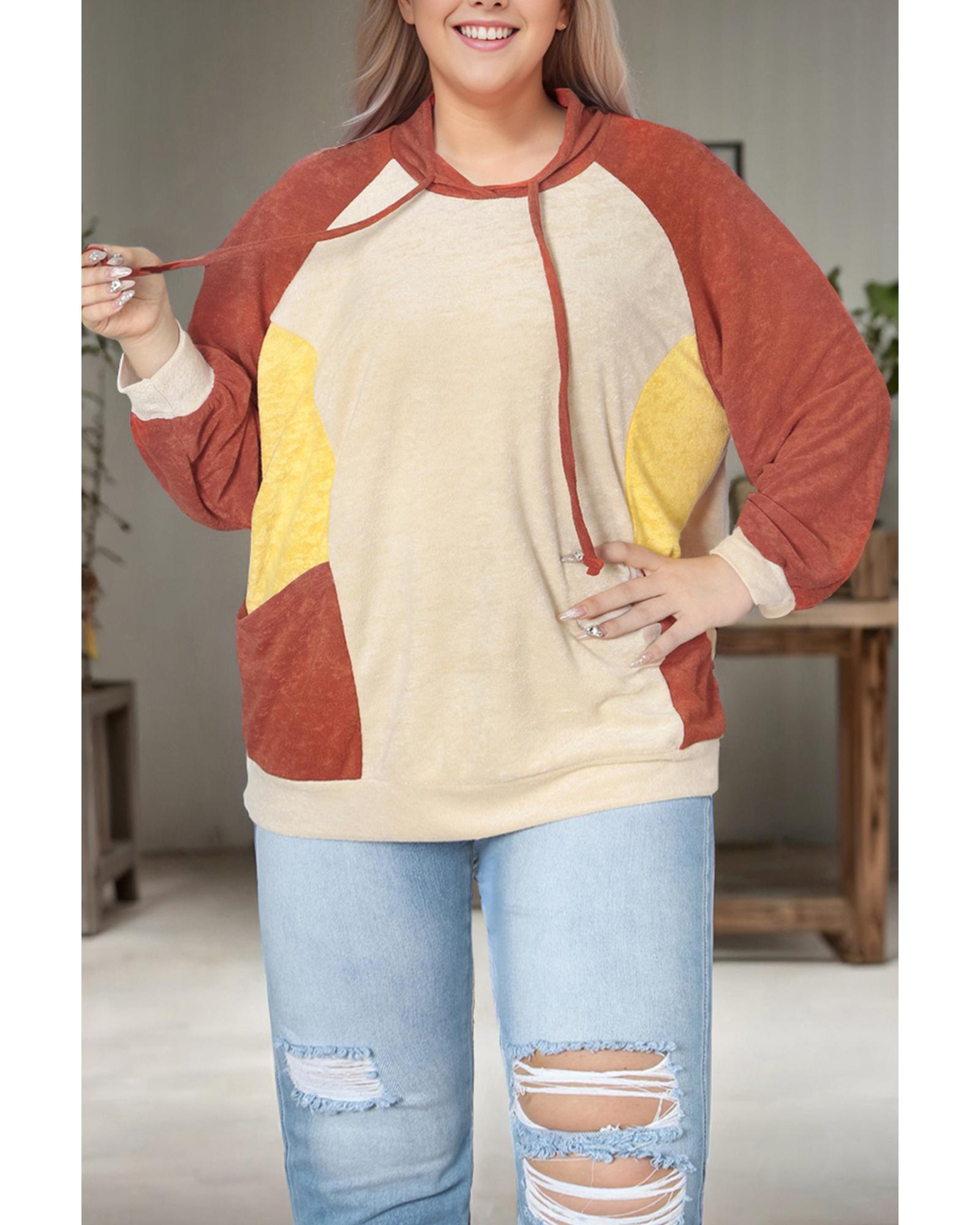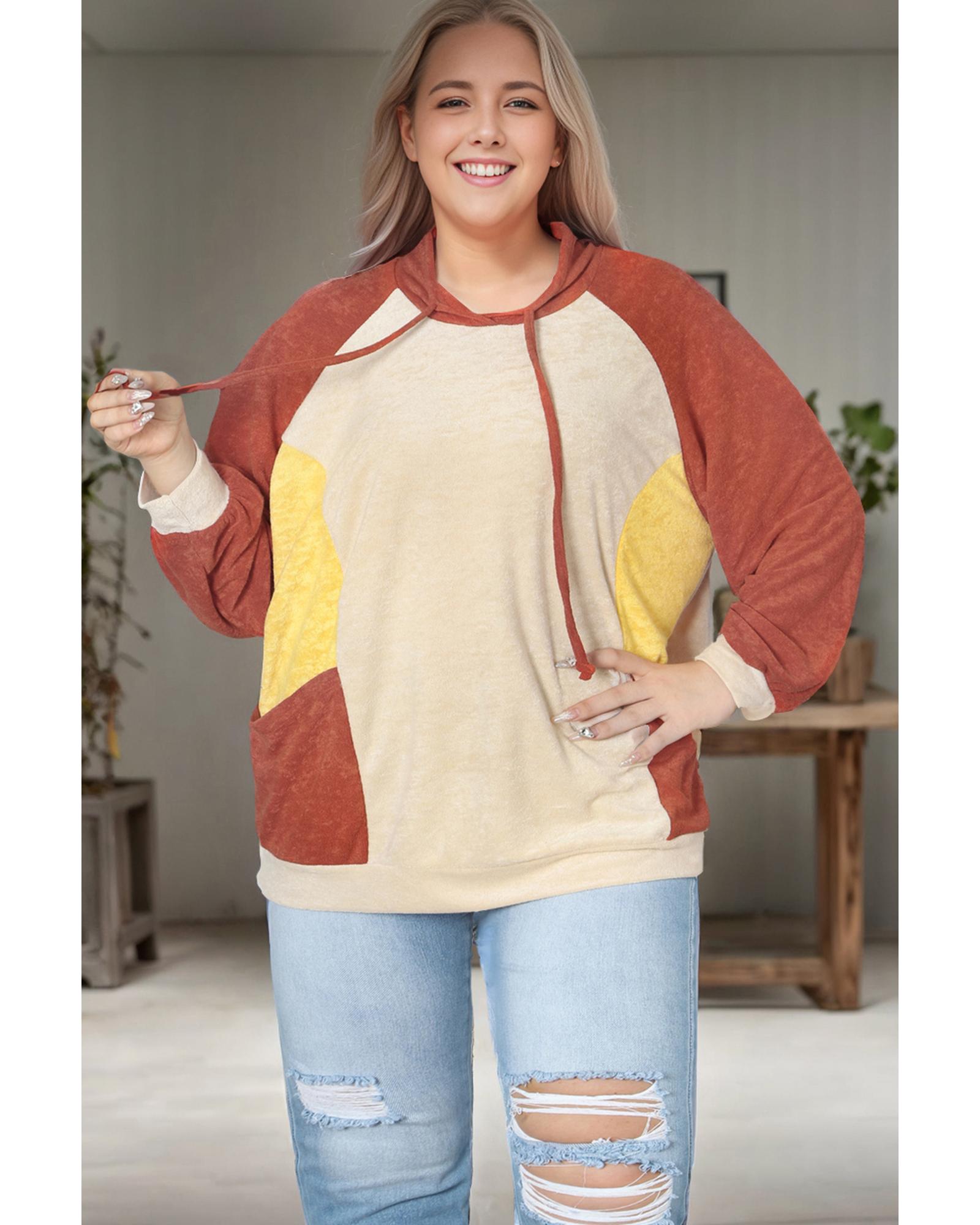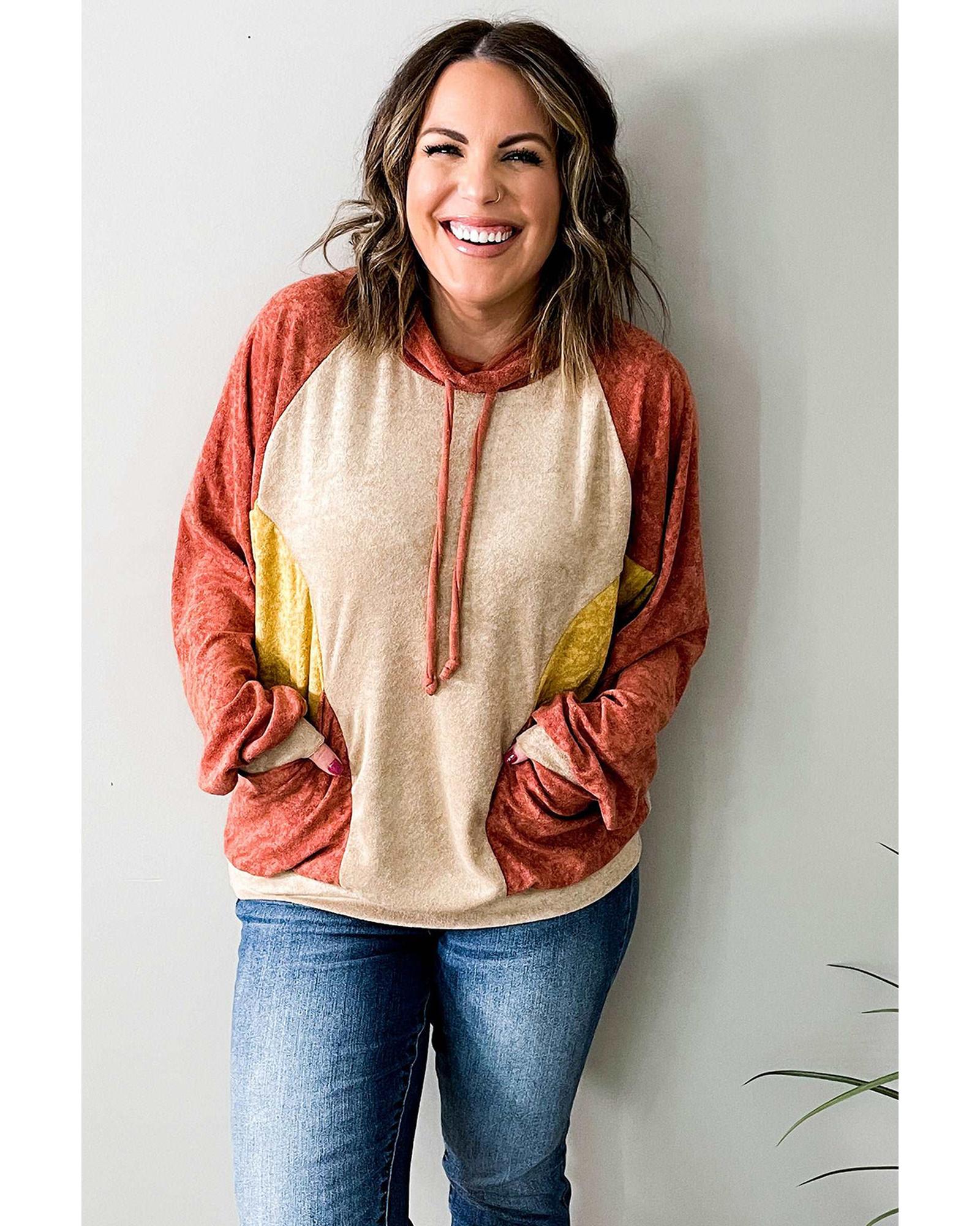 Orange Plus Size Colorblock Raglan Hoodie with Pockets – 1X
