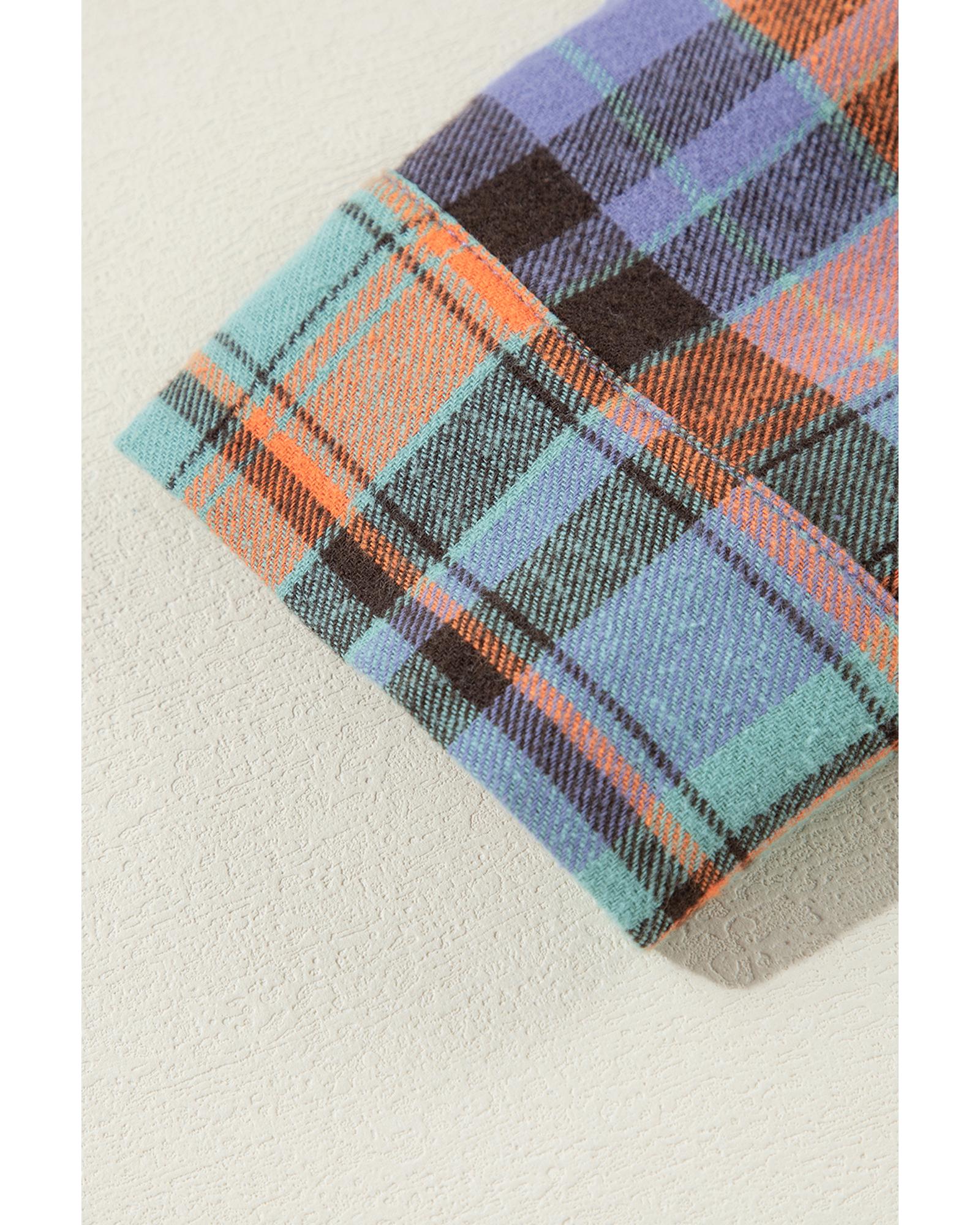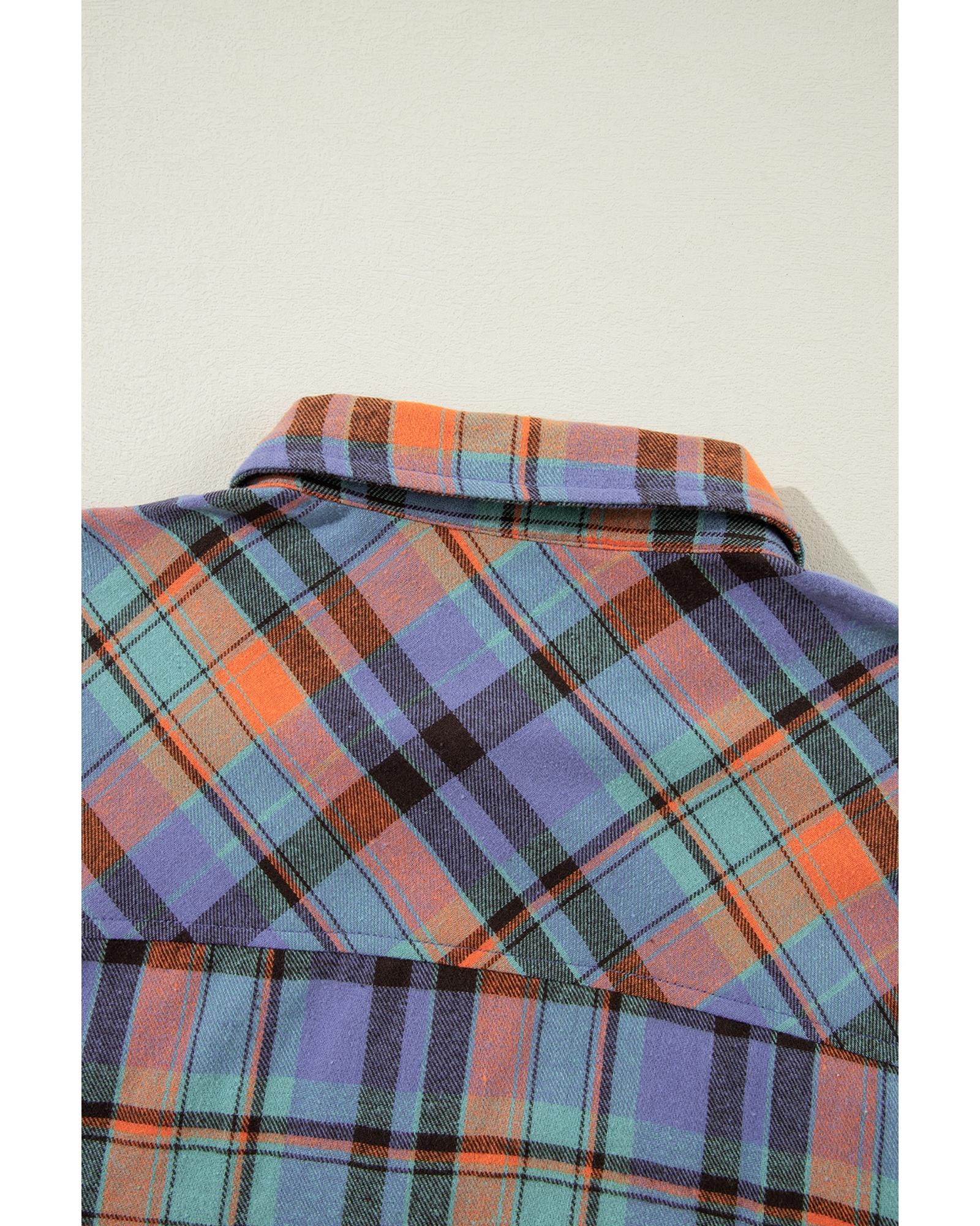 Orange Plus Size Plaid Print Buttoned Shirt – 1X