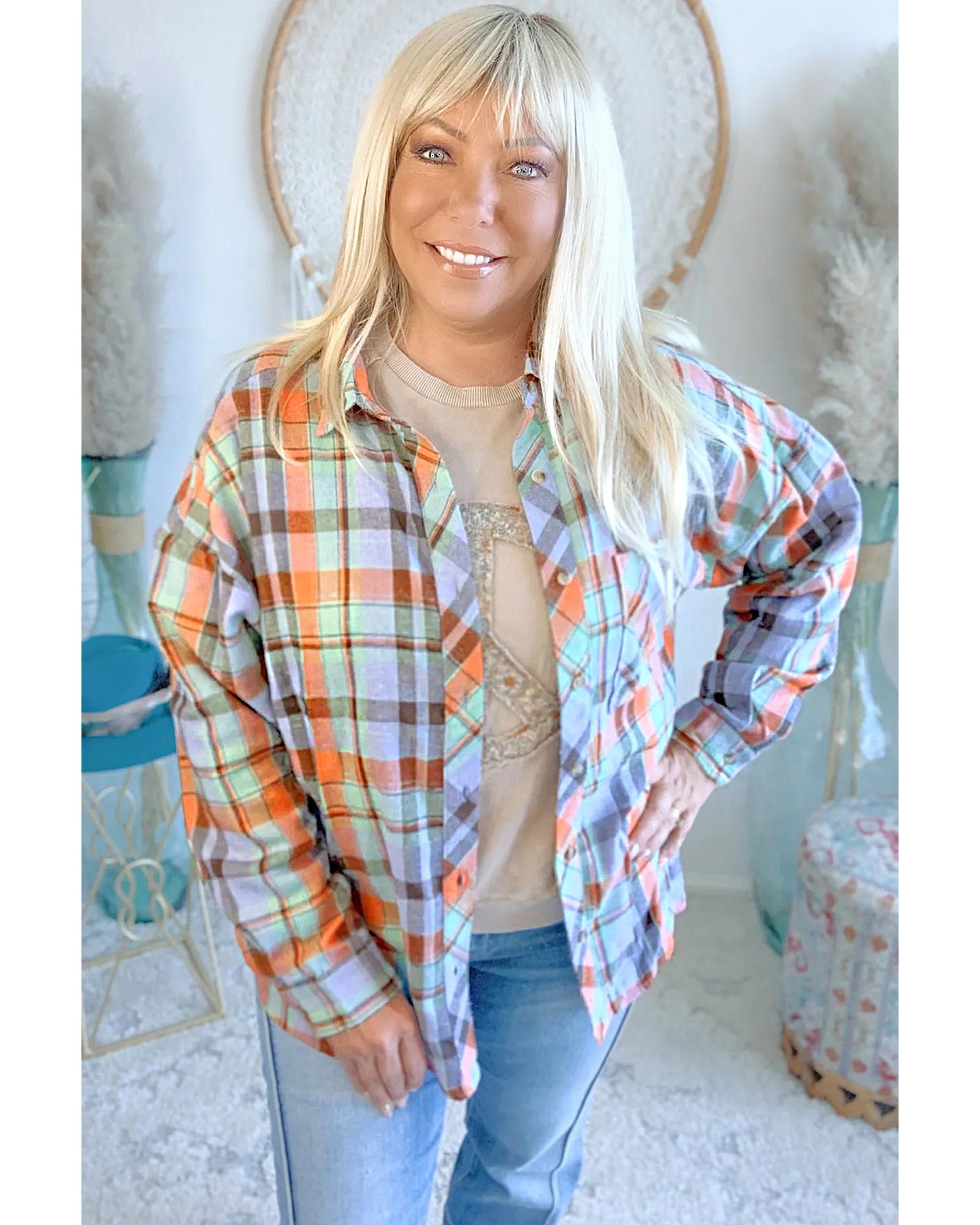 Orange Plus Size Plaid Print Buttoned Shirt – 3X