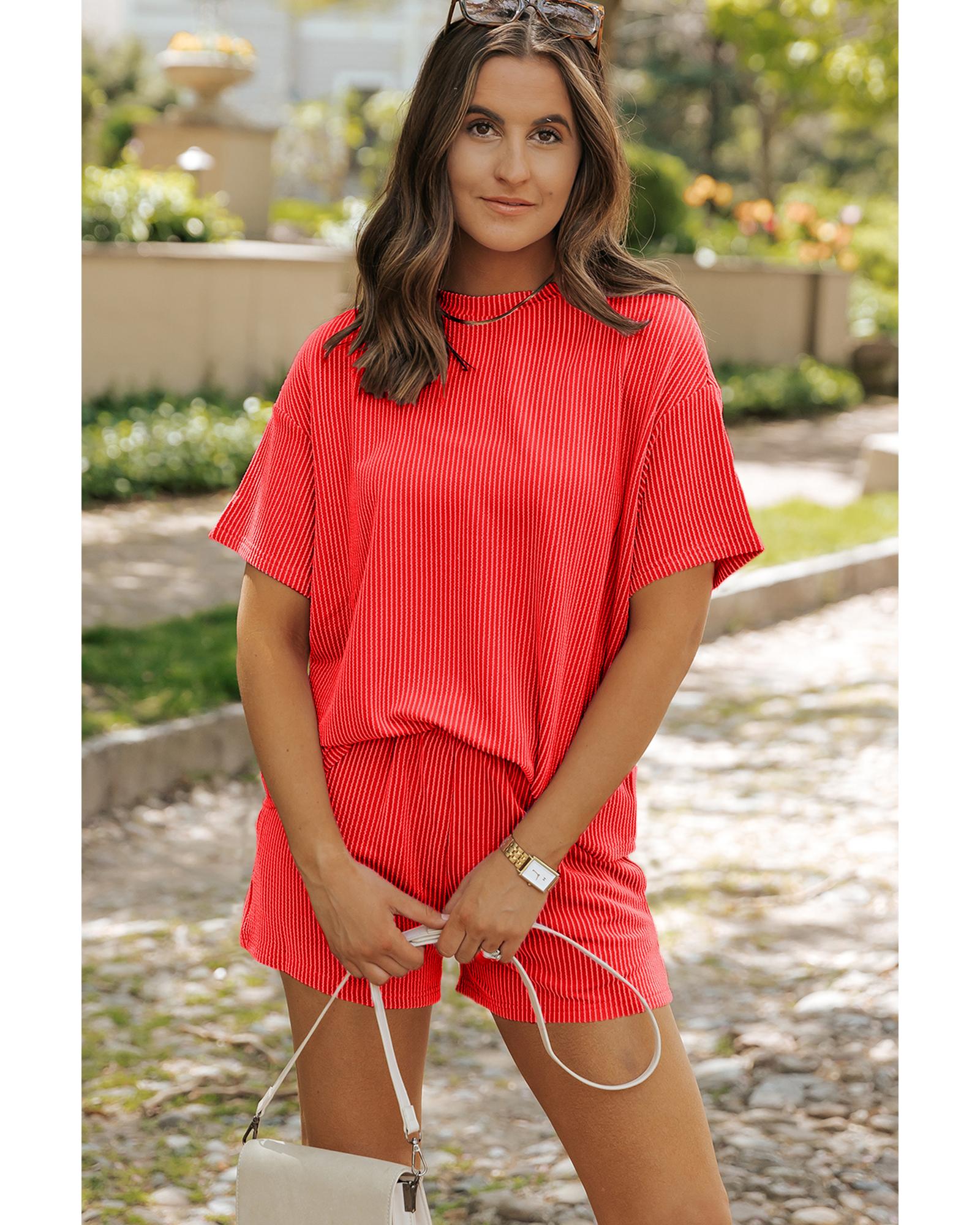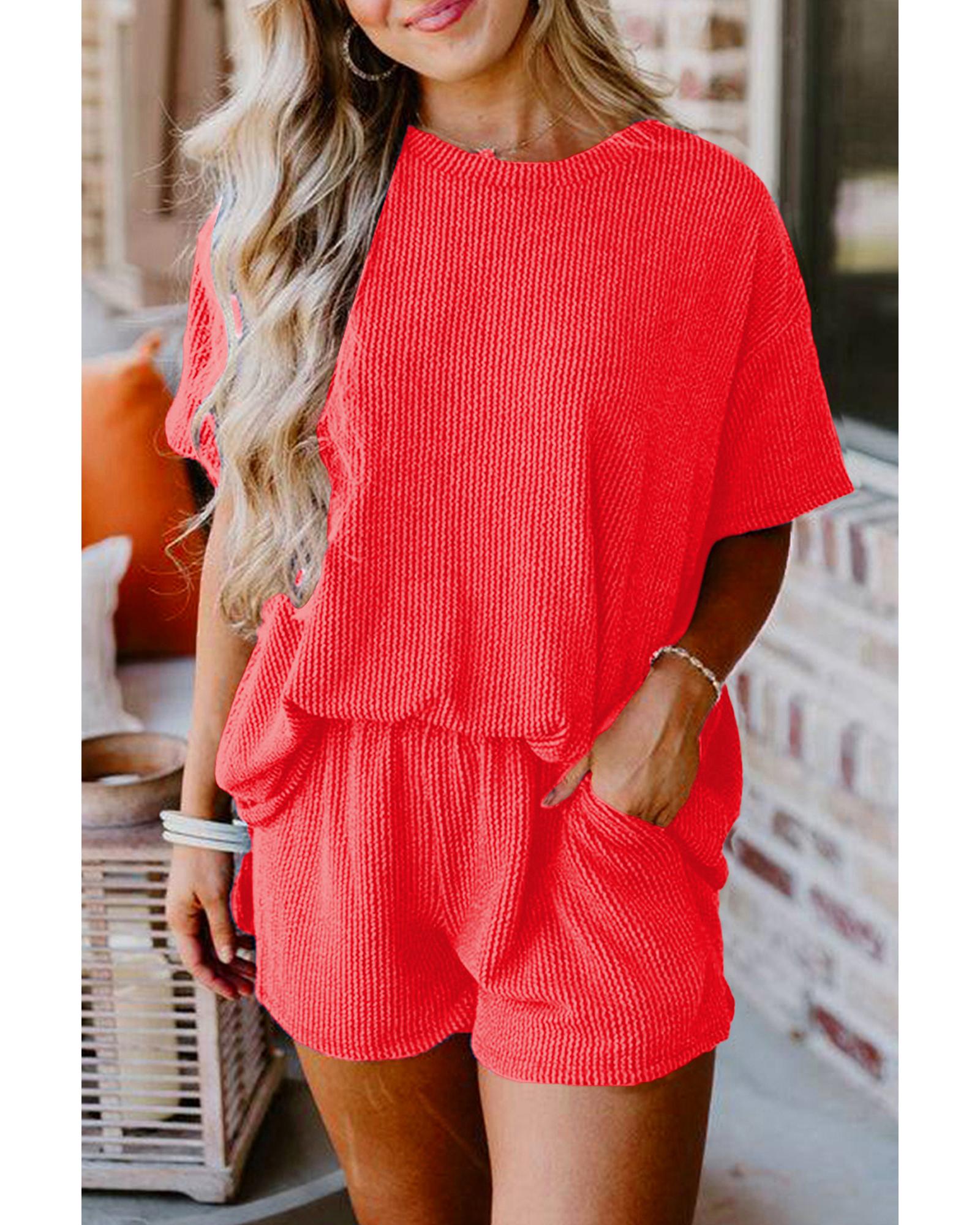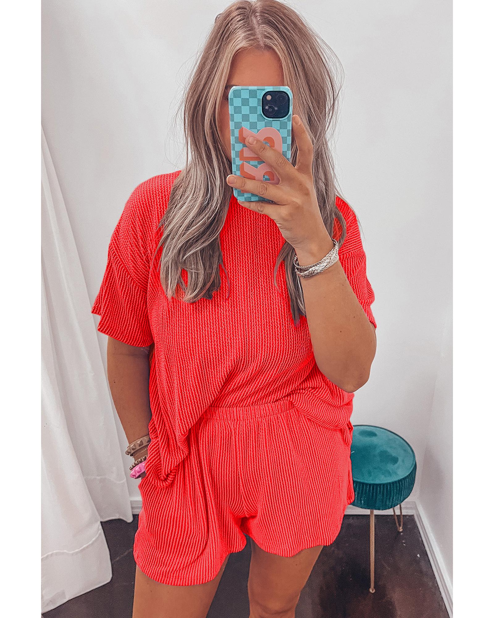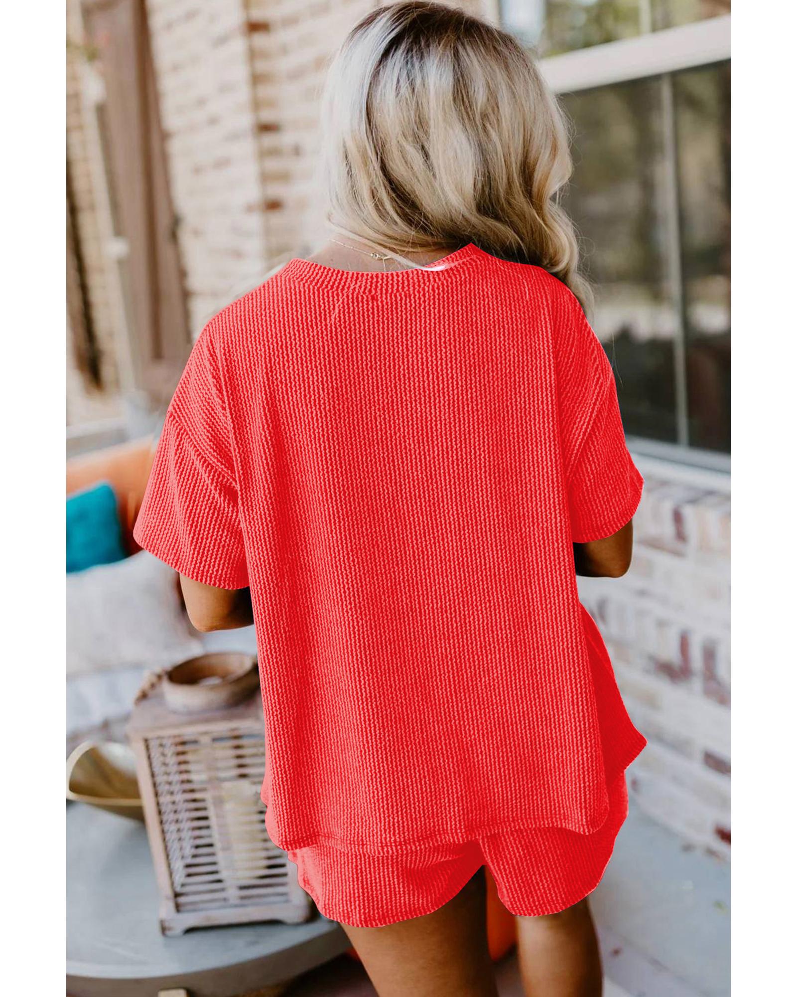 Orange Ribbed Textured Knit Loose Fit Tee and Shorts Set – XL