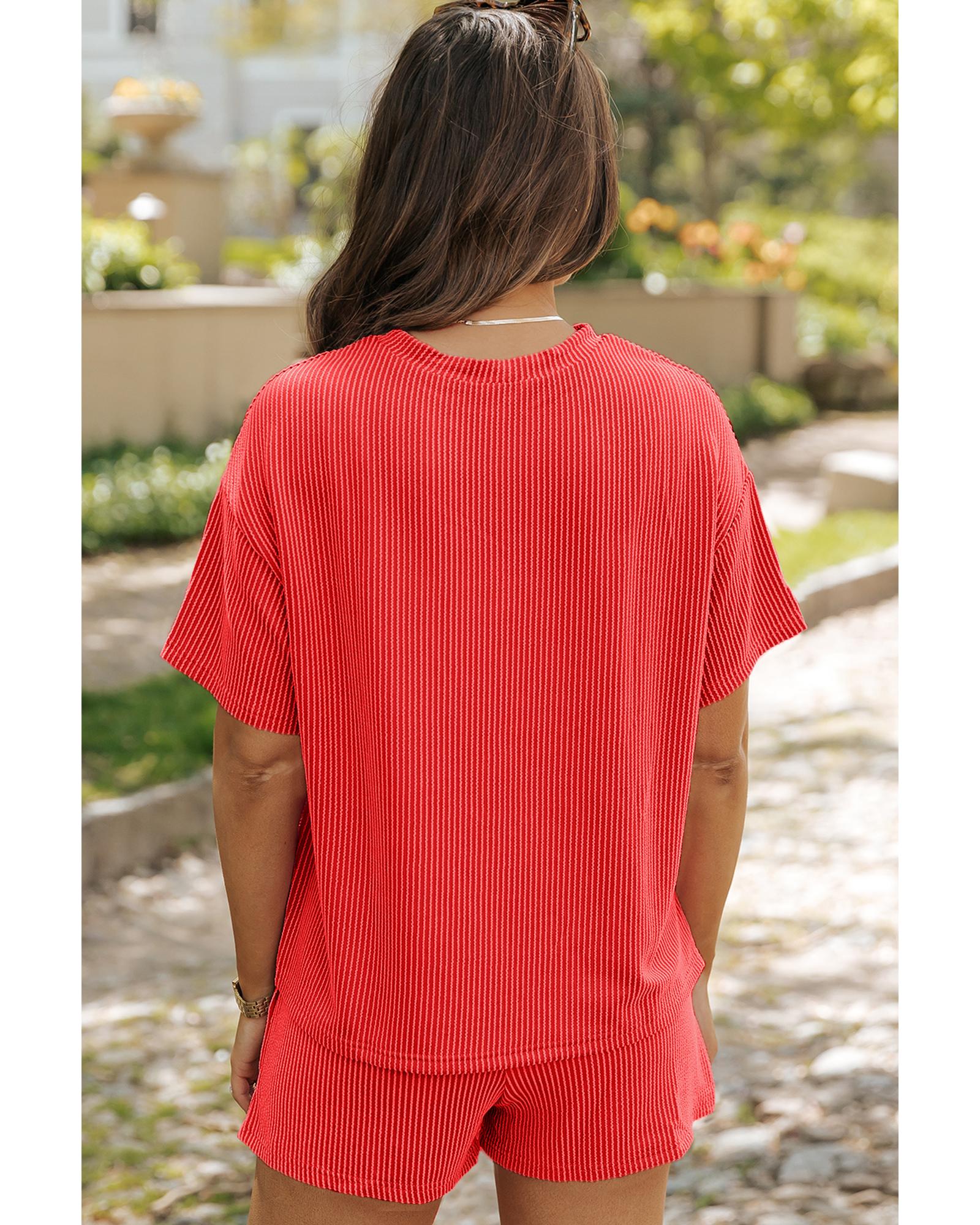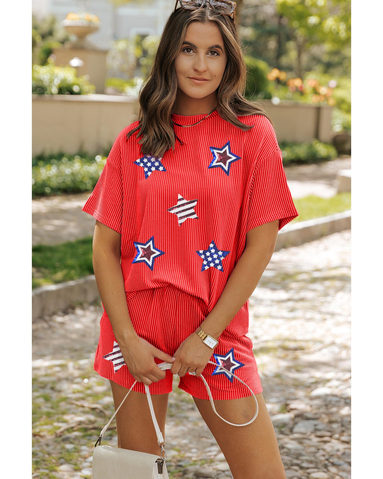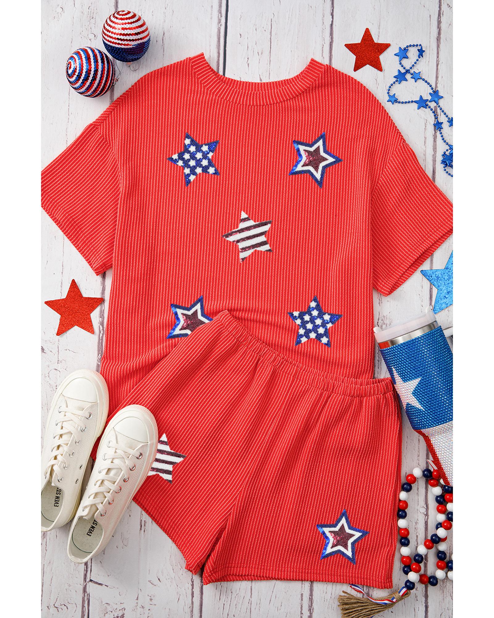 - Orange Sequin USA Flag Star Graphic Corded T Shirt and Shorts Set