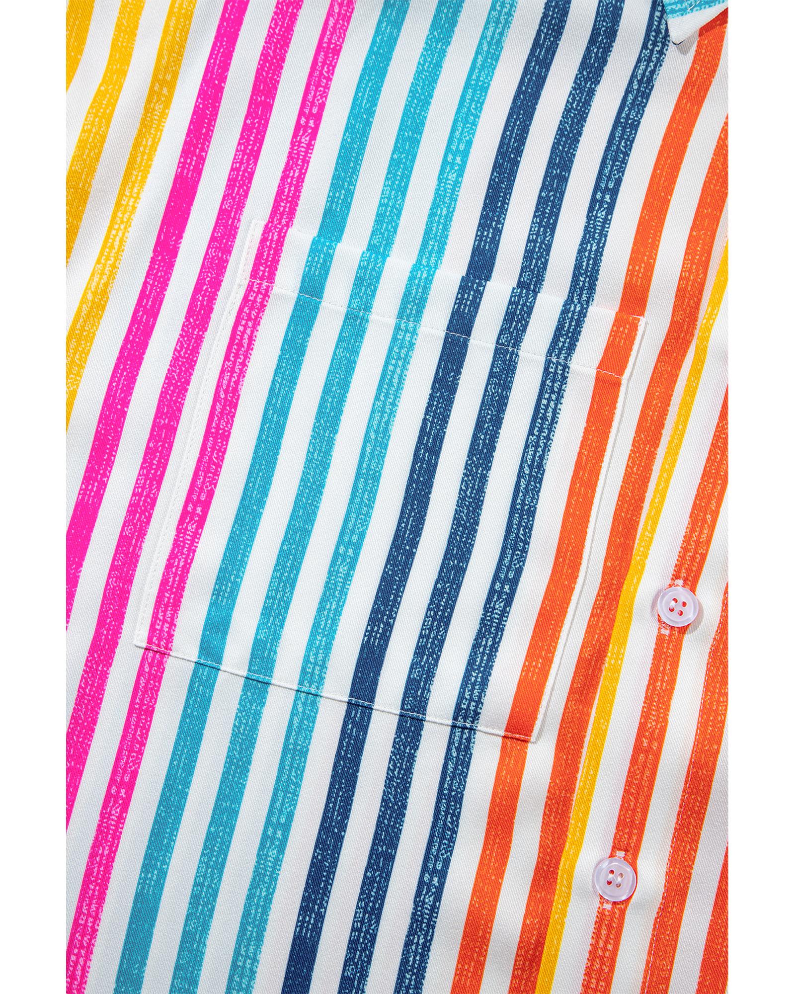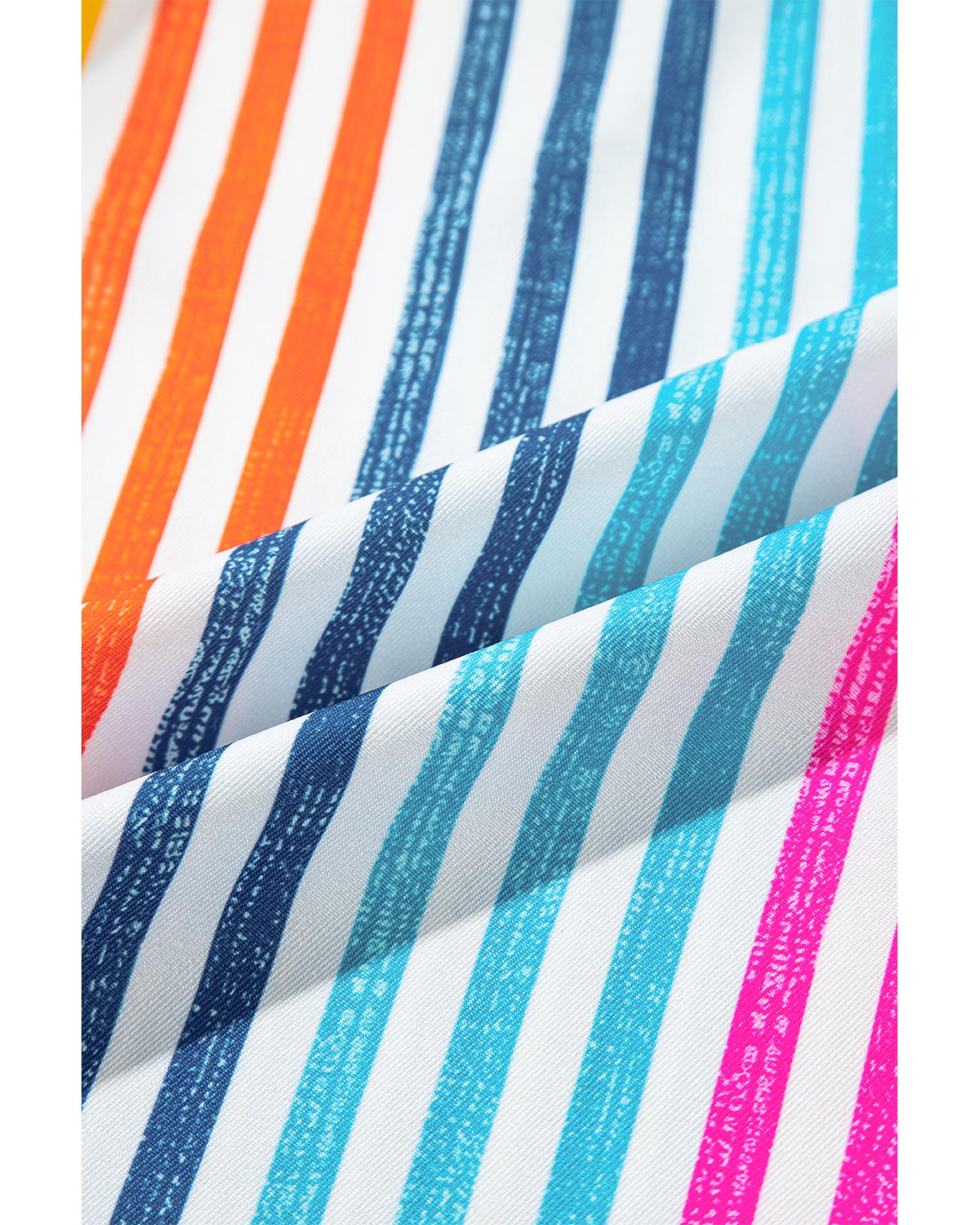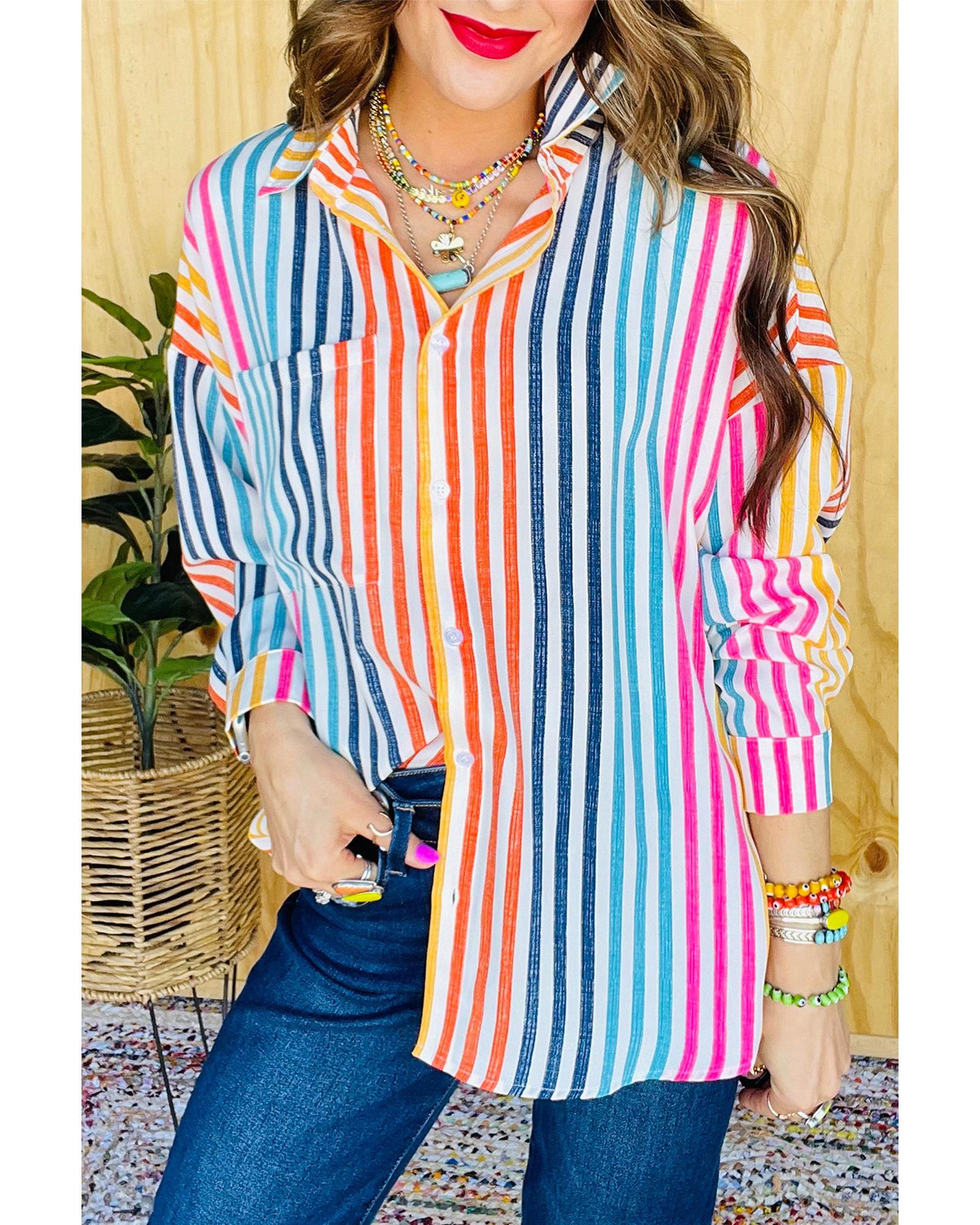 Orange Stripe Multicolor Drop Shoulder Loose Shirt – M
