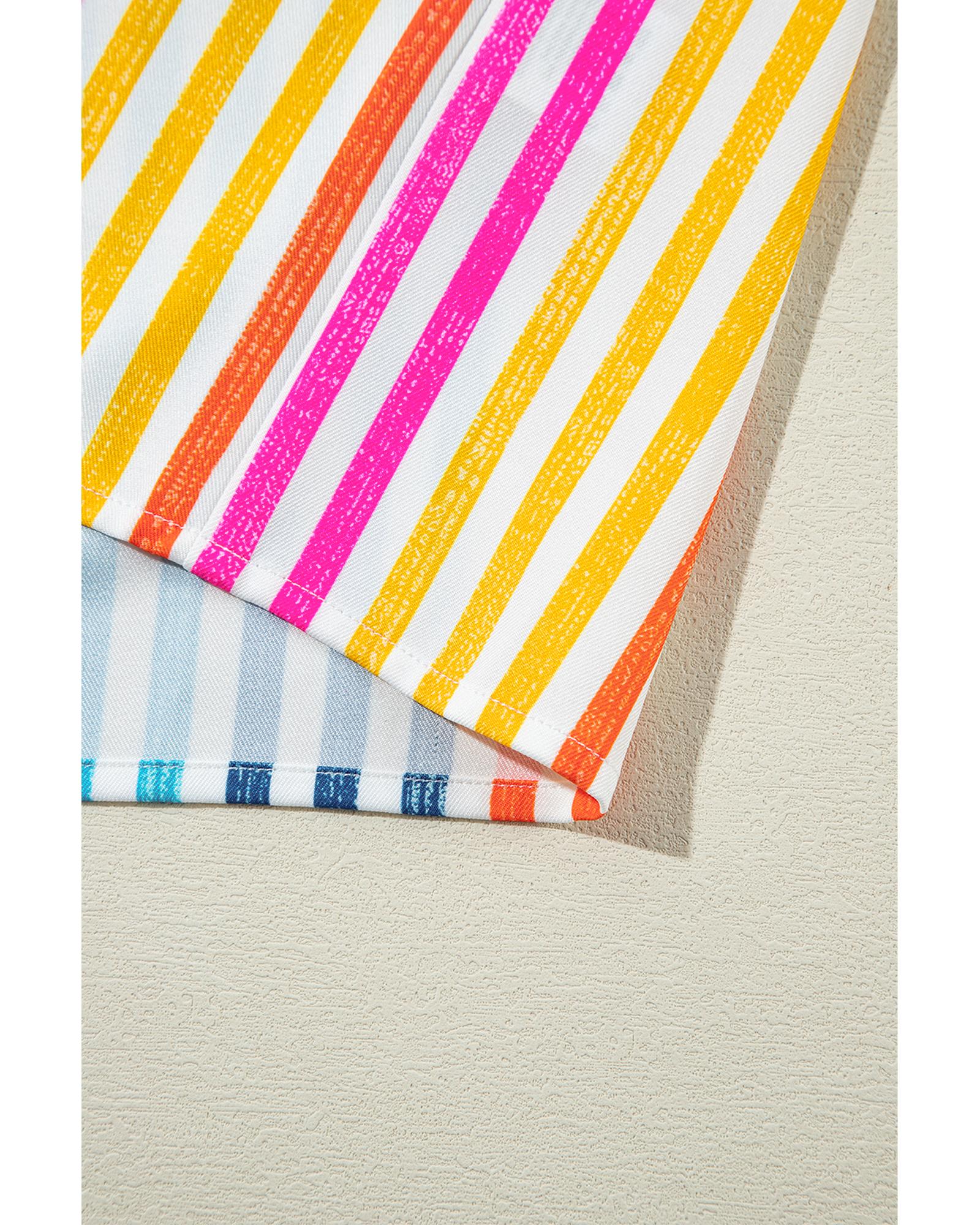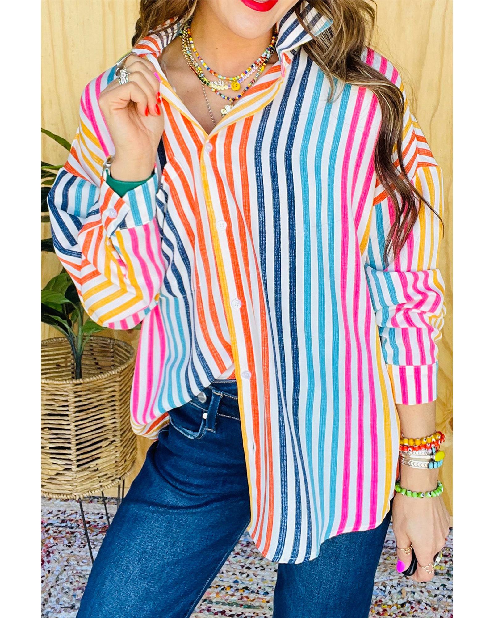 Orange Stripe Multicolor Drop Shoulder Loose Shirt – S