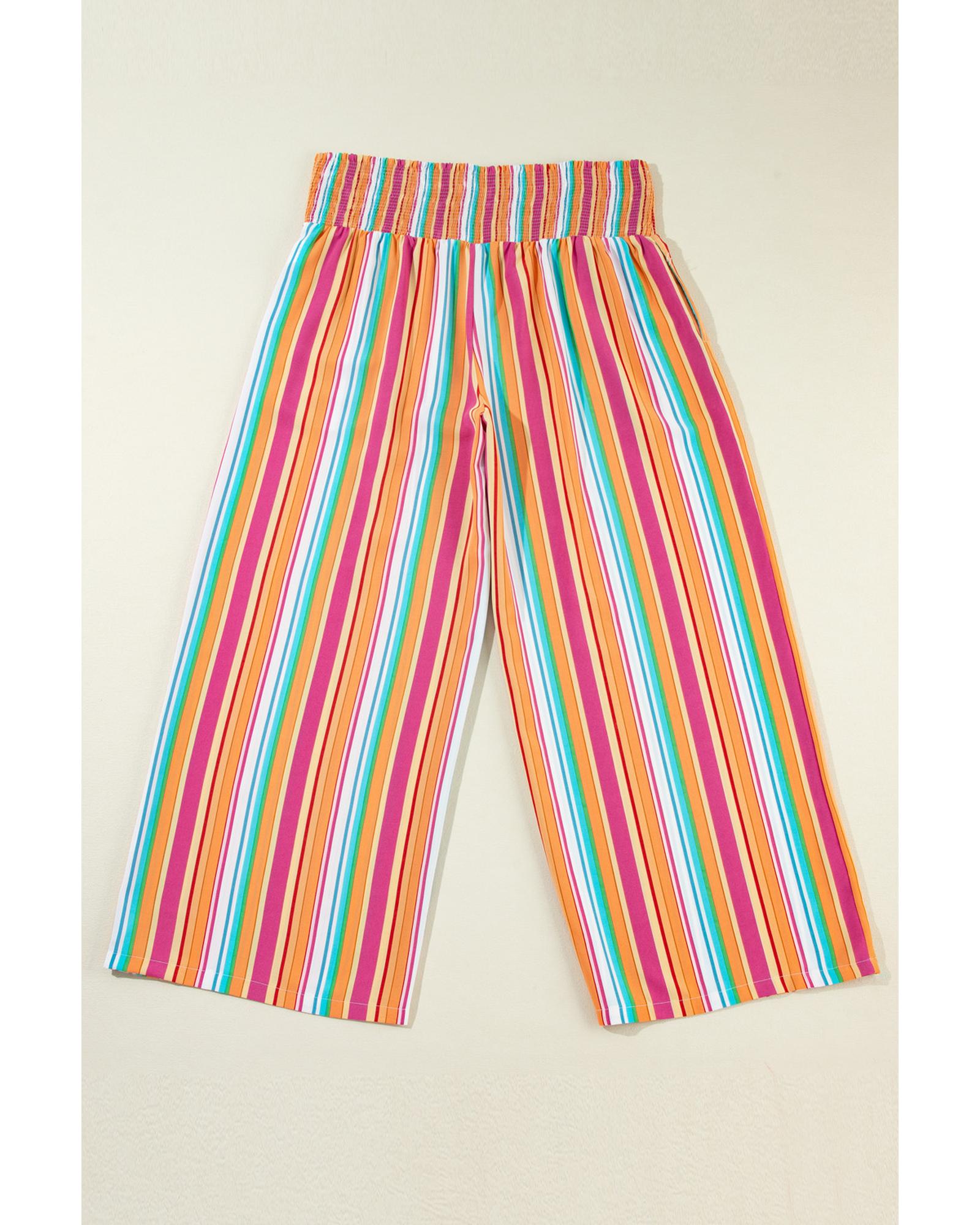 Orange Stripe Plus Size Boho Smocked Waist Loose Pants – 1X