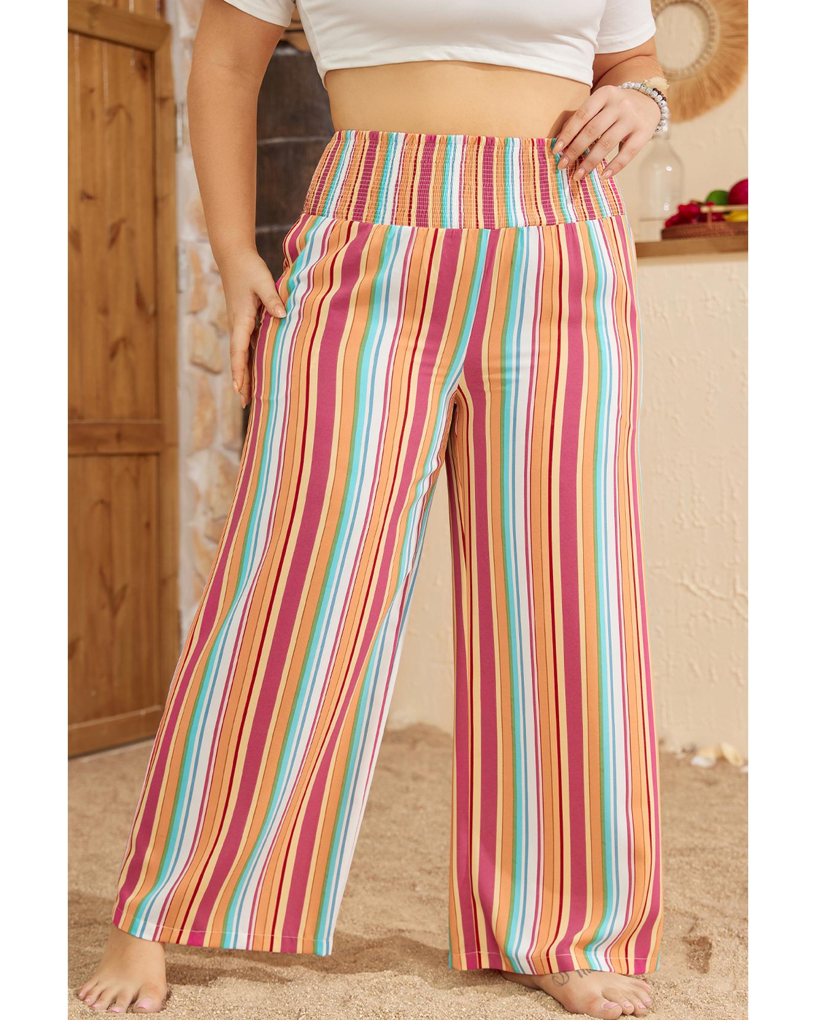 Orange Stripe Plus Size Boho Smocked Waist Loose Pants - 2X