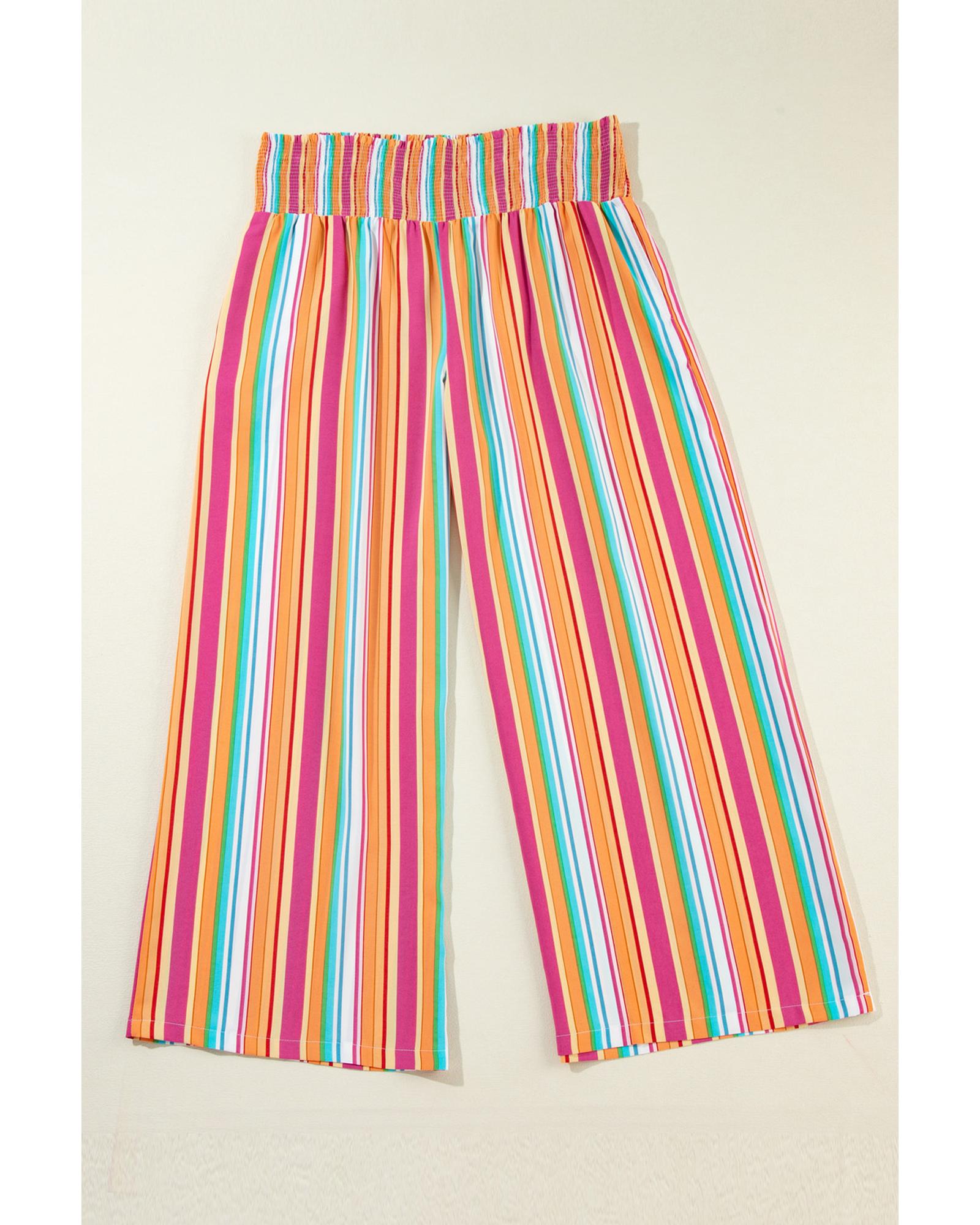 Orange Stripe Plus Size Boho Smocked Waist Loose Pants – 3X