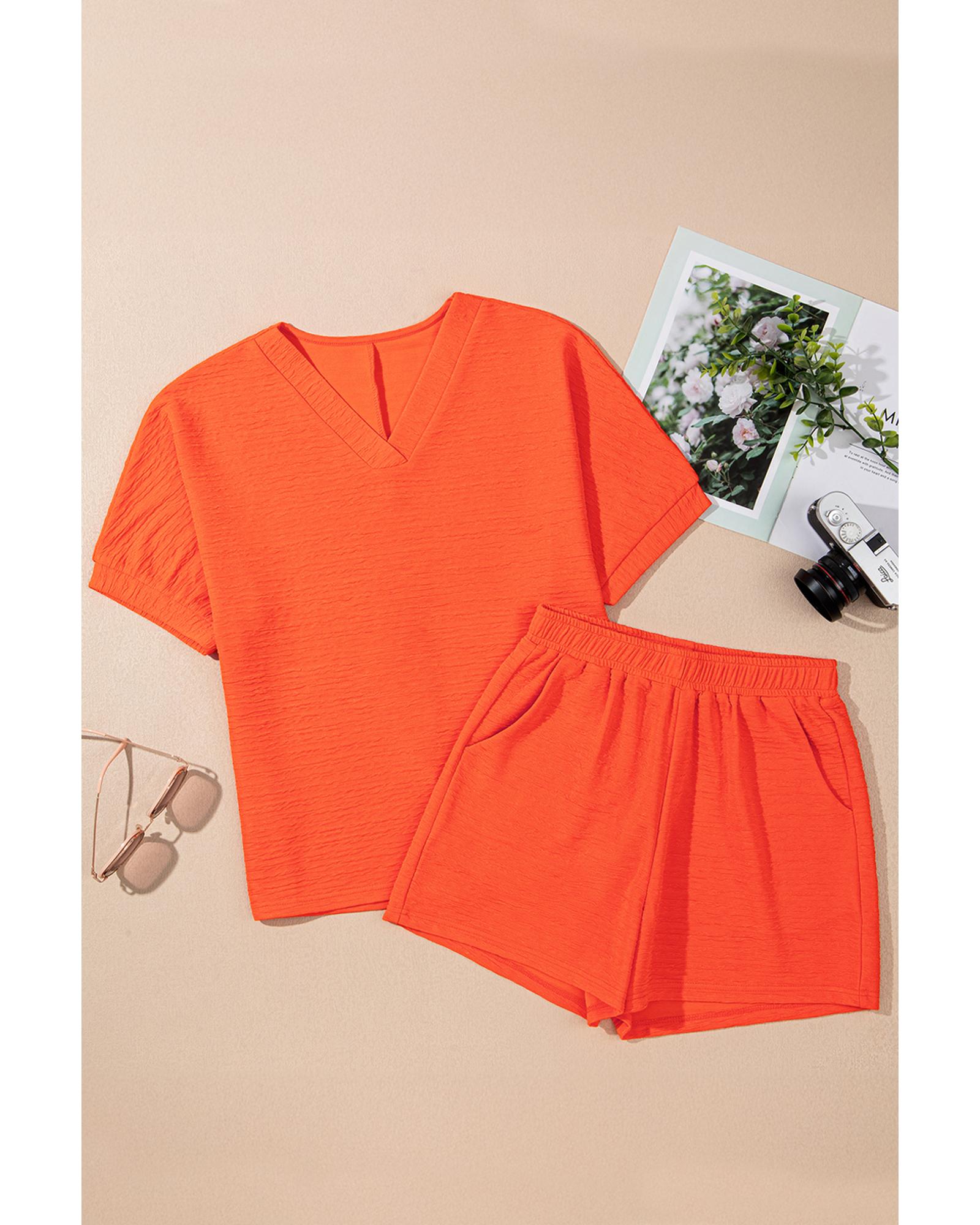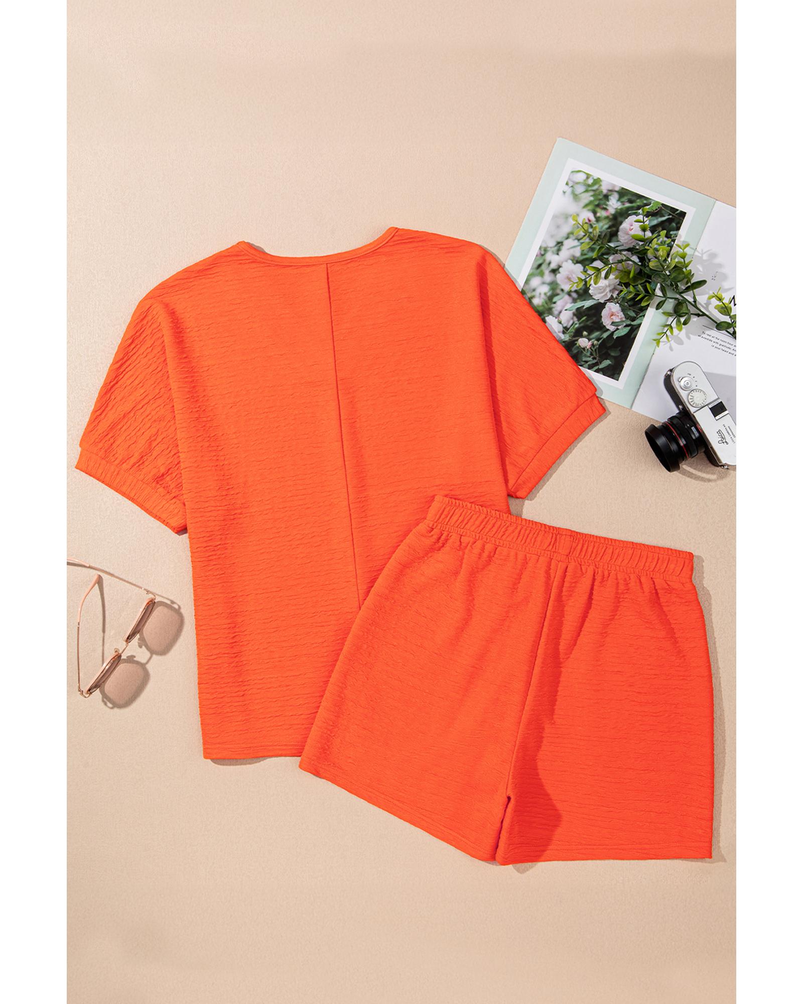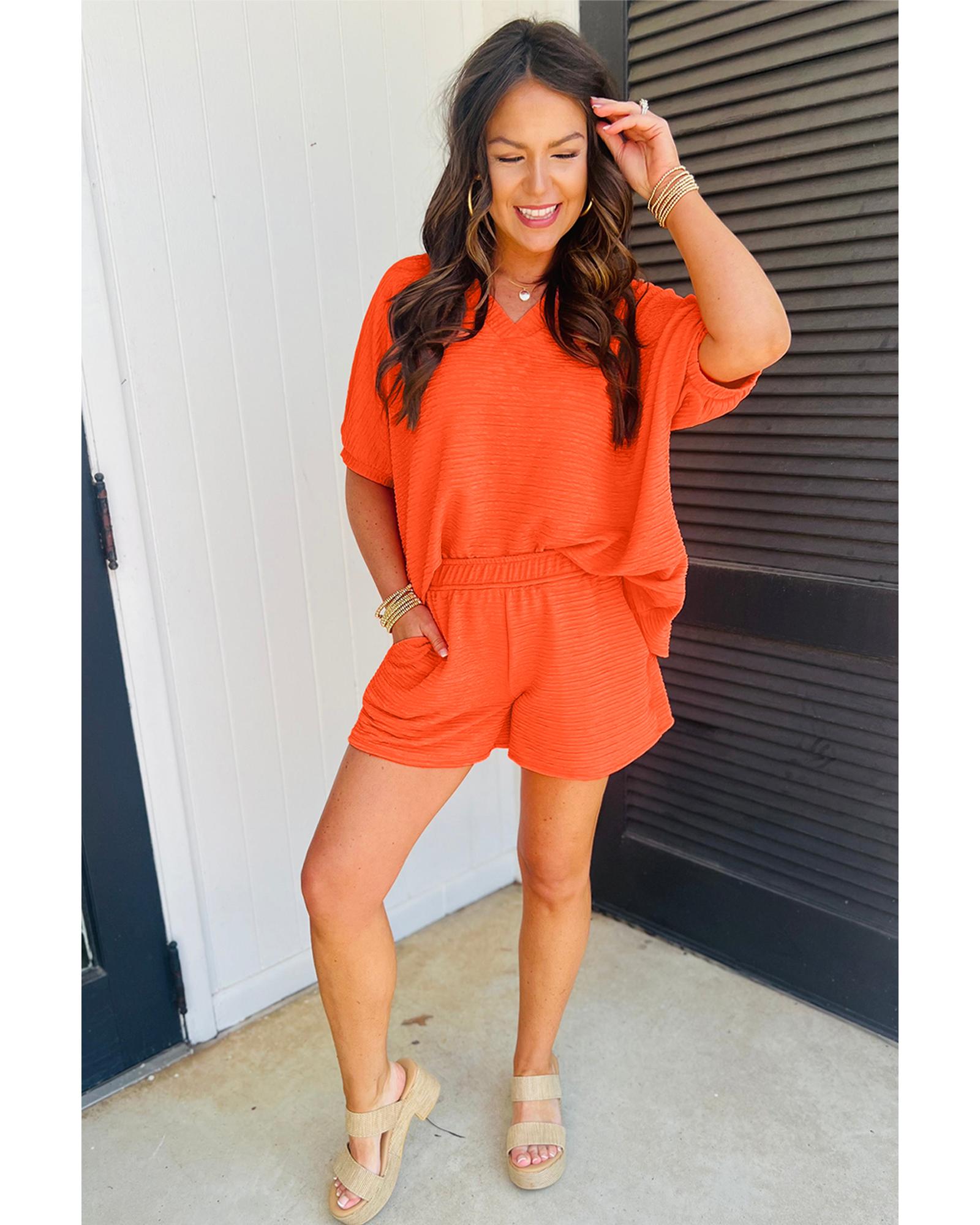 Orange Textured V Neck T Shirt and Shorts Set – XL