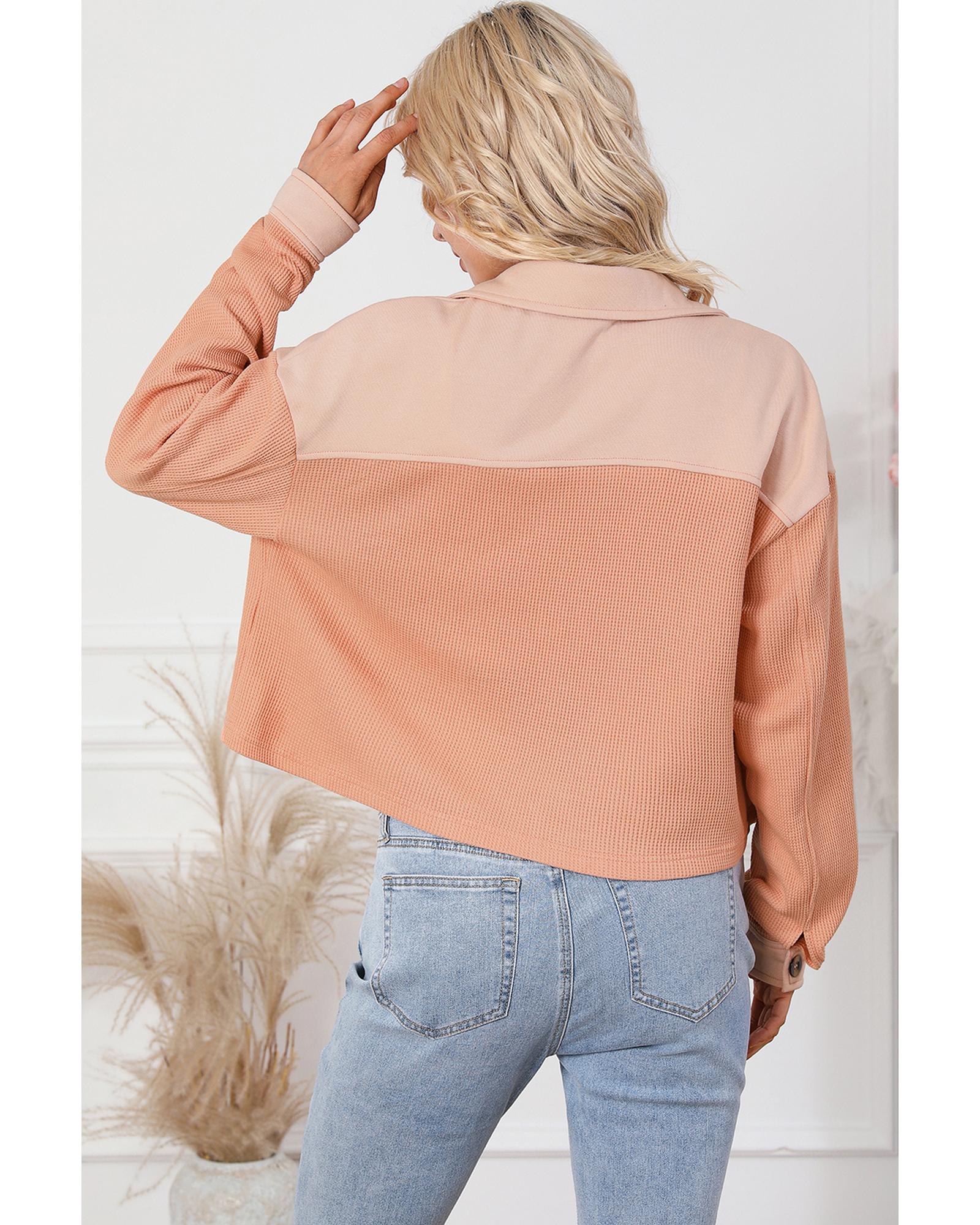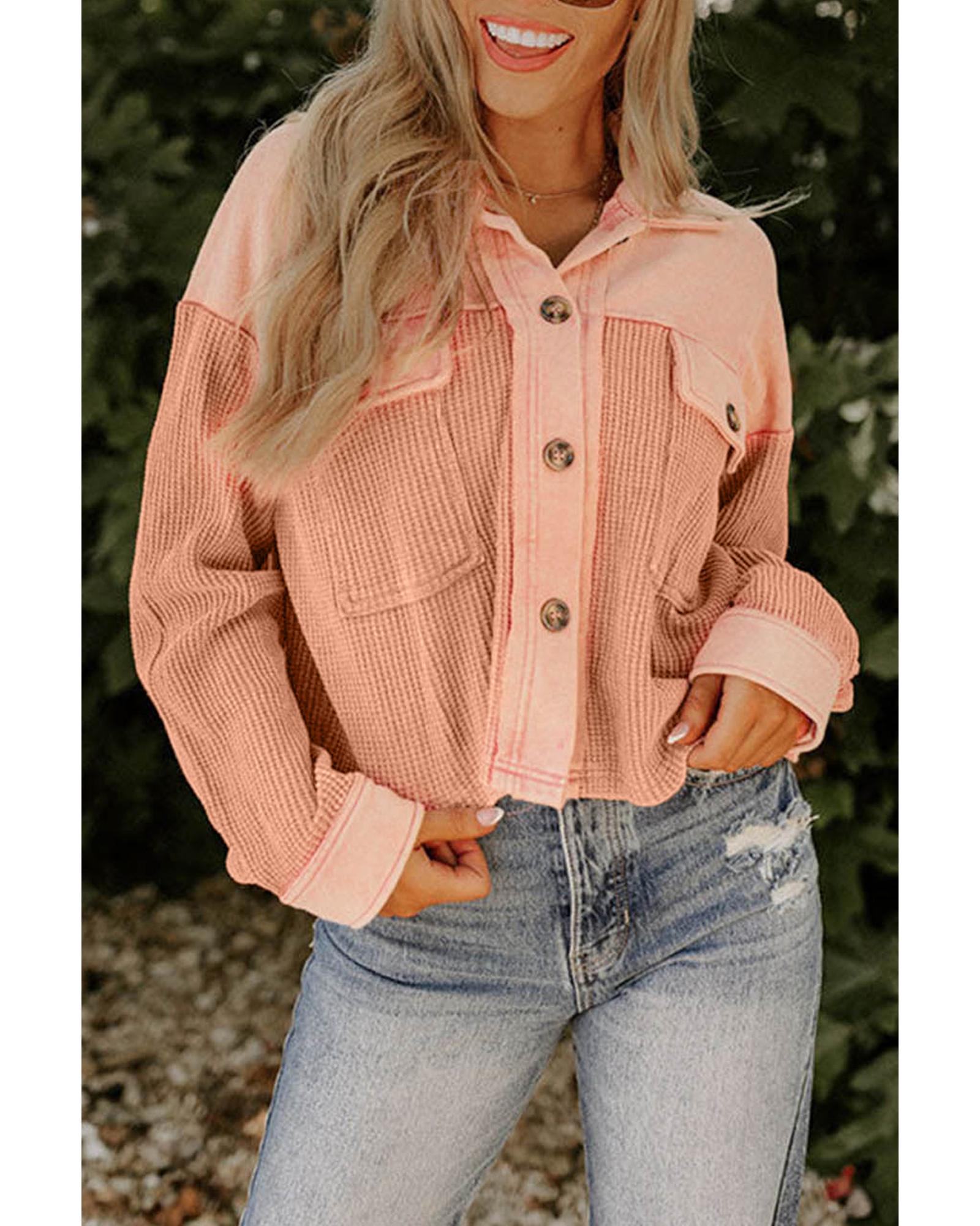 Orange Textured Waffle Knit Chest Pockets Cropped Shacket – XL