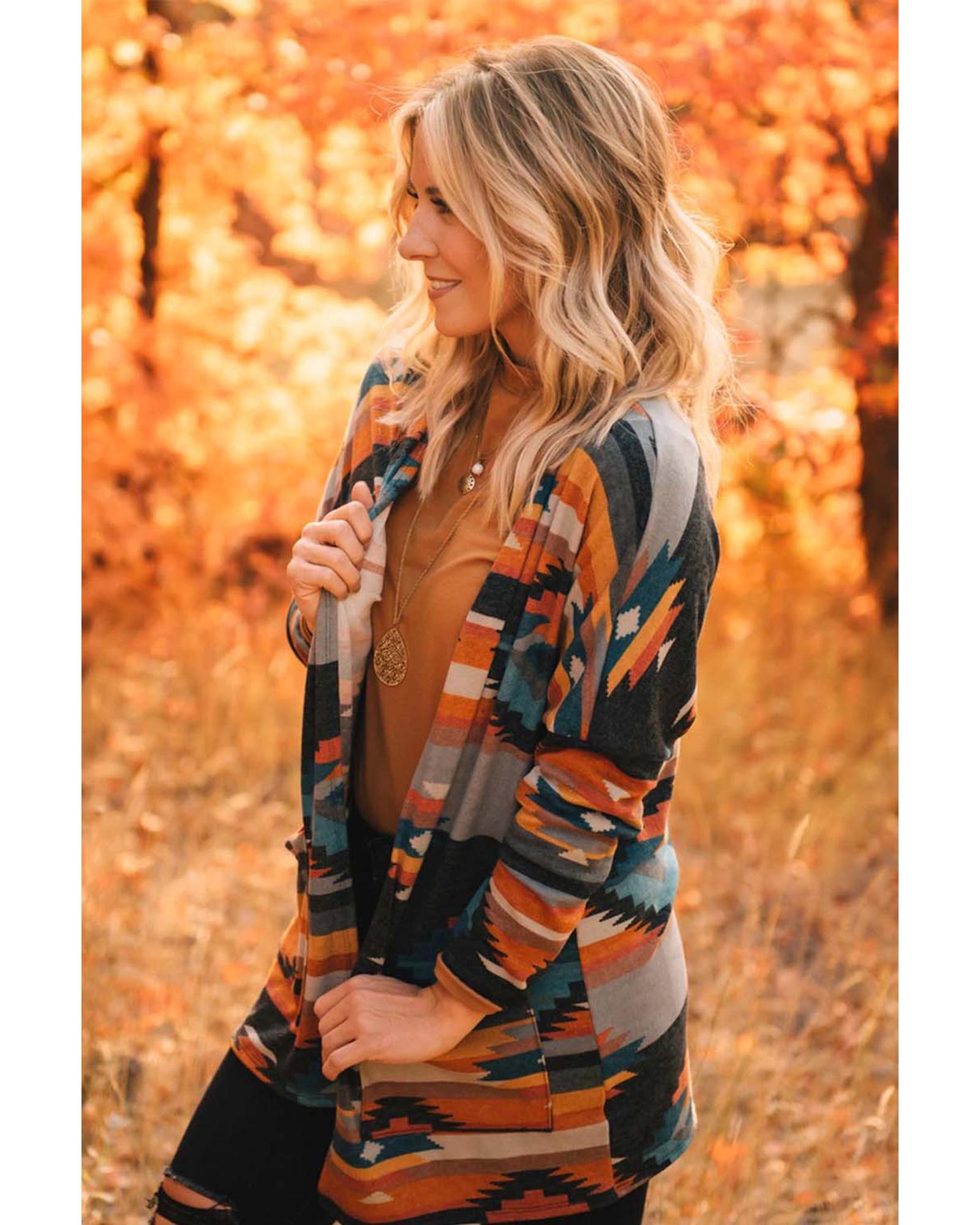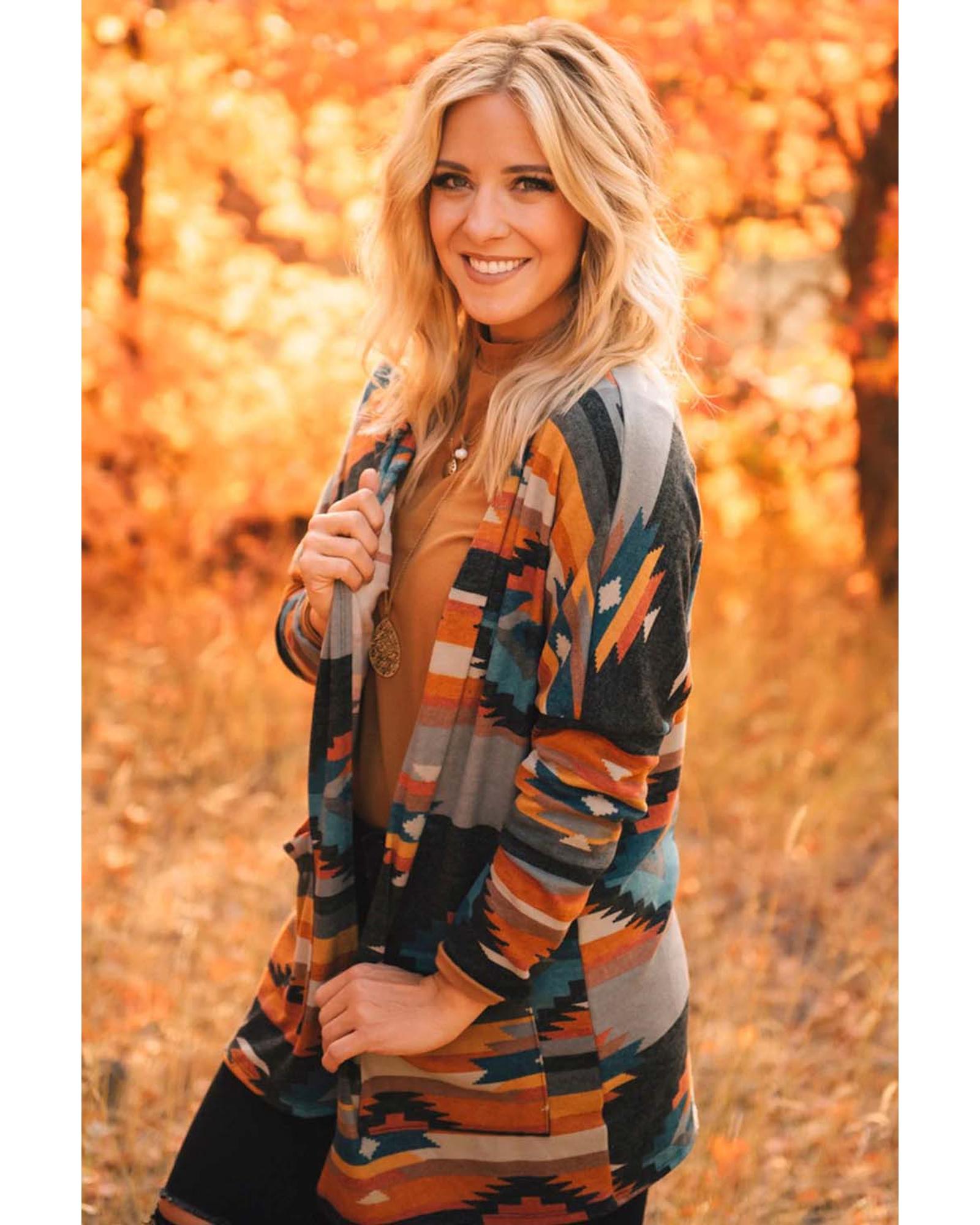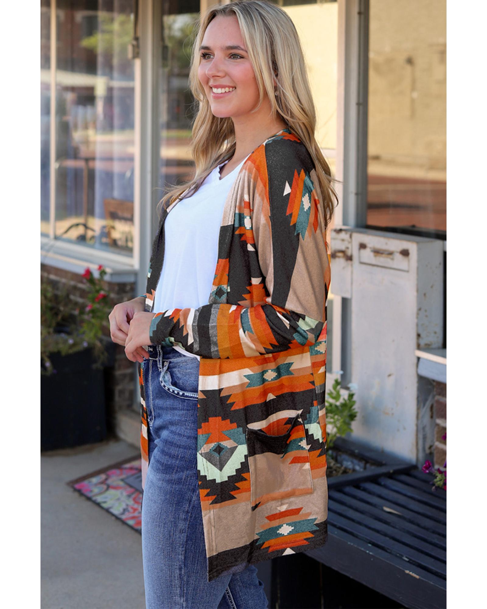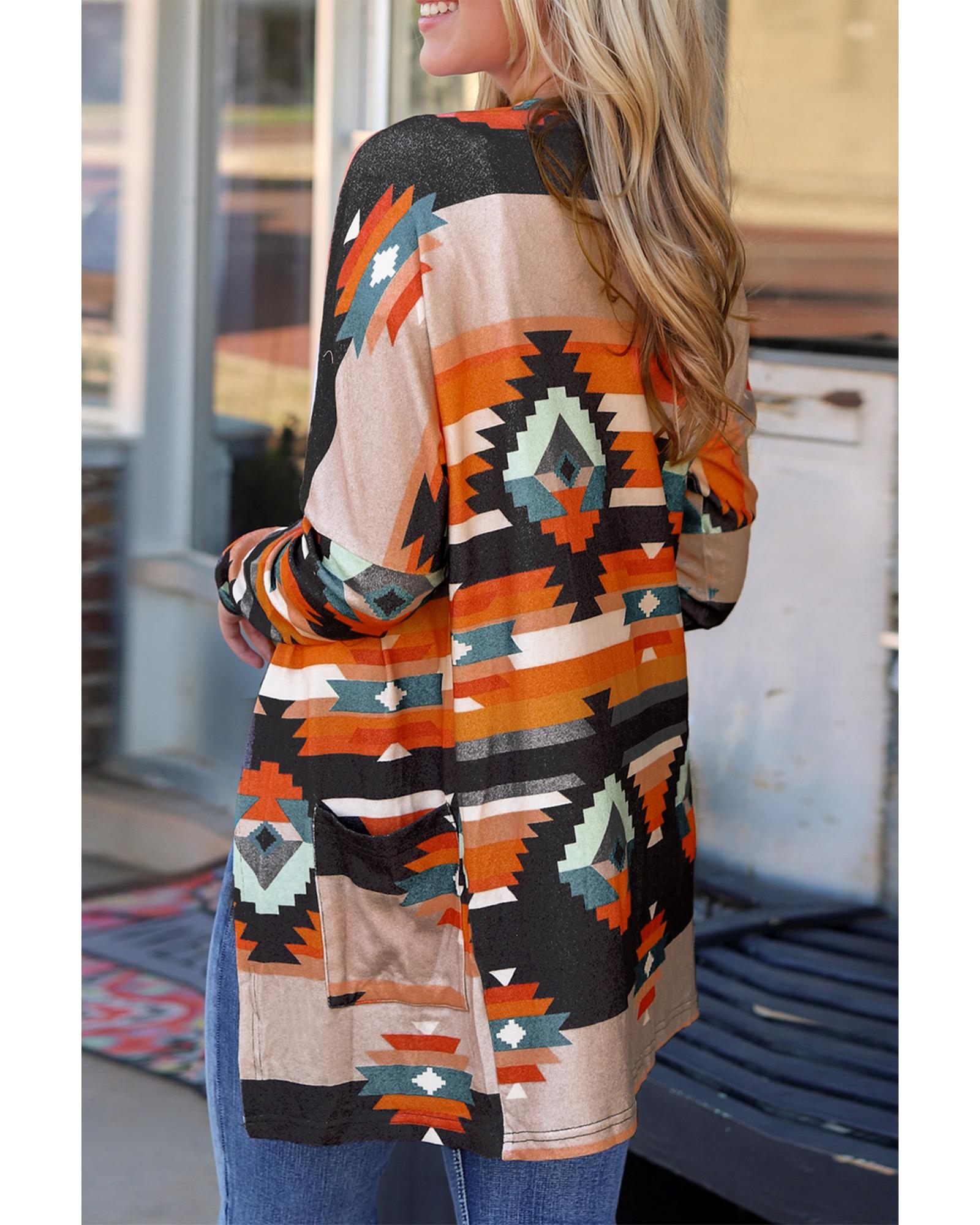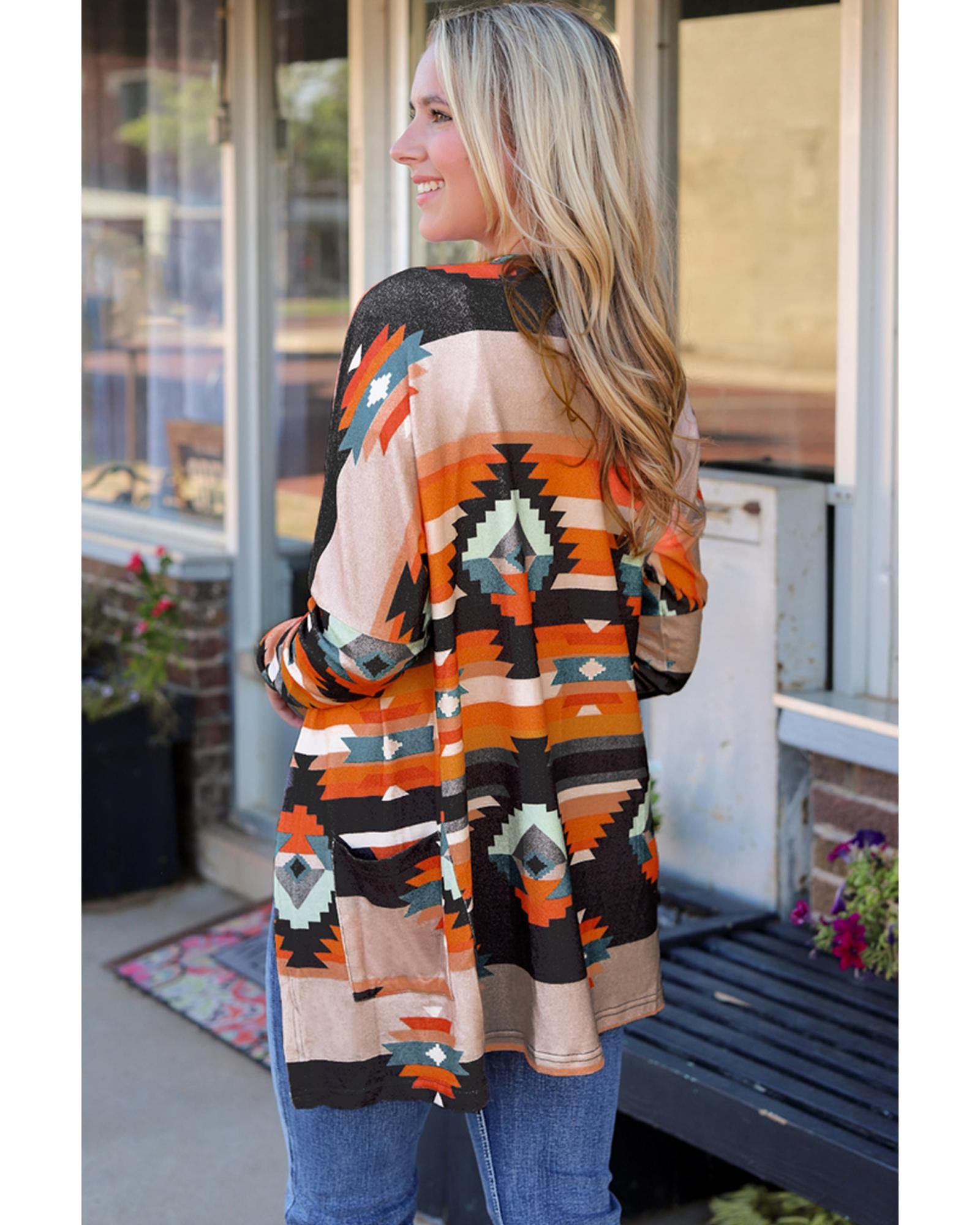 Orange Western Tribal Aztec Print Cardigan – M