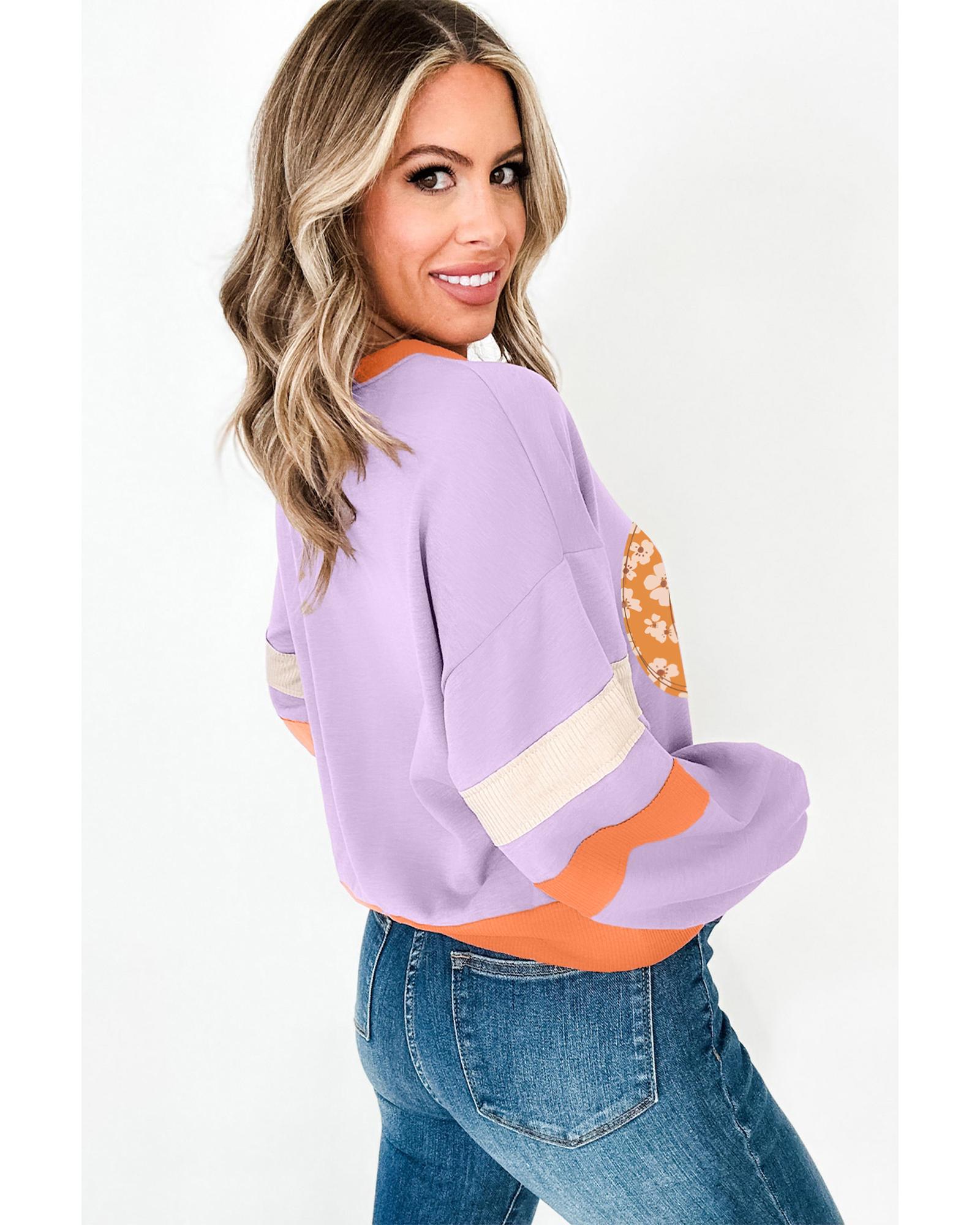 - Orchid Bouquet Halloween Floral Pumpkin Color Block V Neck Sweatshirt