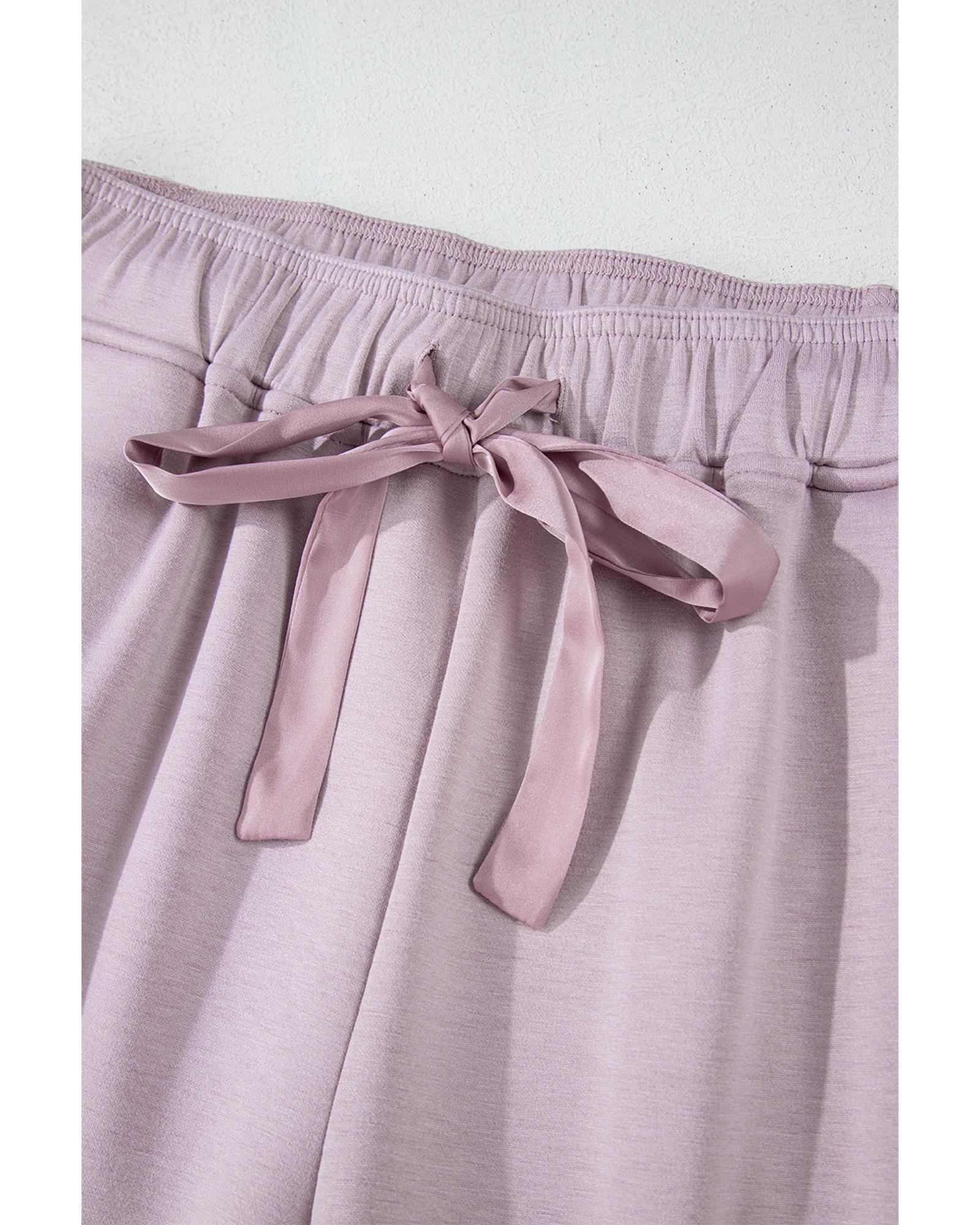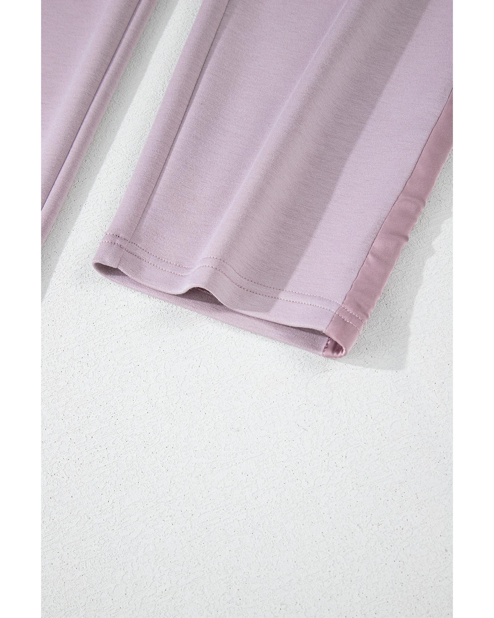 Orchid Petal Drawstring Waist Satin Stripe Patch Straight Leg High Waist Pants – M