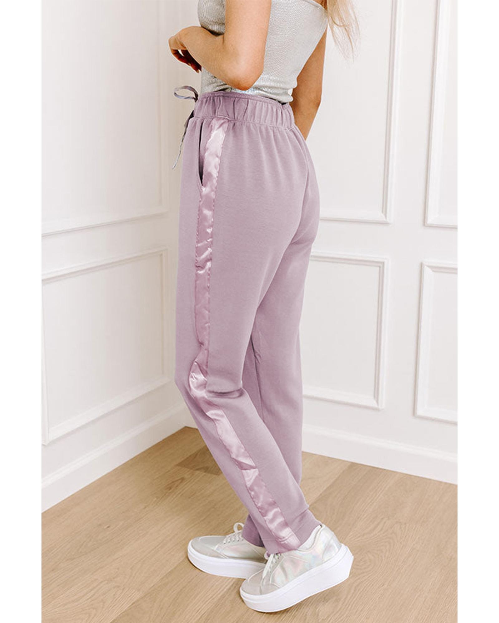Orchid Petal Drawstring Waist Satin Stripe Patch Straight Leg High Waist Pants – XL
