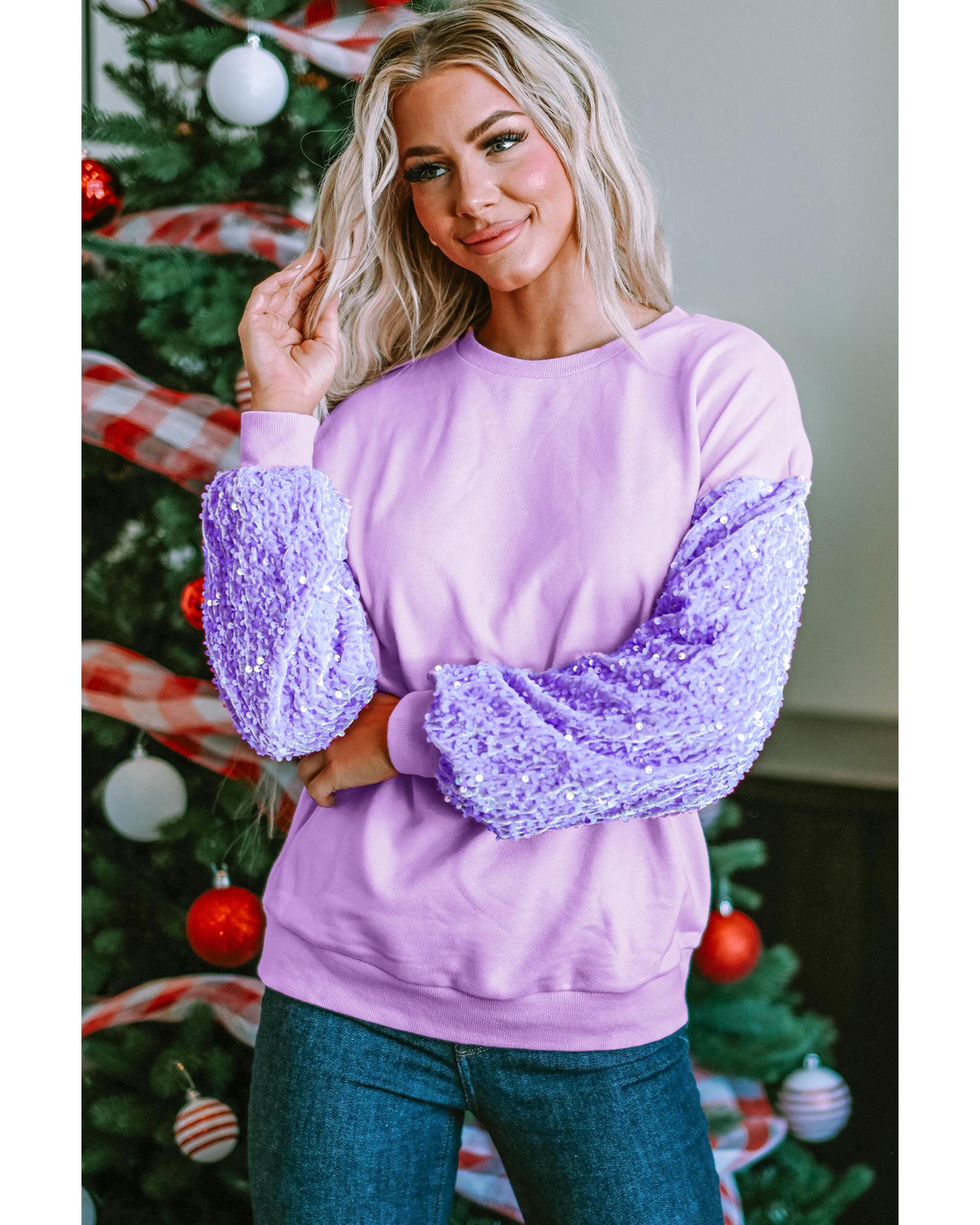 Orchid Petal Sequin Patchwork Long Sleeve Pullover Top – XL